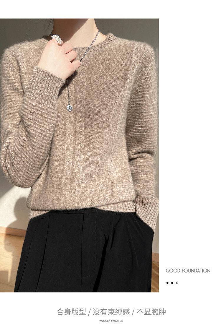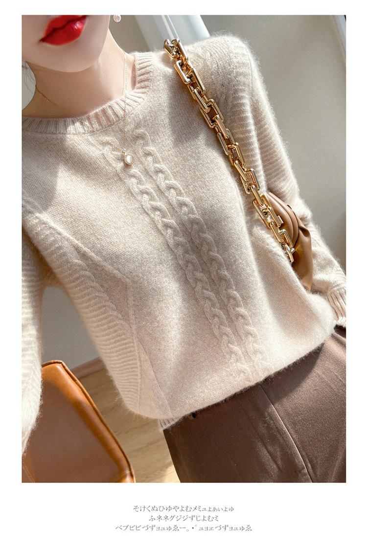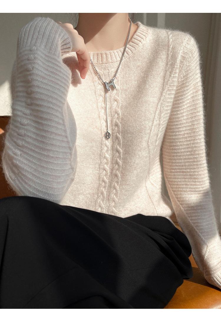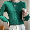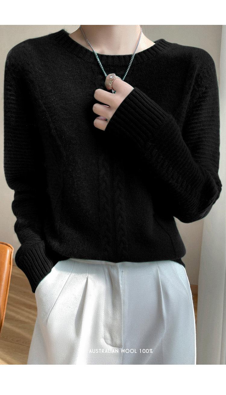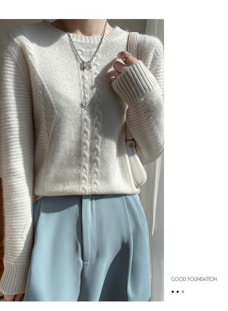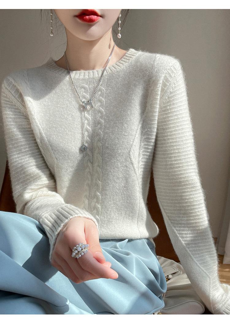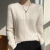 Cuello Redondo Tejido de Cable Lana Pura para Mujer Capa Base Tejida Suéter Holgado Adelgazante Ropa Interior Gruesa de Manga Larga Jersey