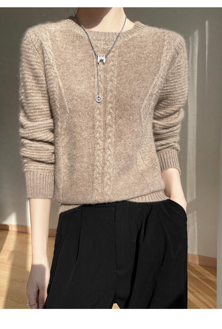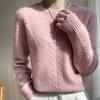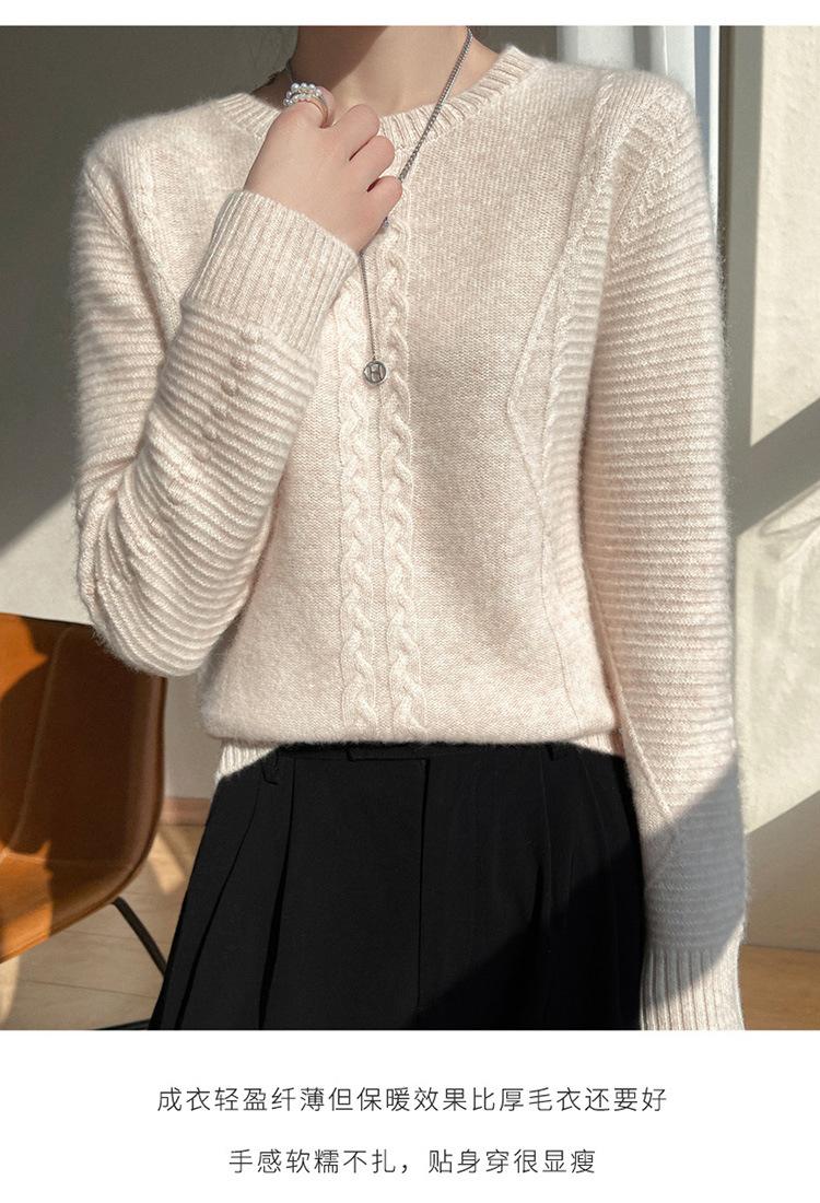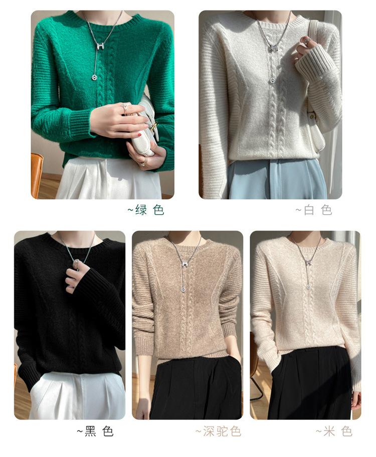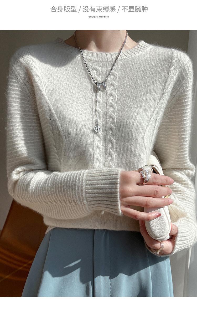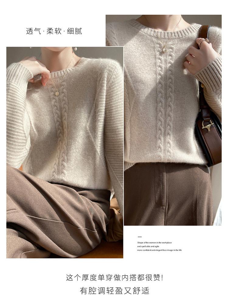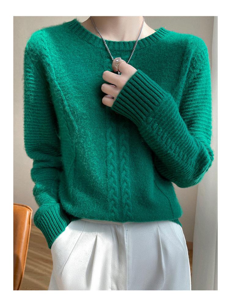 Cuello Redondo Tejido de Cable Lana Pura para Mujer Capa Base Tejida Suéter Holgado Adelgazante Ropa Interior Gruesa de Manga Larga Jersey