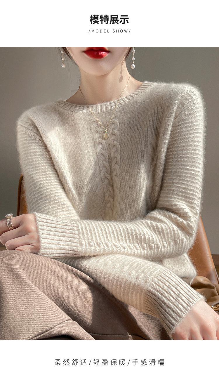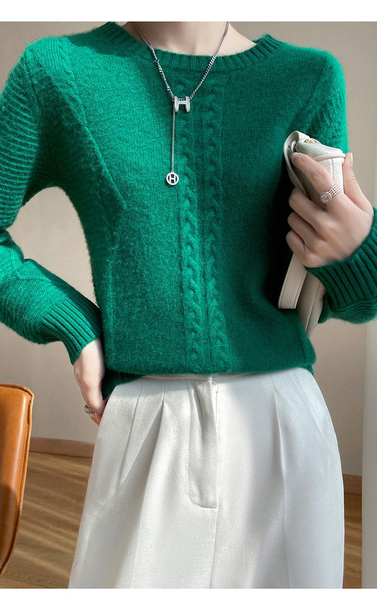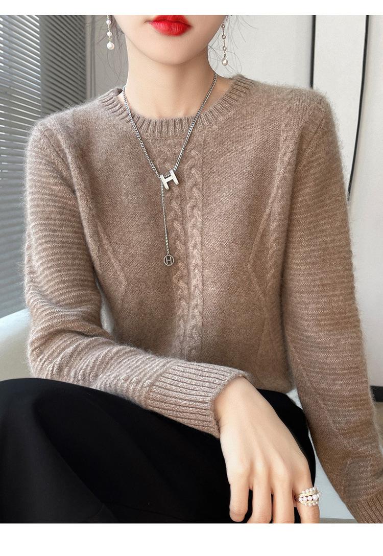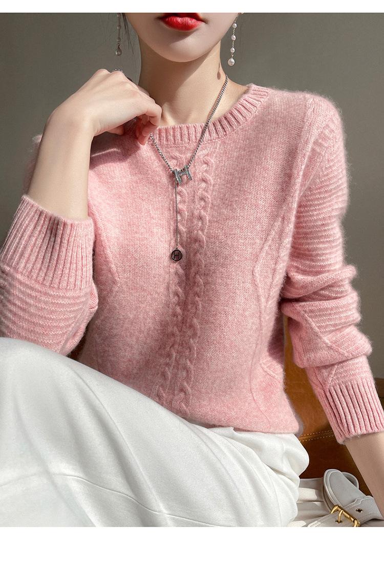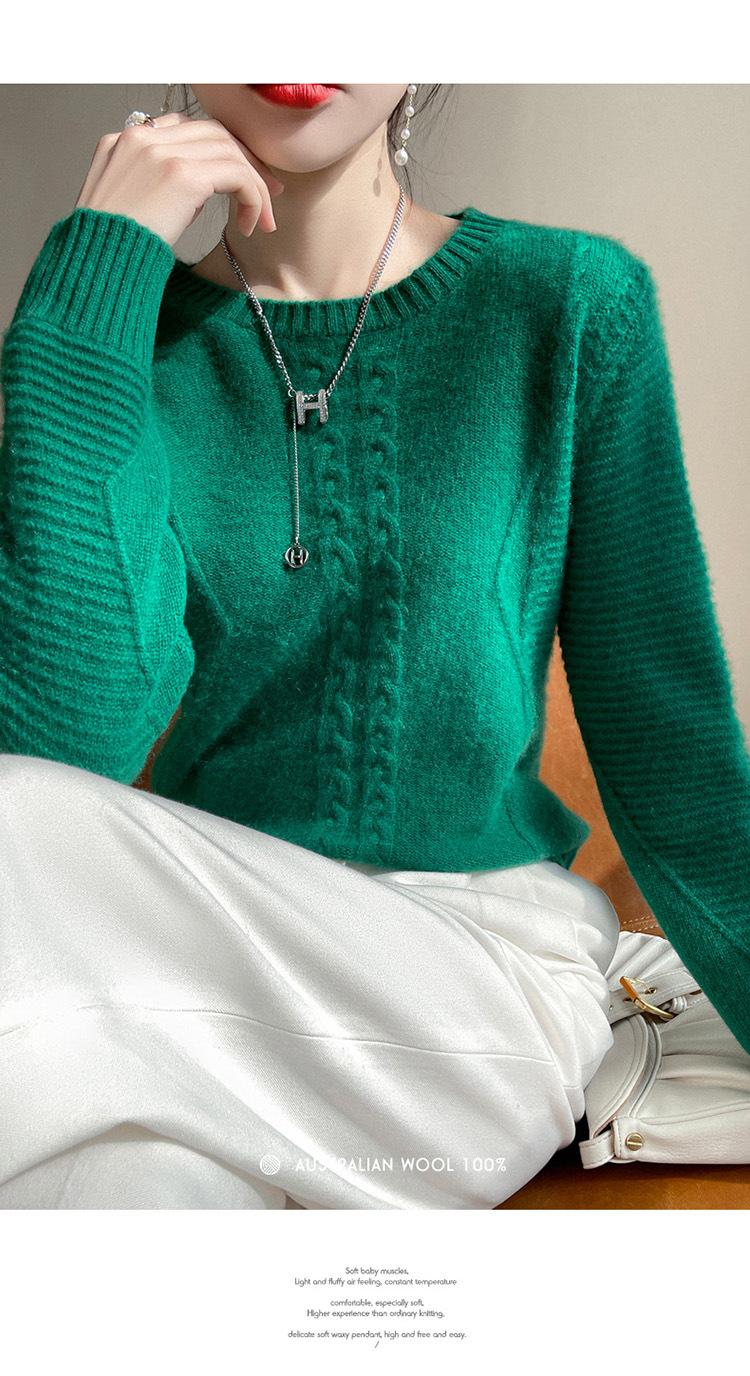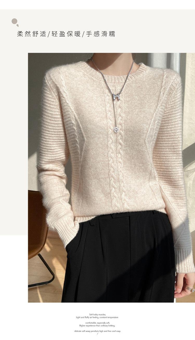 Cuello Redondo Tejido de Cable Lana Pura para Mujer Capa Base Tejida Suéter Holgado Adelgazante Ropa Interior Gruesa de Manga Larga Jersey