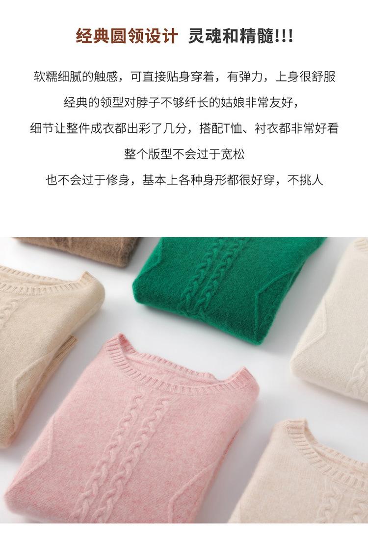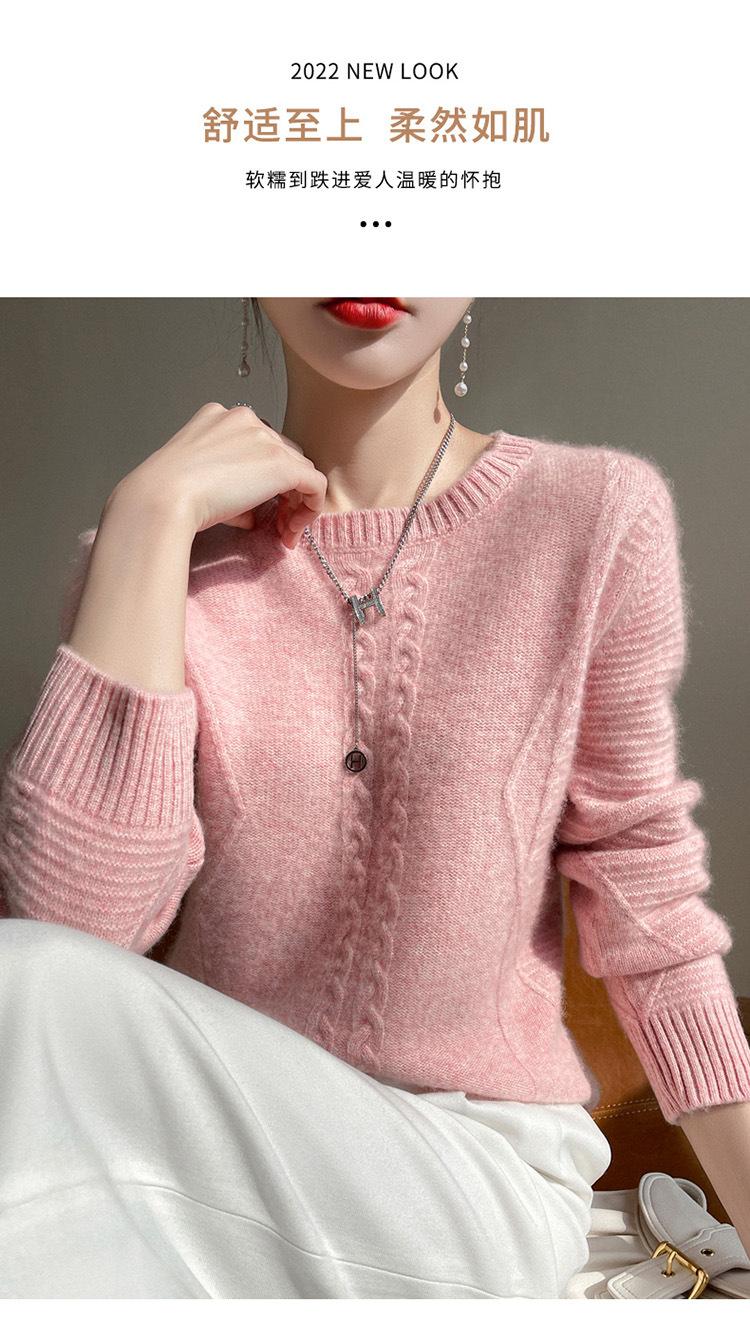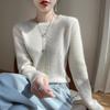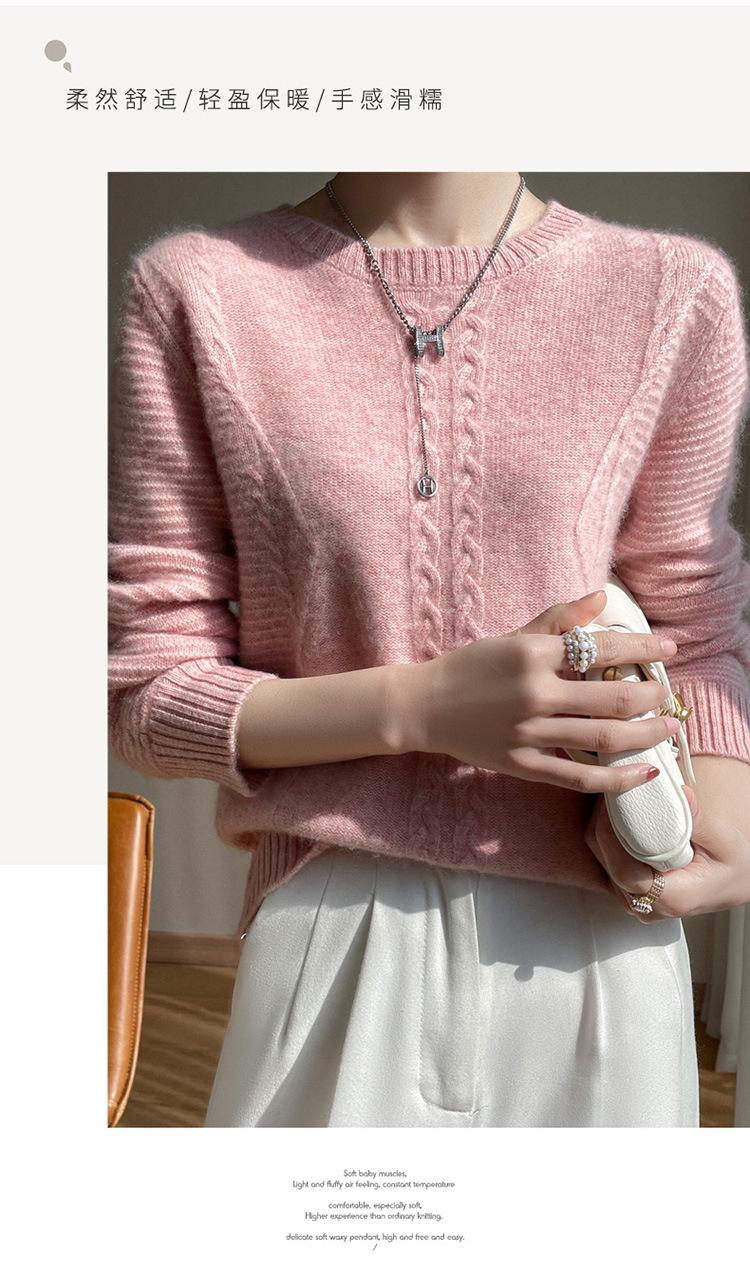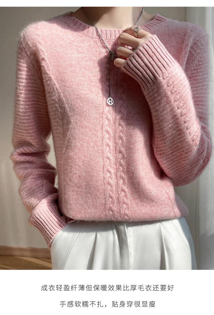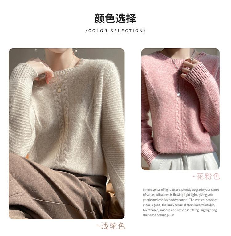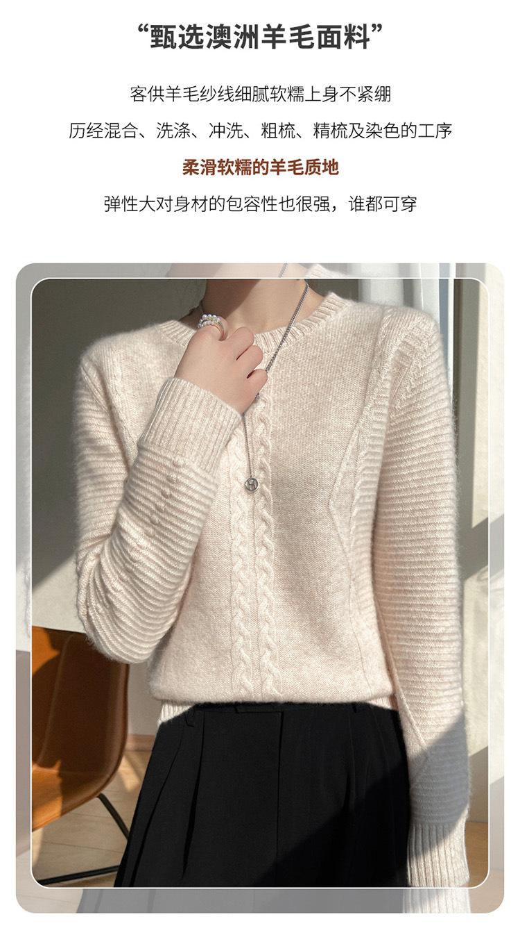 Cuello Redondo Tejido de Cable Lana Pura para Mujer Capa Base Tejida Suéter Holgado Adelgazante Ropa Interior Gruesa de Manga Larga Jersey