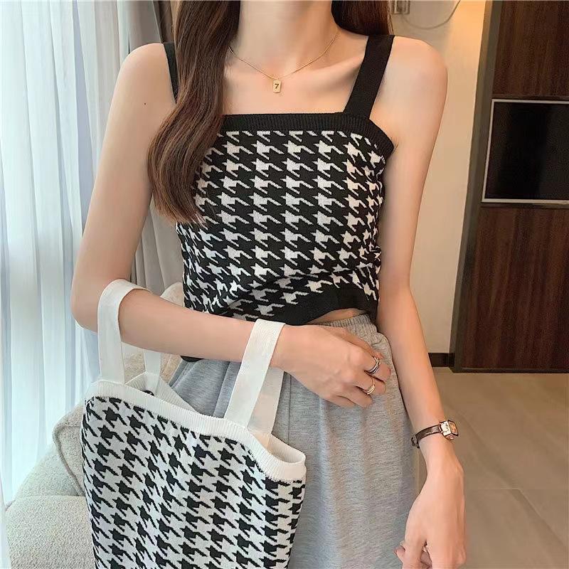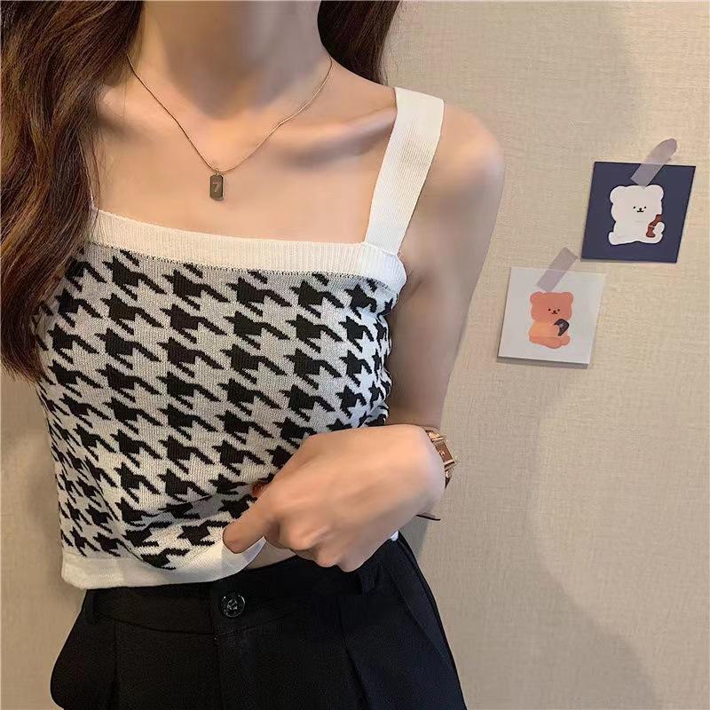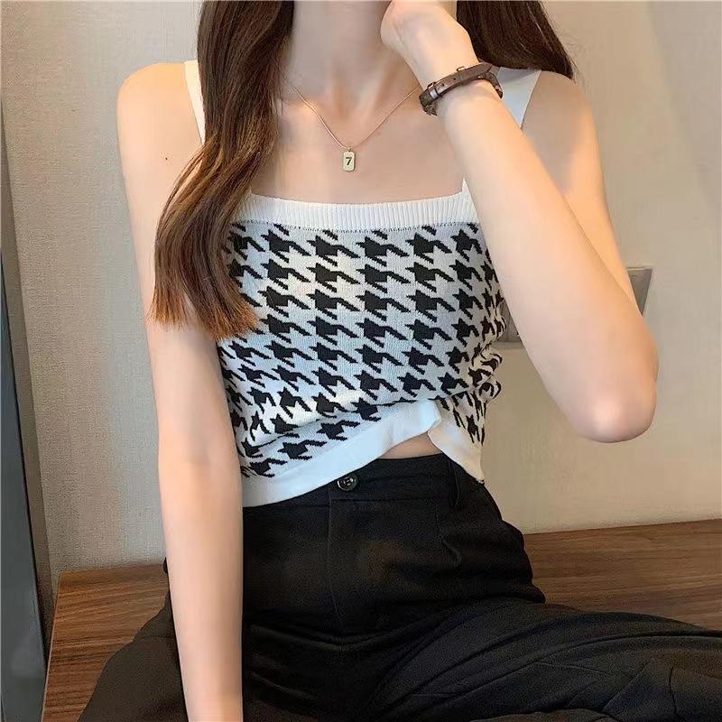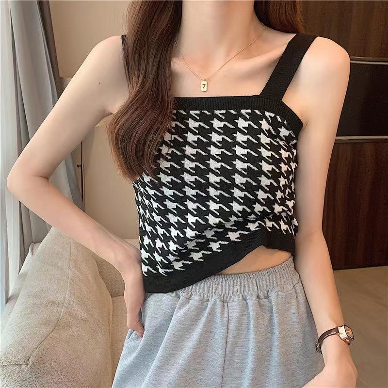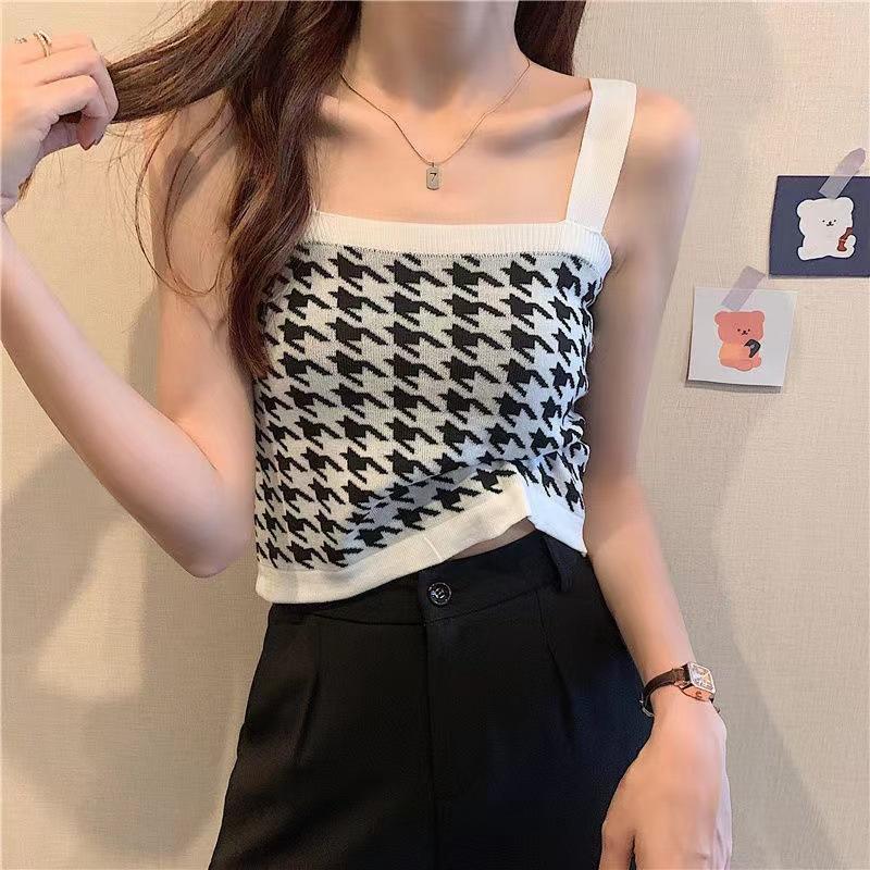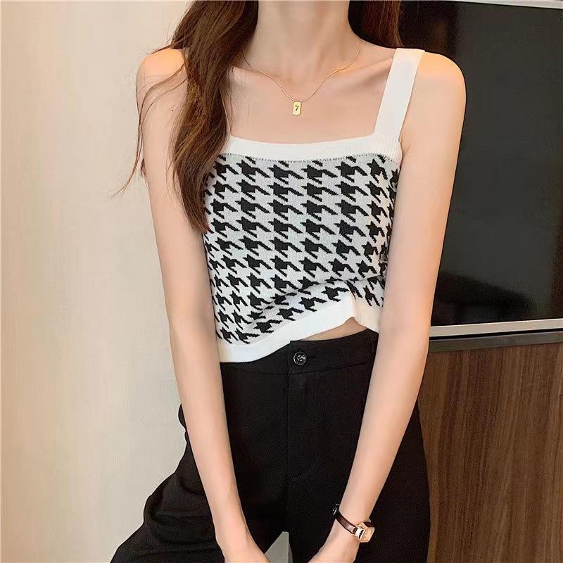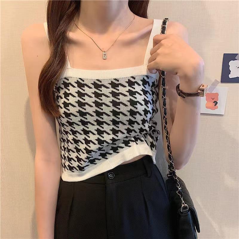 Camisola de verano para mujer, cuello cuadrado francés, diseño Sense Niche, parte inferior corta con hermosa espalda, parte superior de punto interior