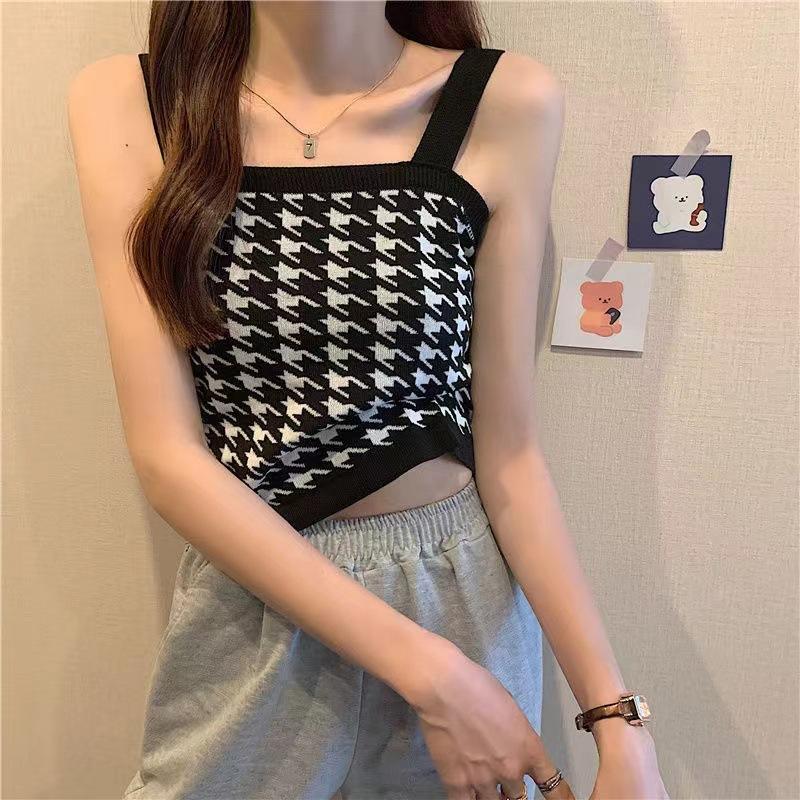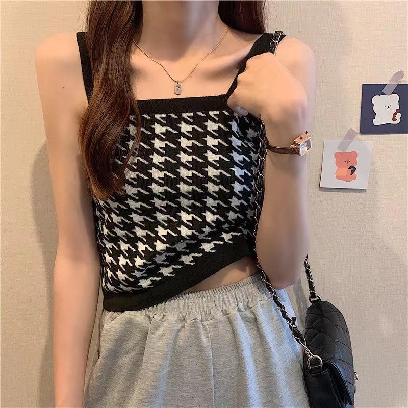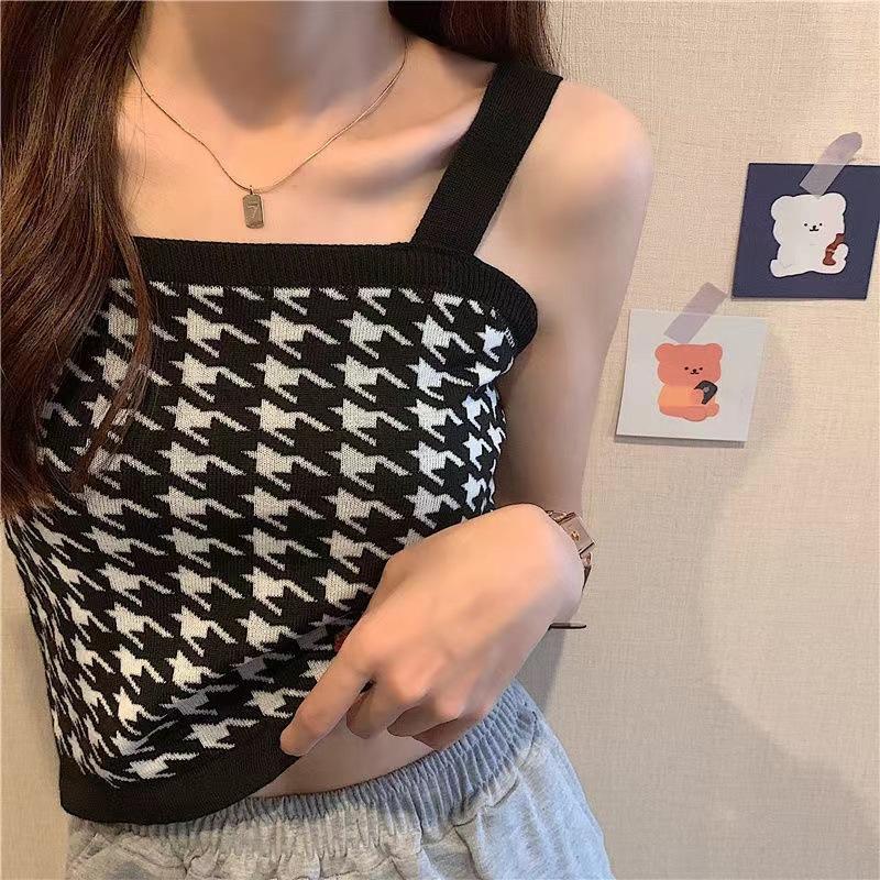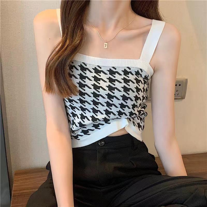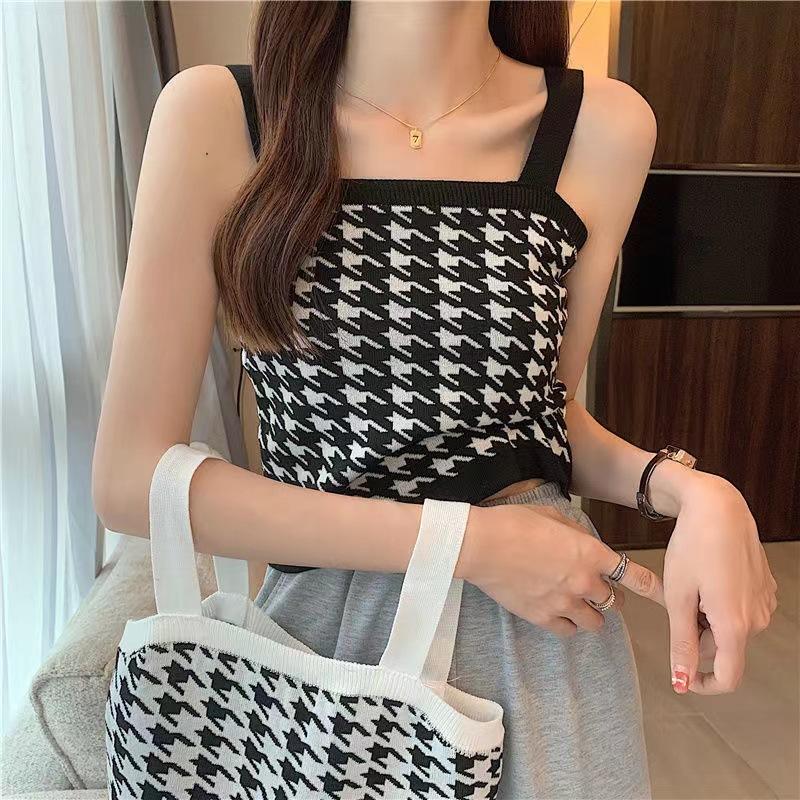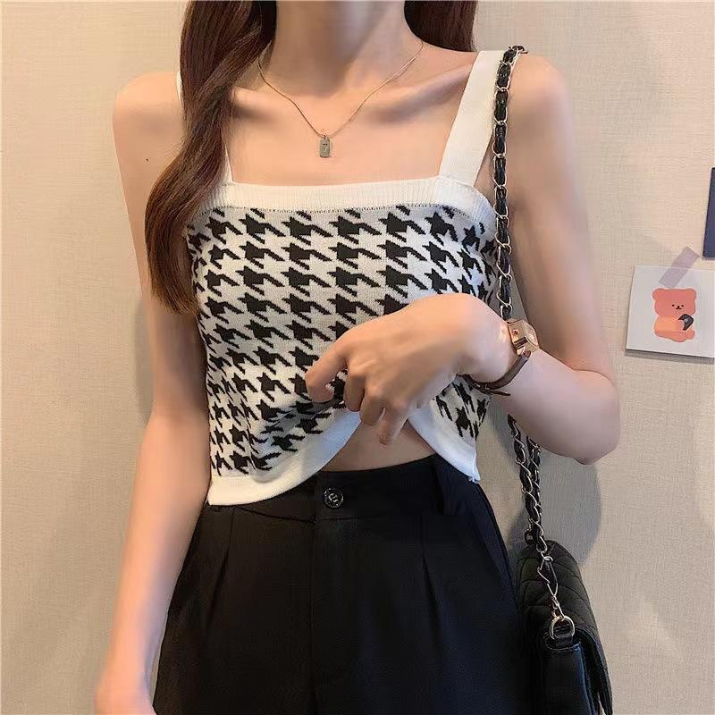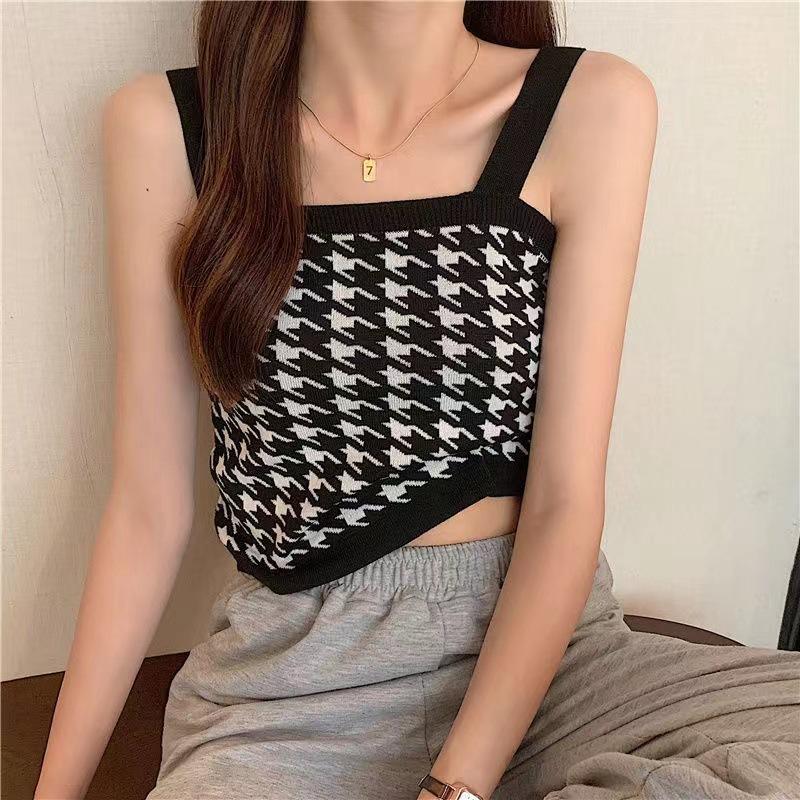 Camisola de verano para mujer, cuello cuadrado francés, diseño Sense Niche, parte inferior corta con hermosa espalda, parte superior de punto interior