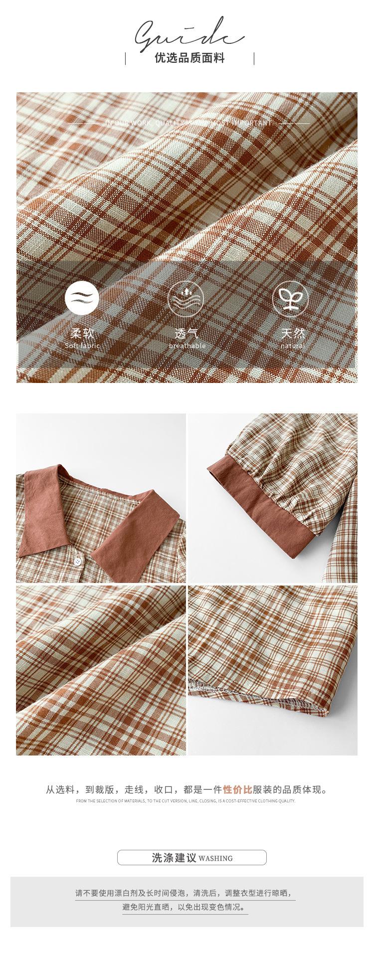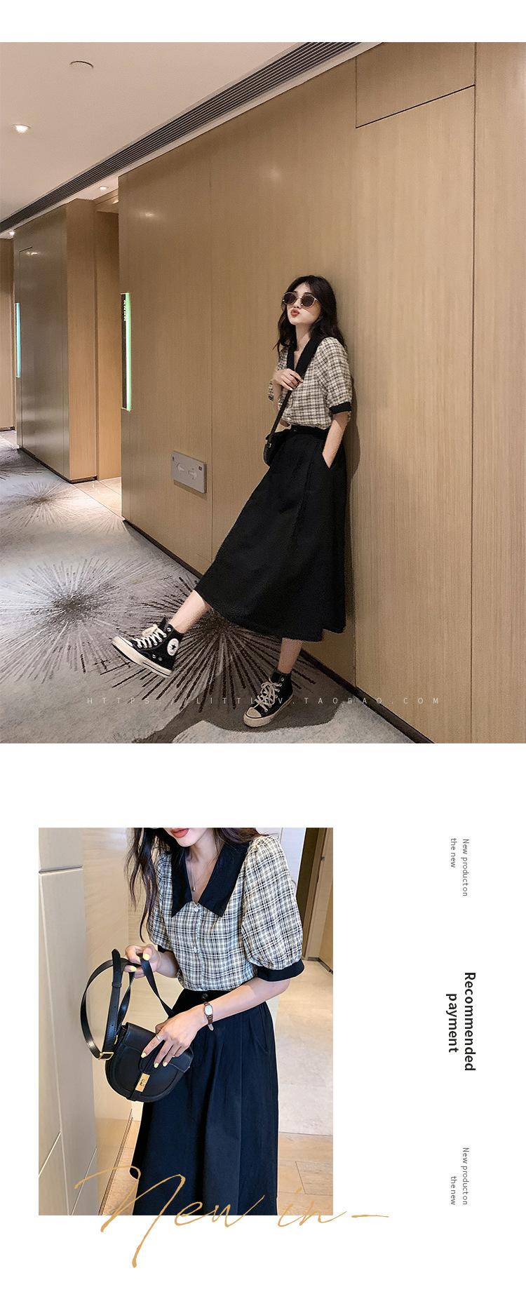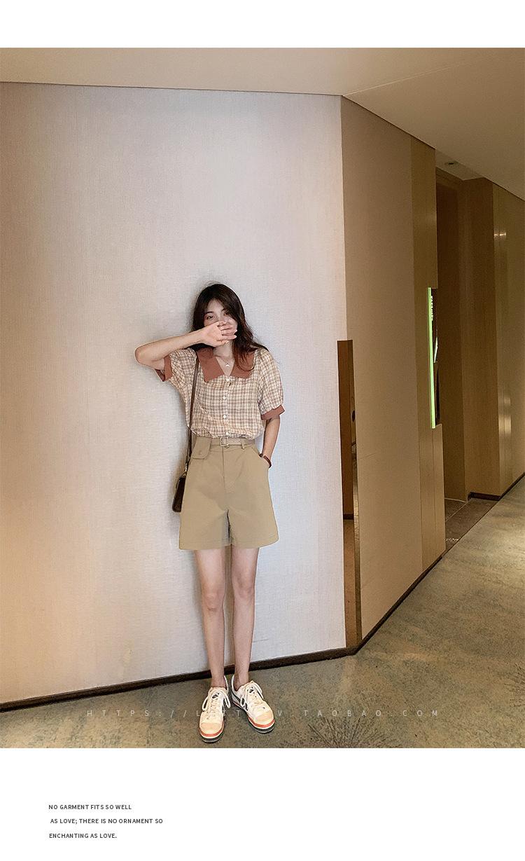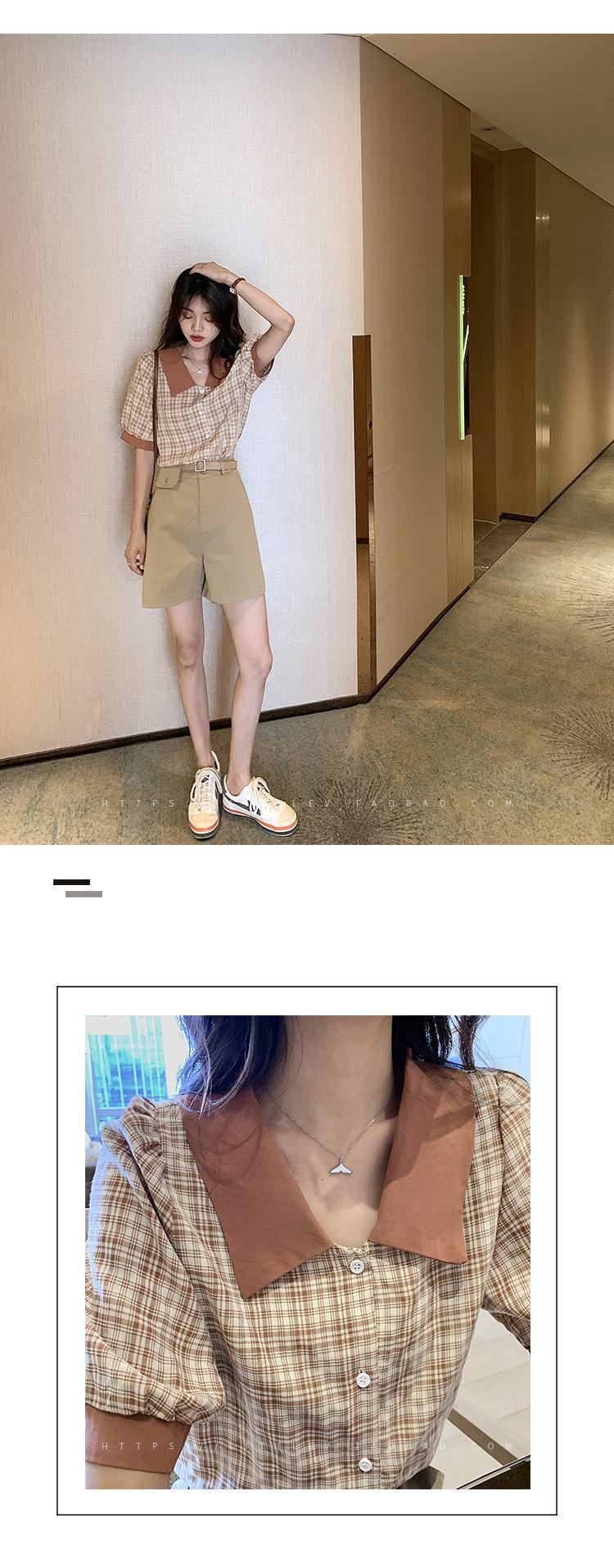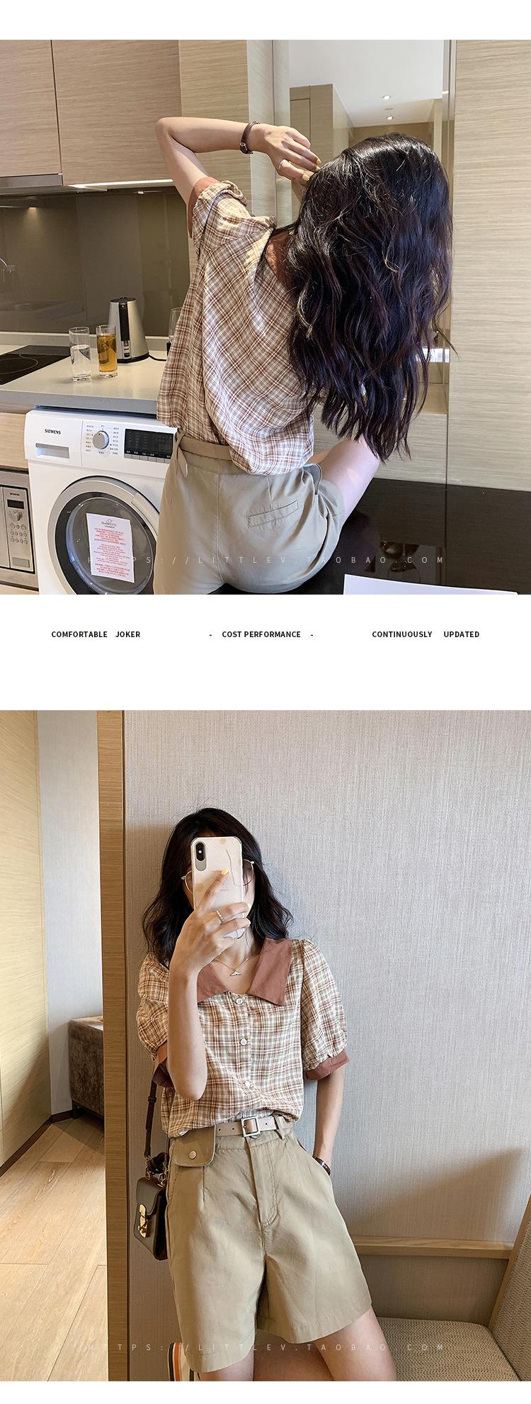 Camisa a cuadros para mujer, diseño de verano nuevo, nicho, top francés retro, estilo Hong Kong, camisa de manga abullonada