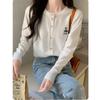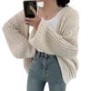 Estilo Coreano Chic2024 Otoño Nuevo Estilo Estilo Holgazán Cuello en V Versátil Suelto Casual Color Puro Manga Farol Cárdigan Tejido