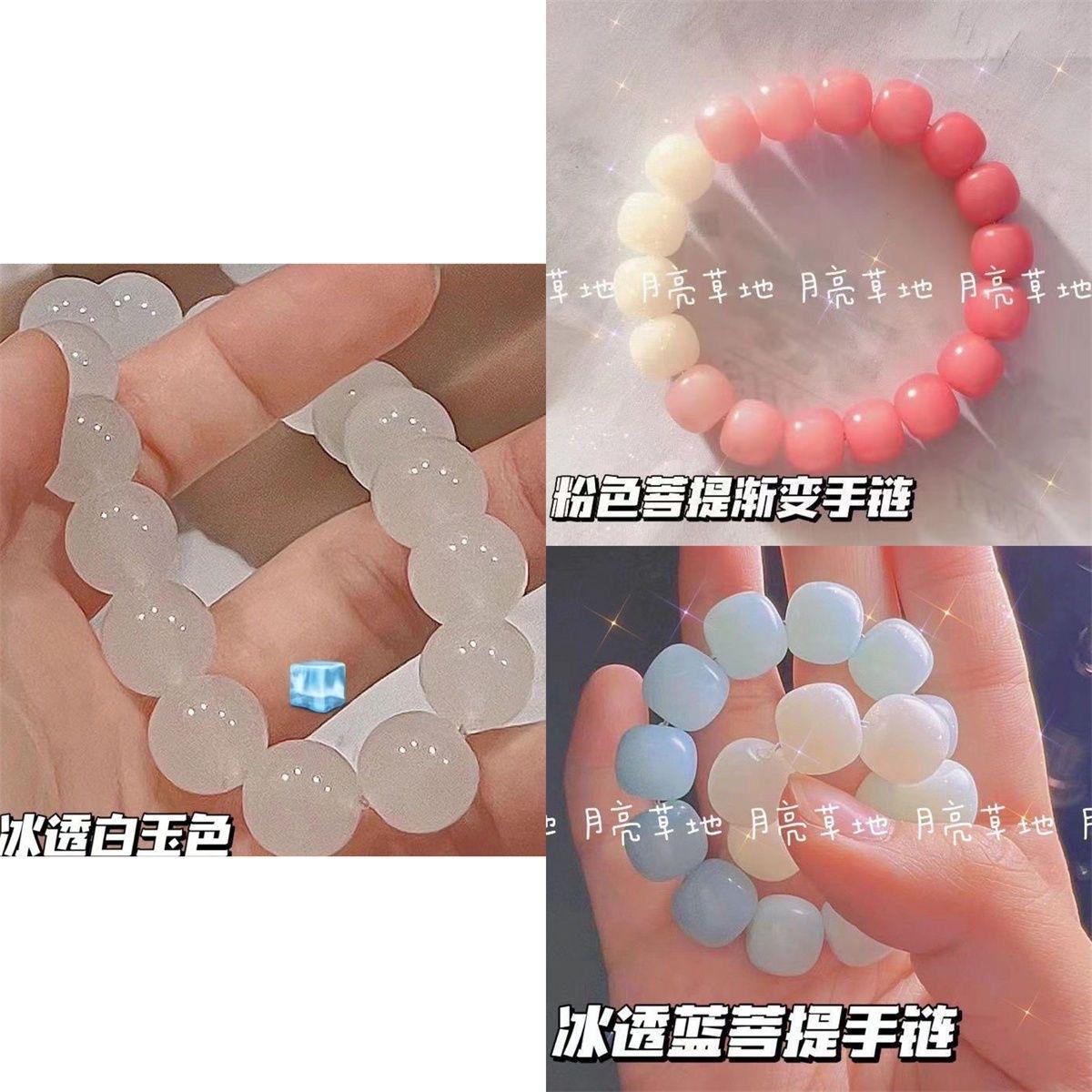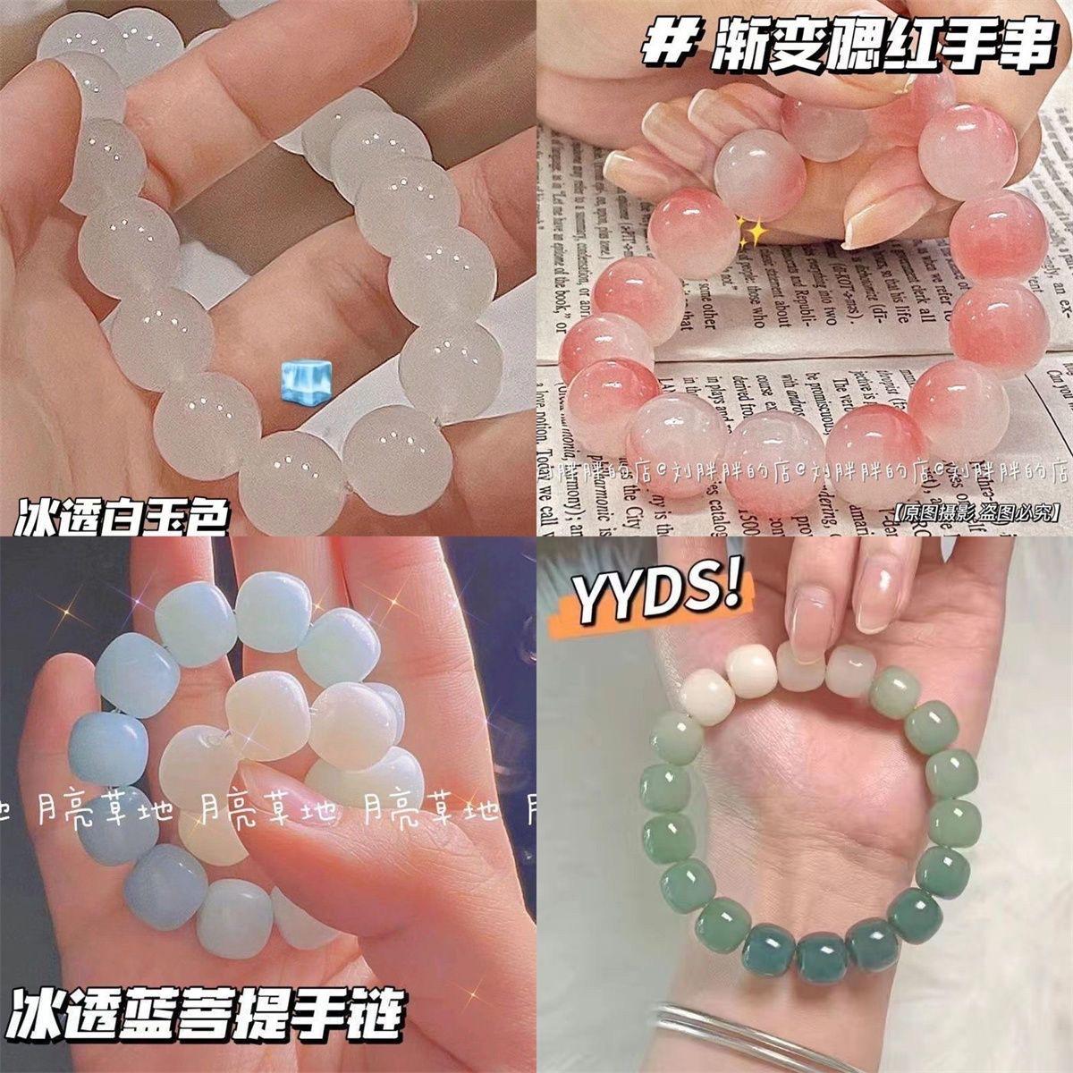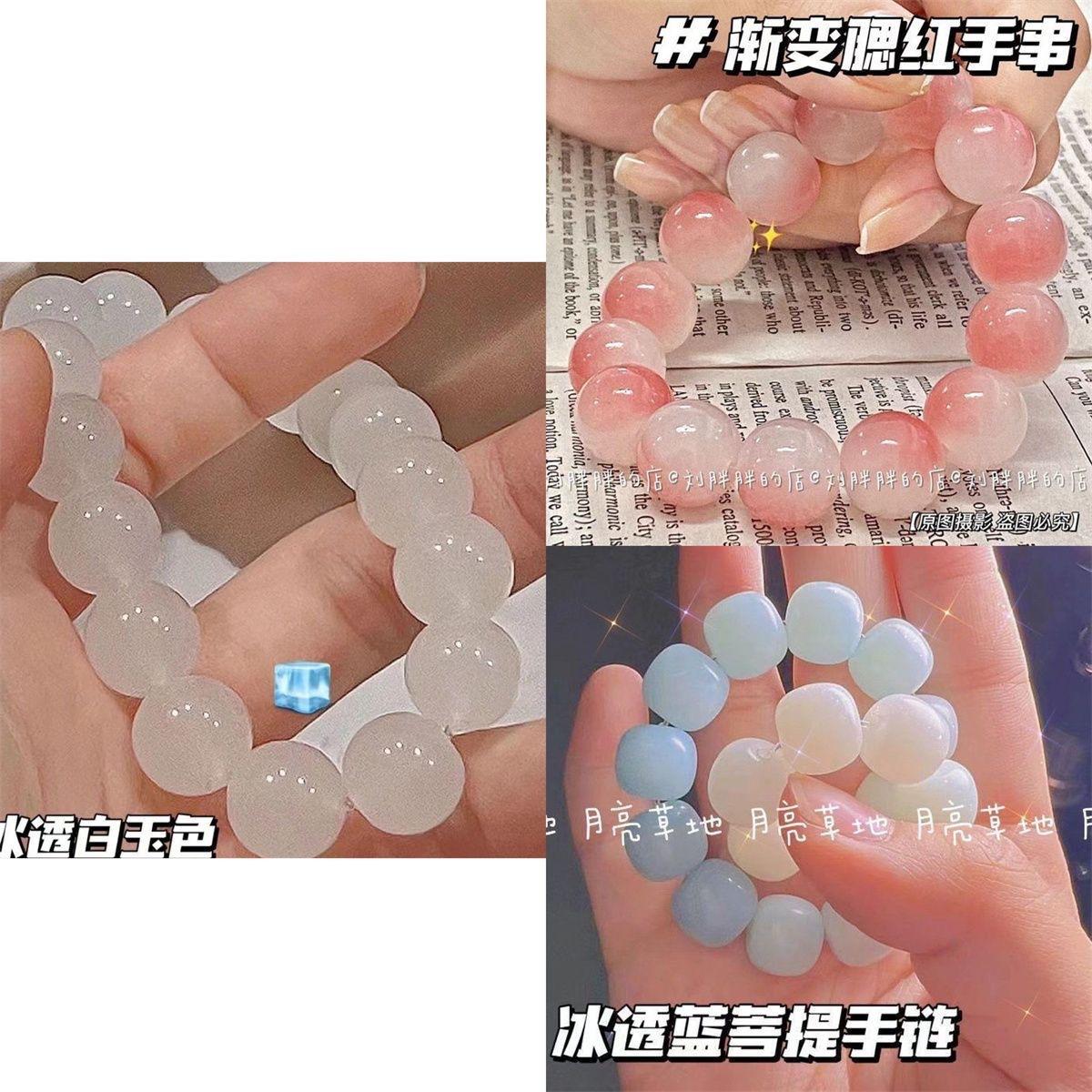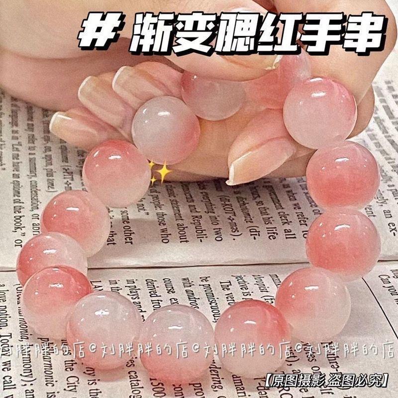 Pulsera Xiaohongshu, Color Degradado, Pulsera de Cuentas de Buda Rosa Transparente Hielo, Cuentas Redondas para Estudiante, Hecha a Mano para Mejores Amigas