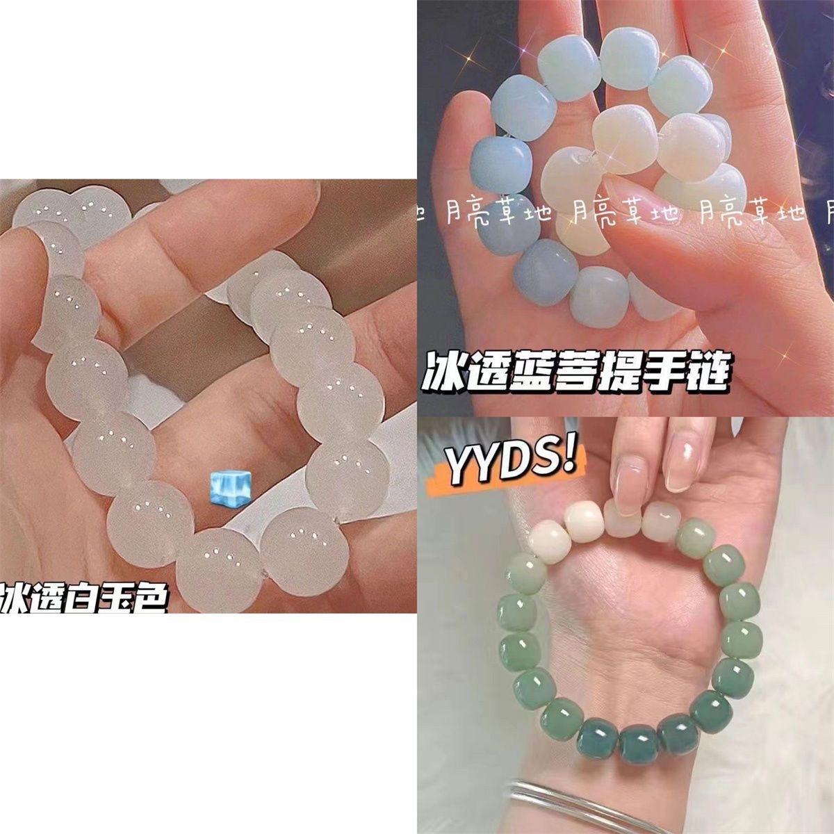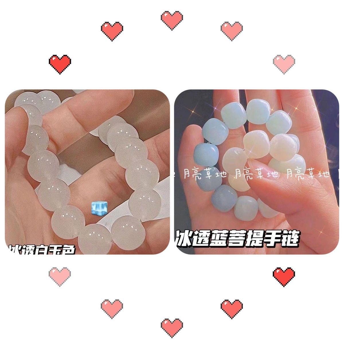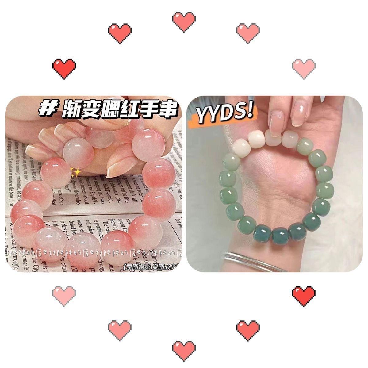 Pulsera Xiaohongshu, Color Degradado, Pulsera de Cuentas de Buda Rosa Transparente Hielo, Cuentas Redondas para Estudiante, Hecha a Mano para Mejores Amigas
