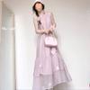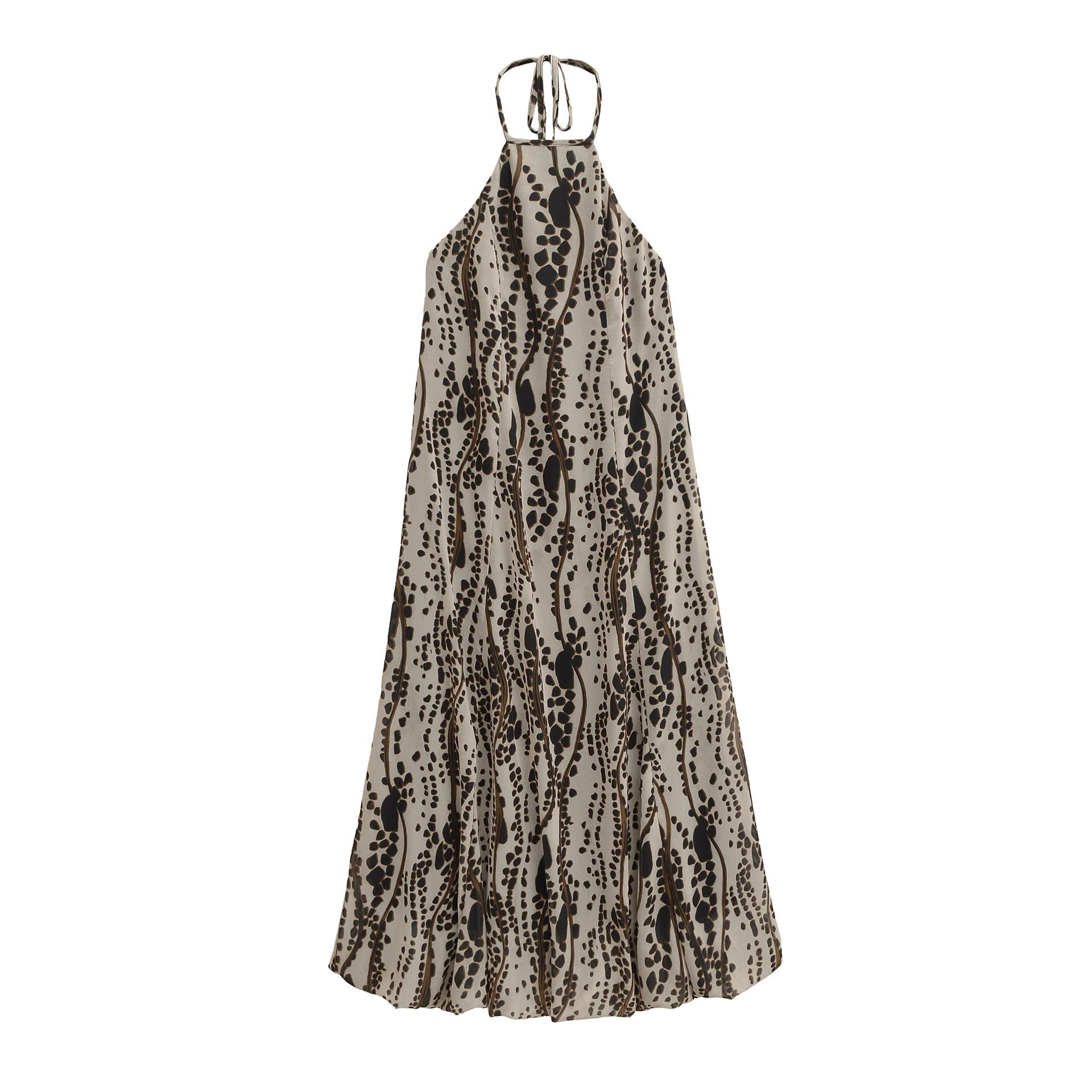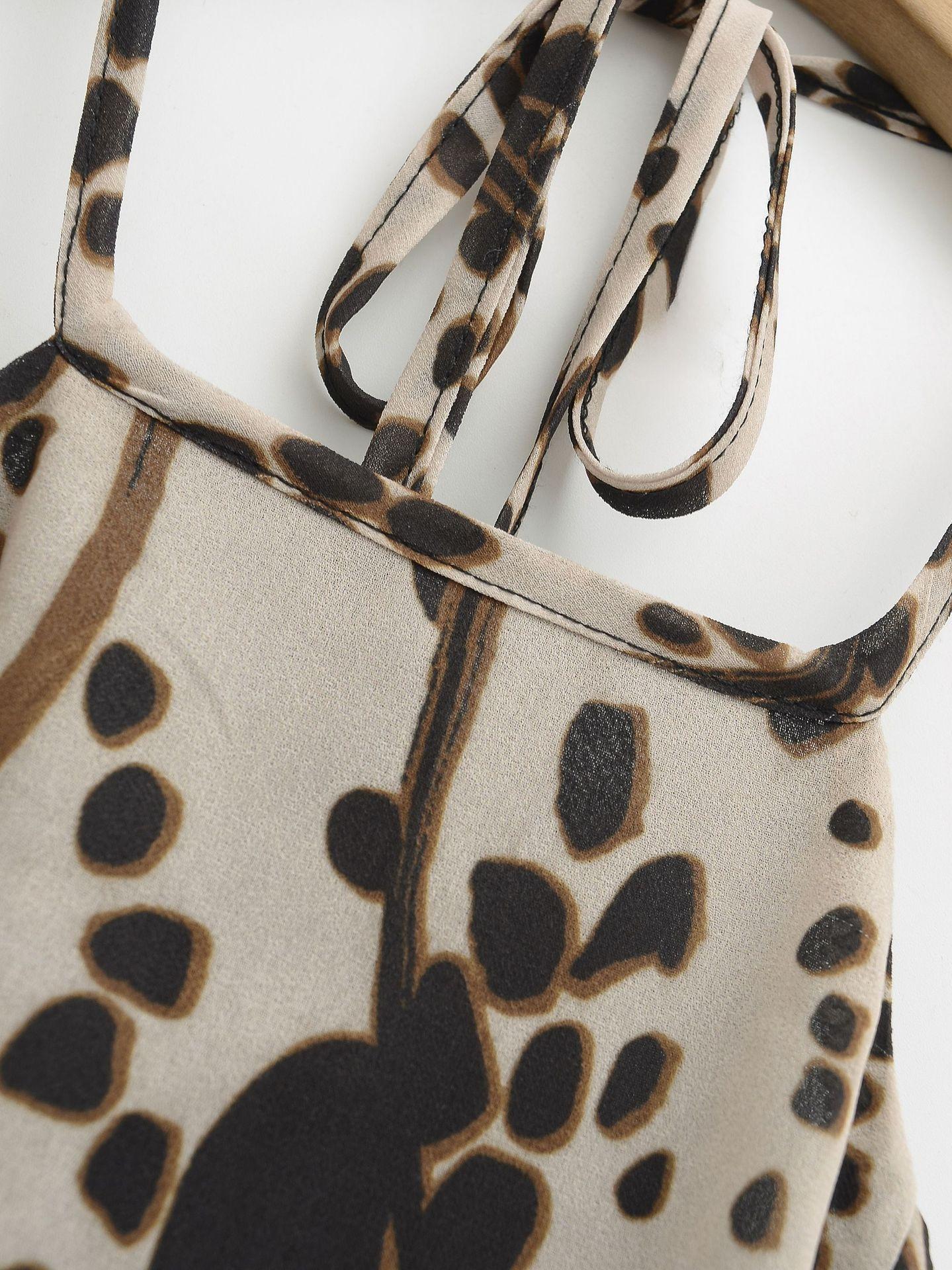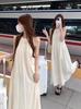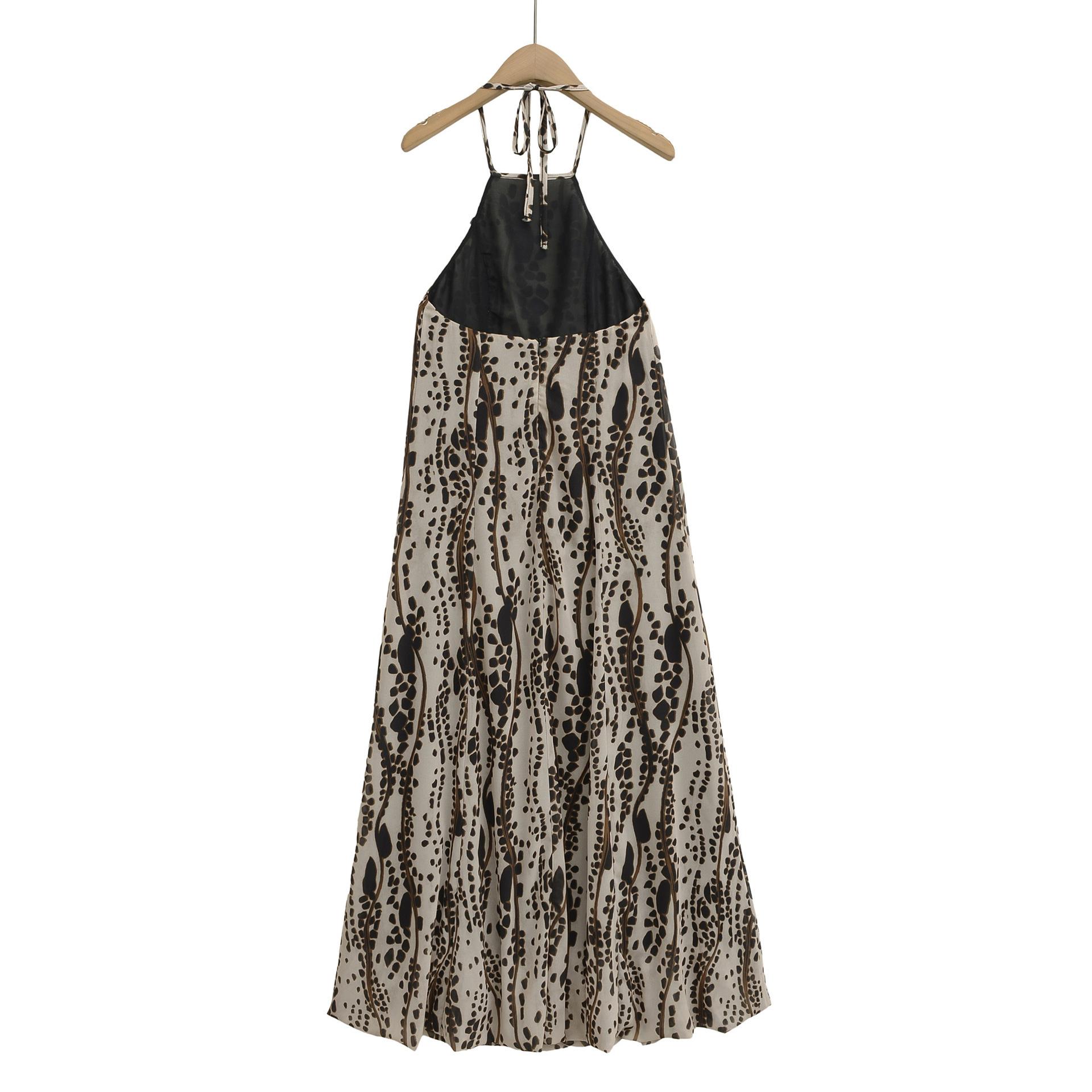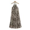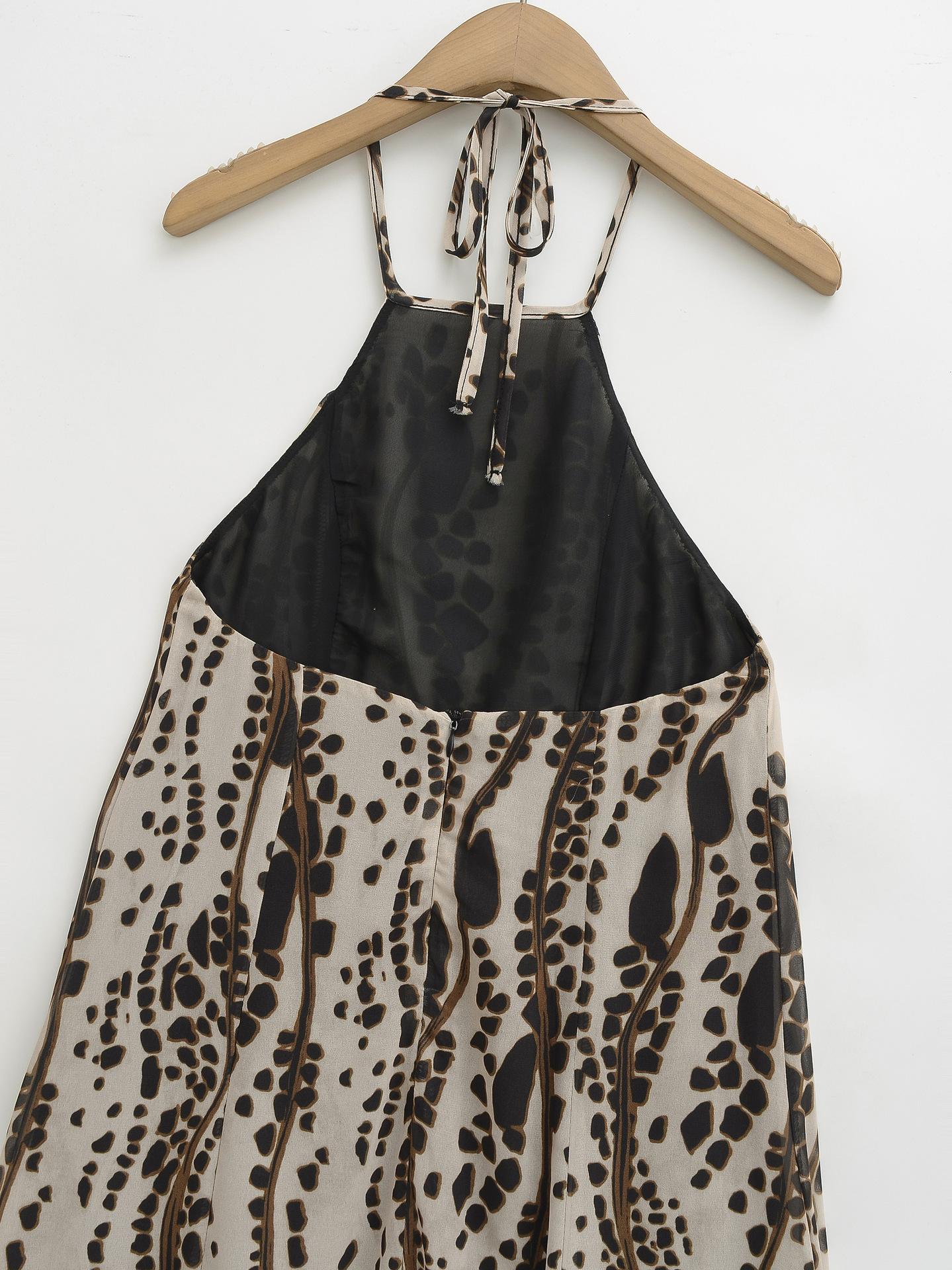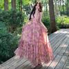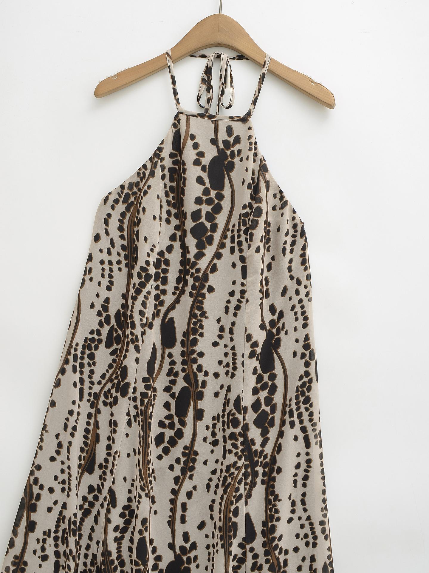 Falda de Tirantes Estampada de Gasa para Mujer 2025 Verano Nuevo Estilo Resort Costero Halter Sexy Vestido Grande sin Espalda
