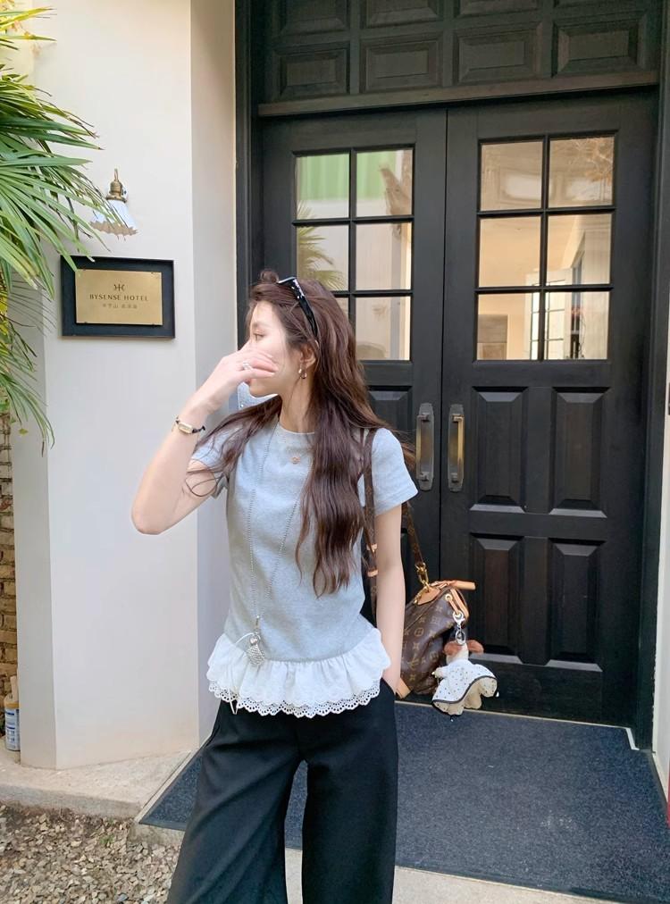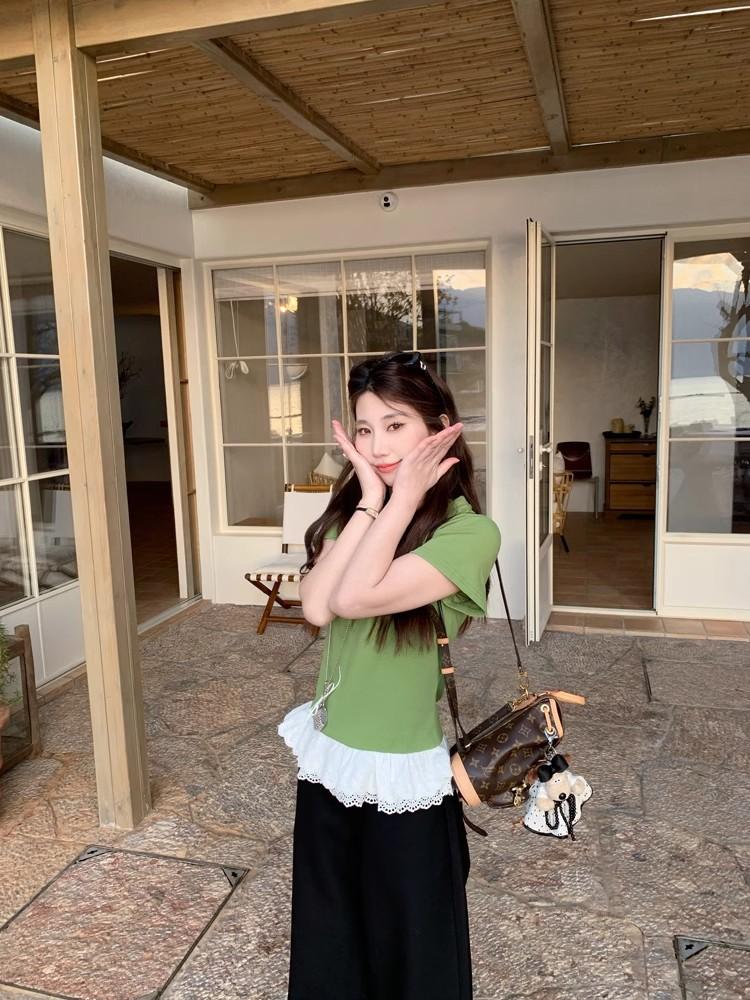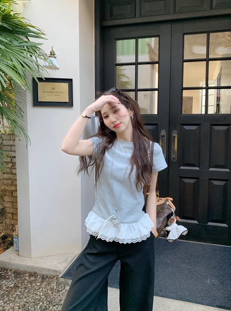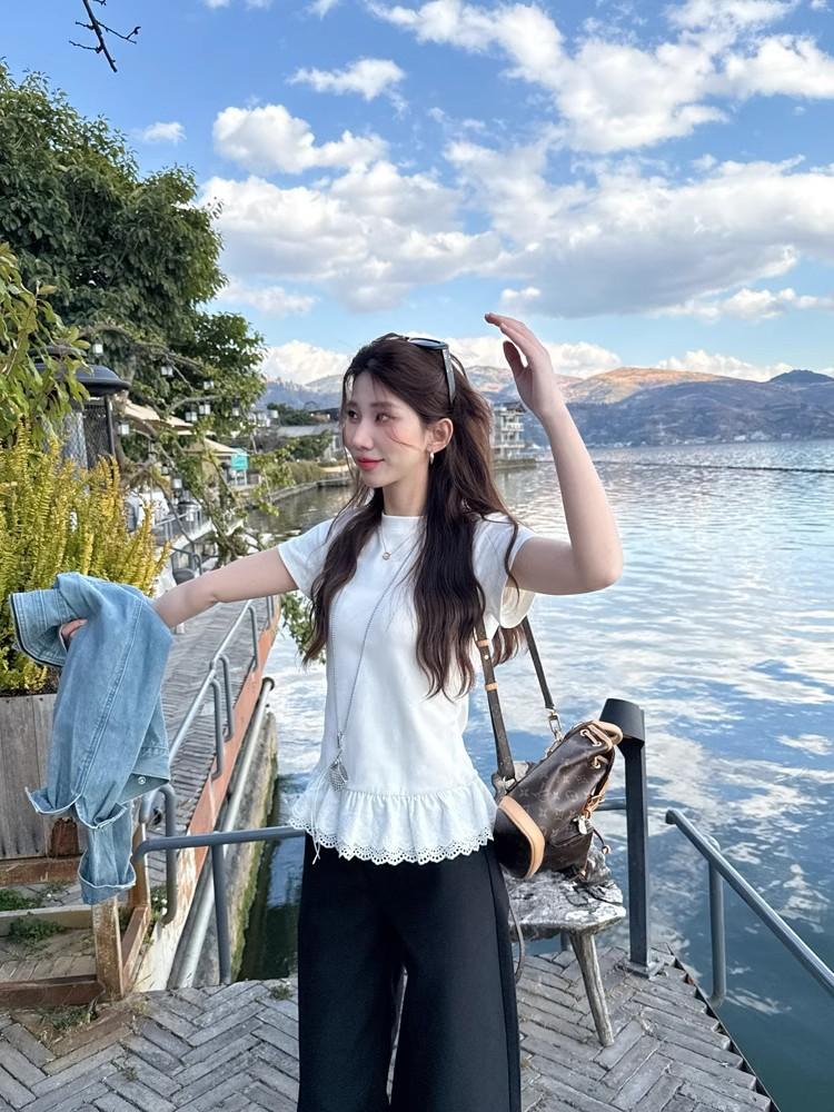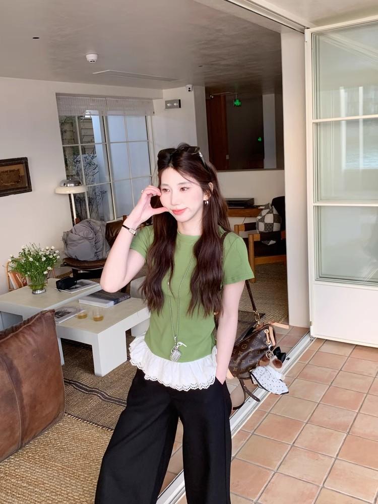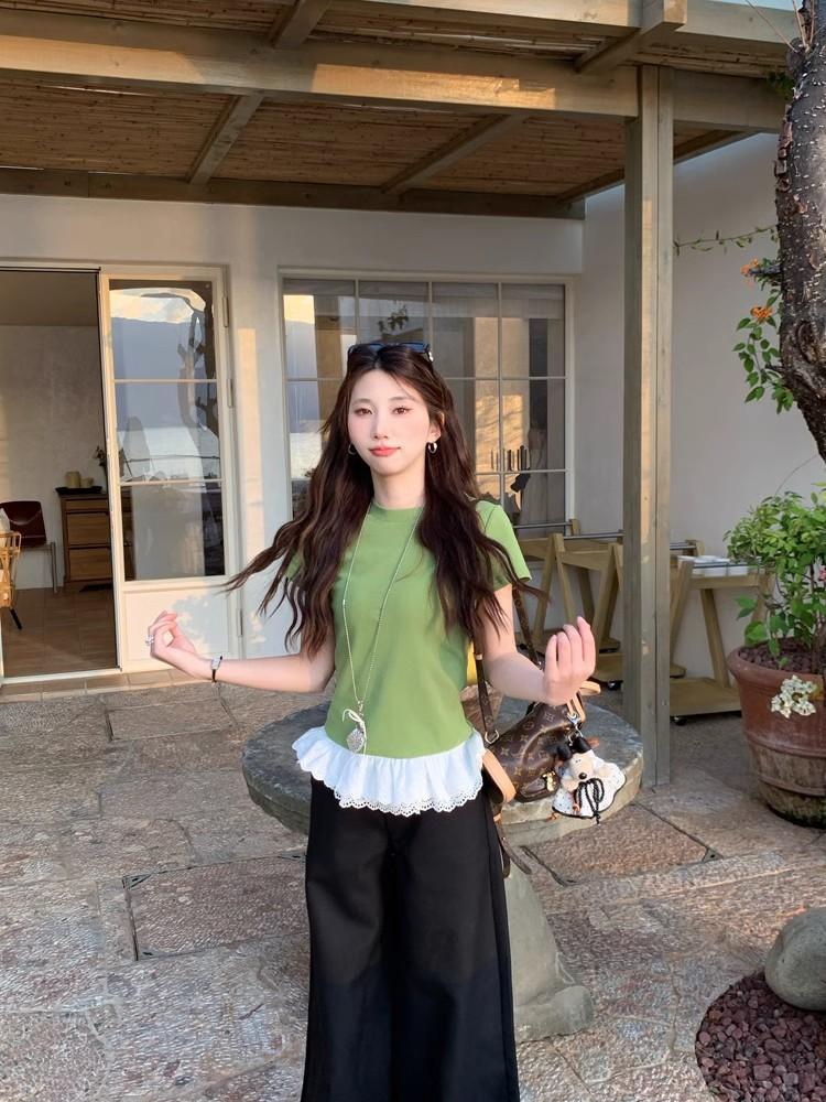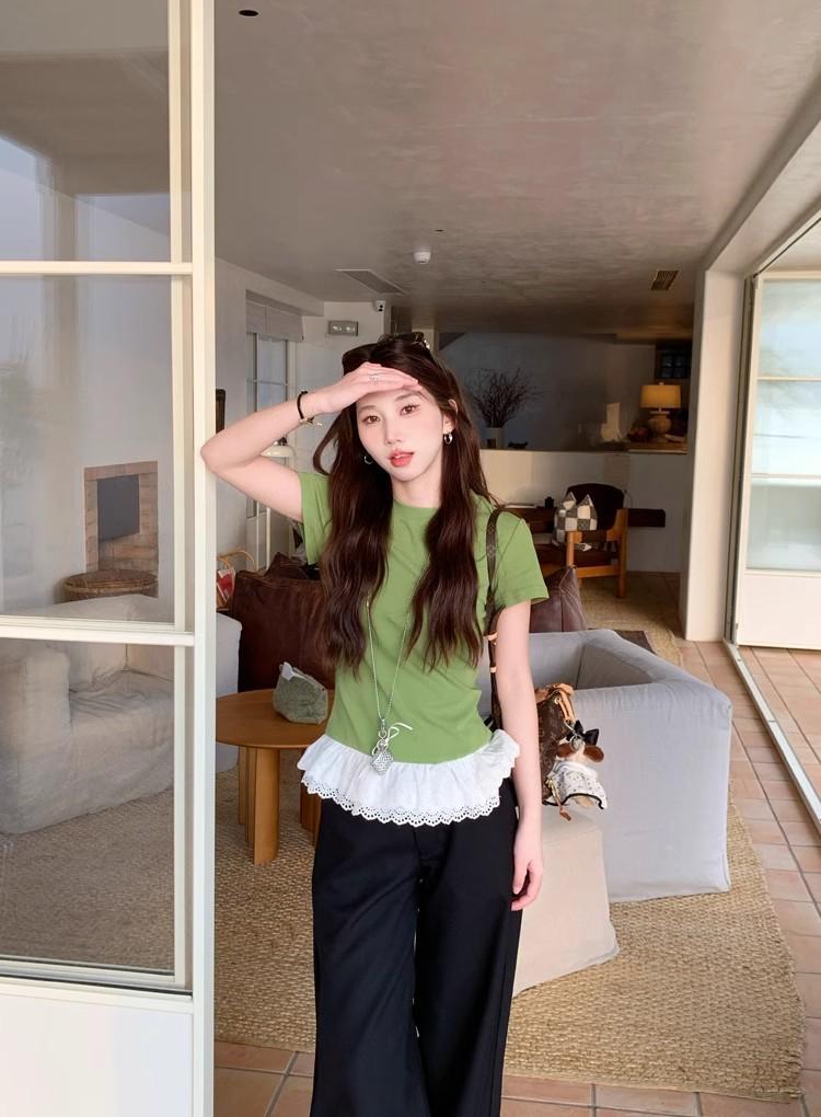 Jiujiu Encaje Blanco Empalme 2025 Nueva Camiseta de Manga Corta para Mujer Diseño de Verano Nicho Slim Camiseta Básica