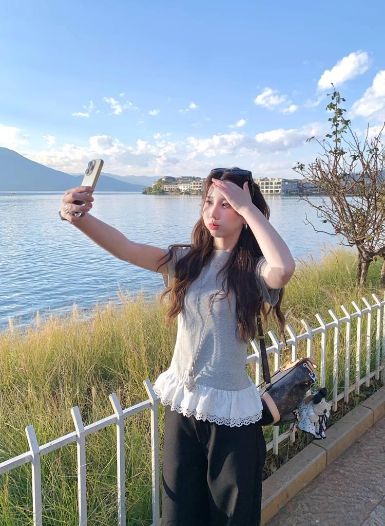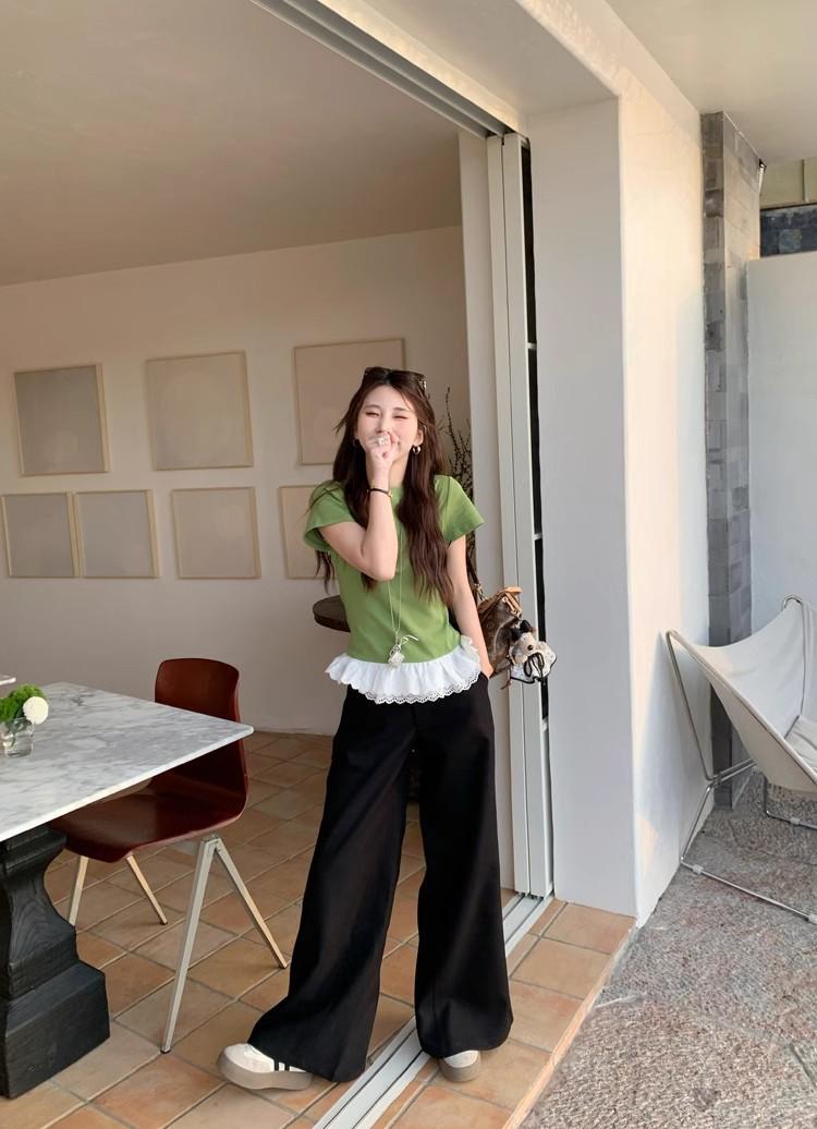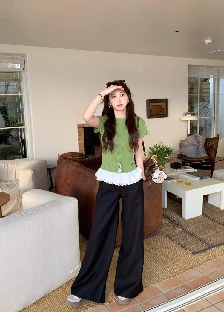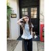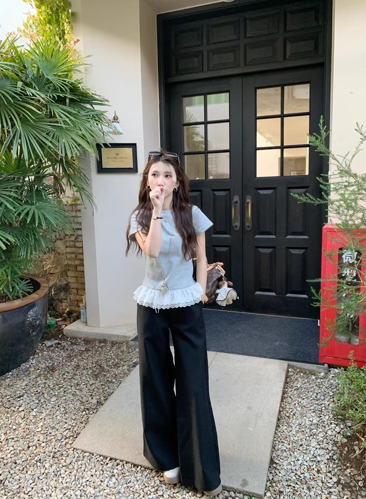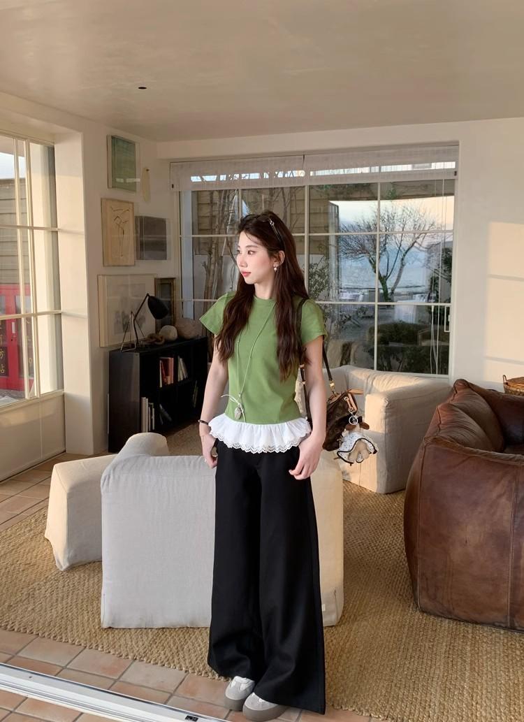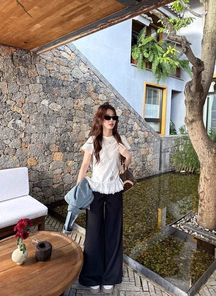 Jiujiu Encaje Blanco Empalme 2025 Nueva Camiseta de Manga Corta para Mujer Diseño de Verano Nicho Slim Camiseta Básica