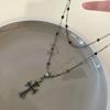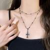 Collar de cuentas cruzadas de circonita Diablo para mujer, moderno collar largo de doble capa superpuesto con cadena para el cuello, cadena de clavícula ligera y de lujo de nicho.