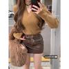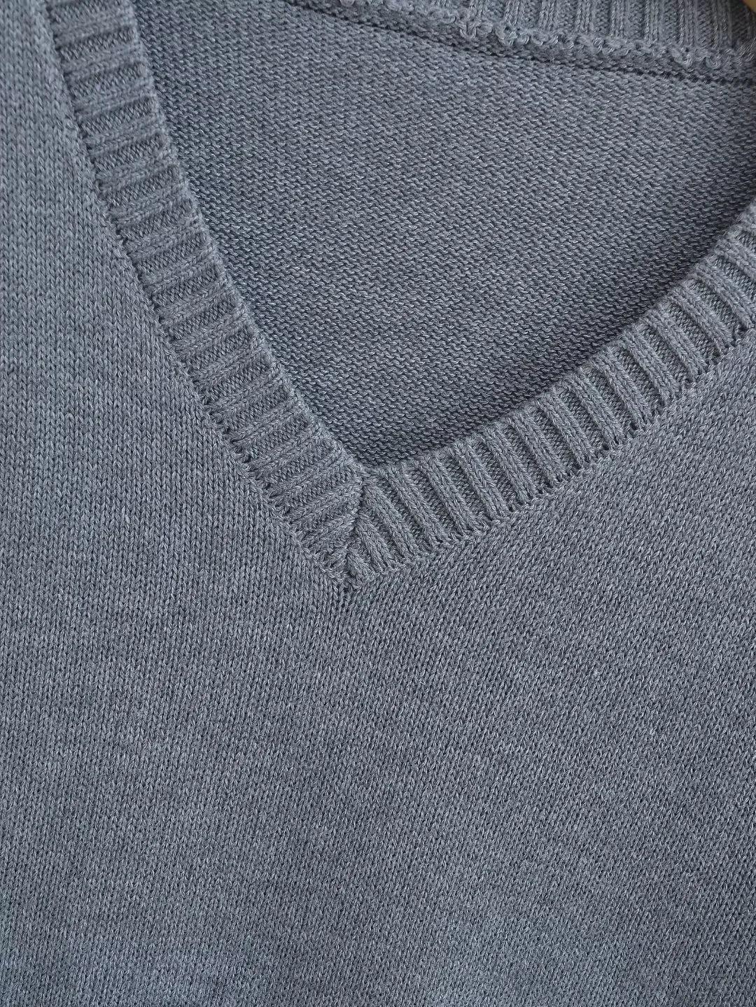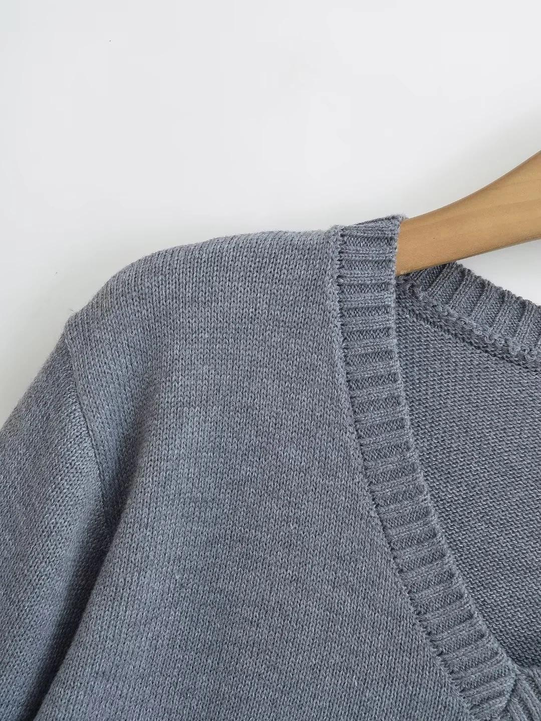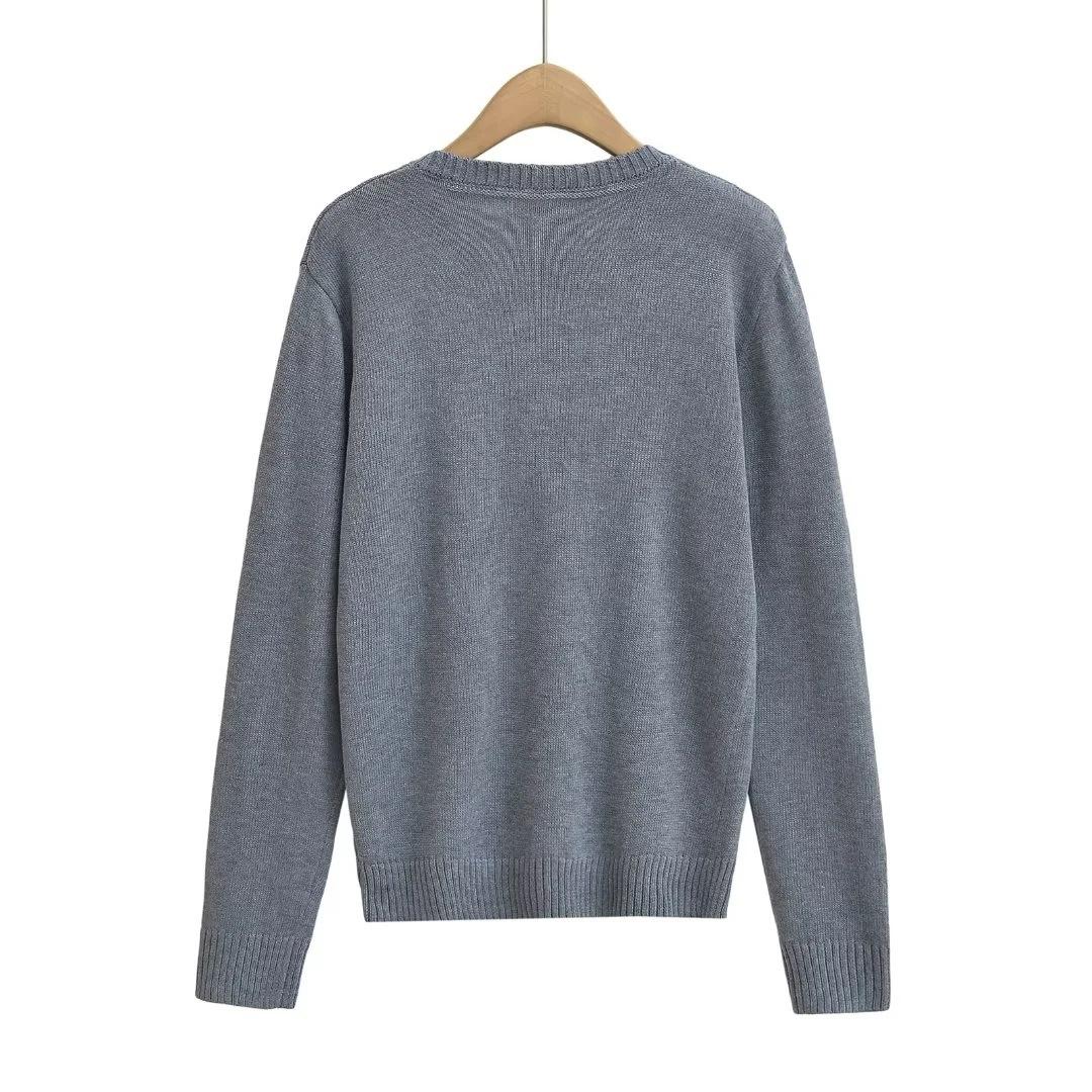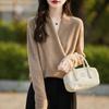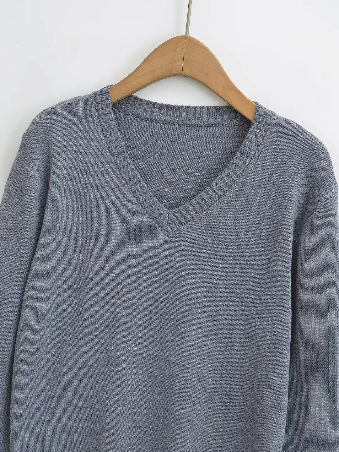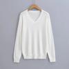 Suéter de Punto Holgado para Mujer de Color Sólido Simple con Cuello en V Otoño e Invierno Estilo Europeo y Americano Neutro Manga Larga Cuello Corazón de Pollo Suéter Casual