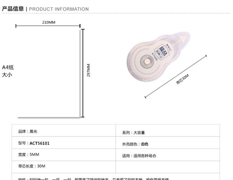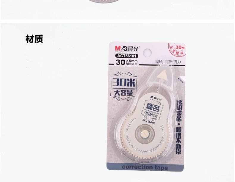 Chenguang ACT56101 Cinta Correctora Simple Núcleo Transparente Gran Capacidad Cinta Continua Suave 30m Núcleo PET Corrección