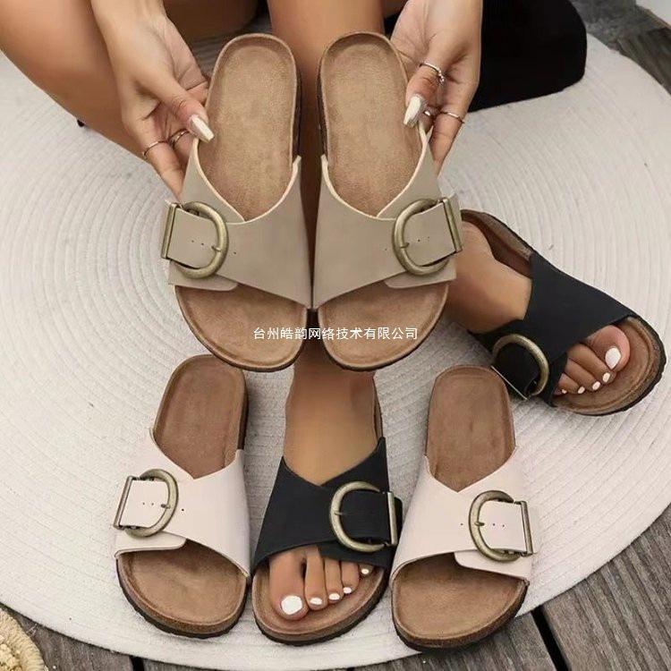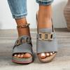 Pantuflas de Plataforma de Suela Gruesa para Mujer Comercio Exterior Transfronterizo Zapatos de Mujer Verano Nuevo Moda Europea y Americana Hebilla de Cinturón Sandalias de Punta Abierta para Mujer