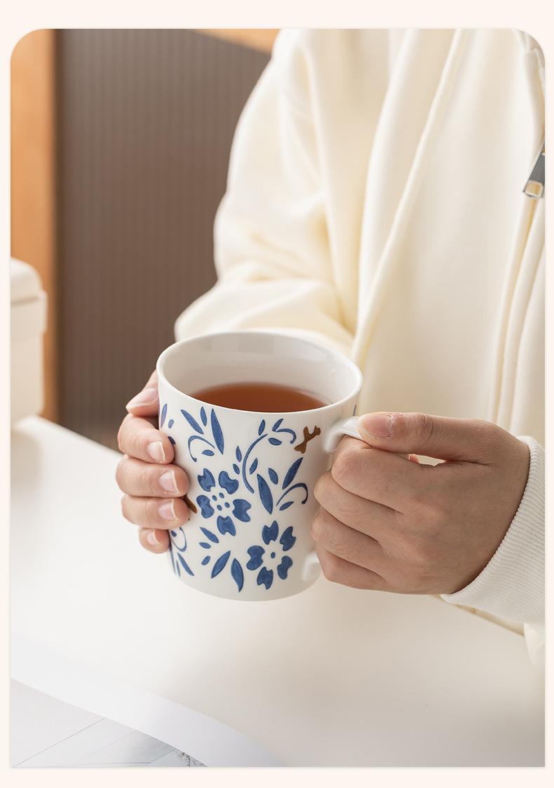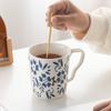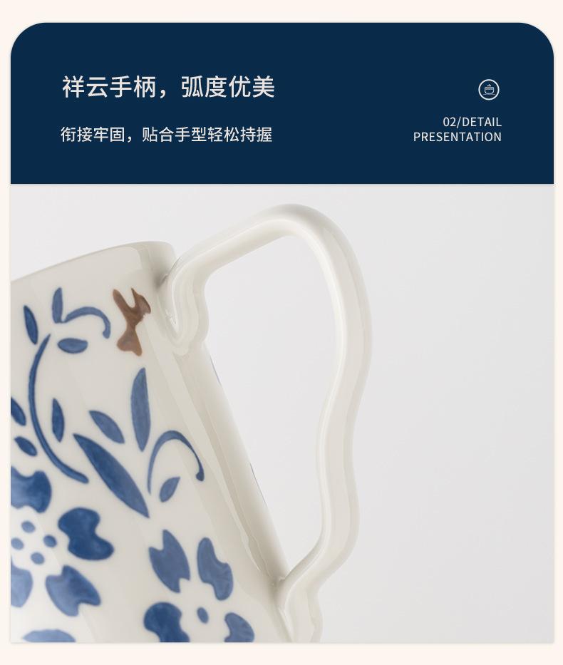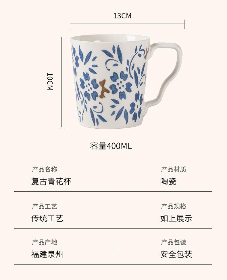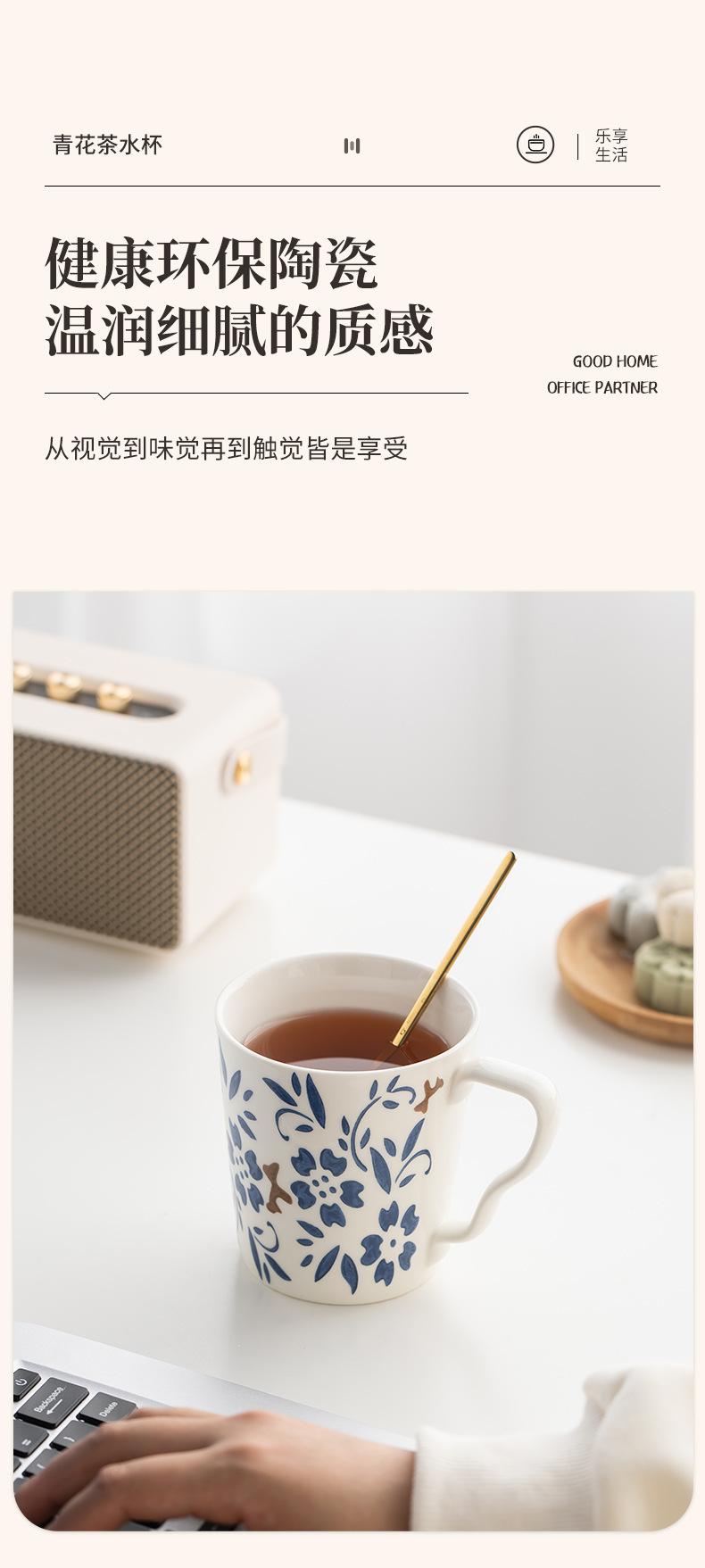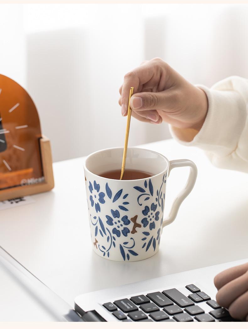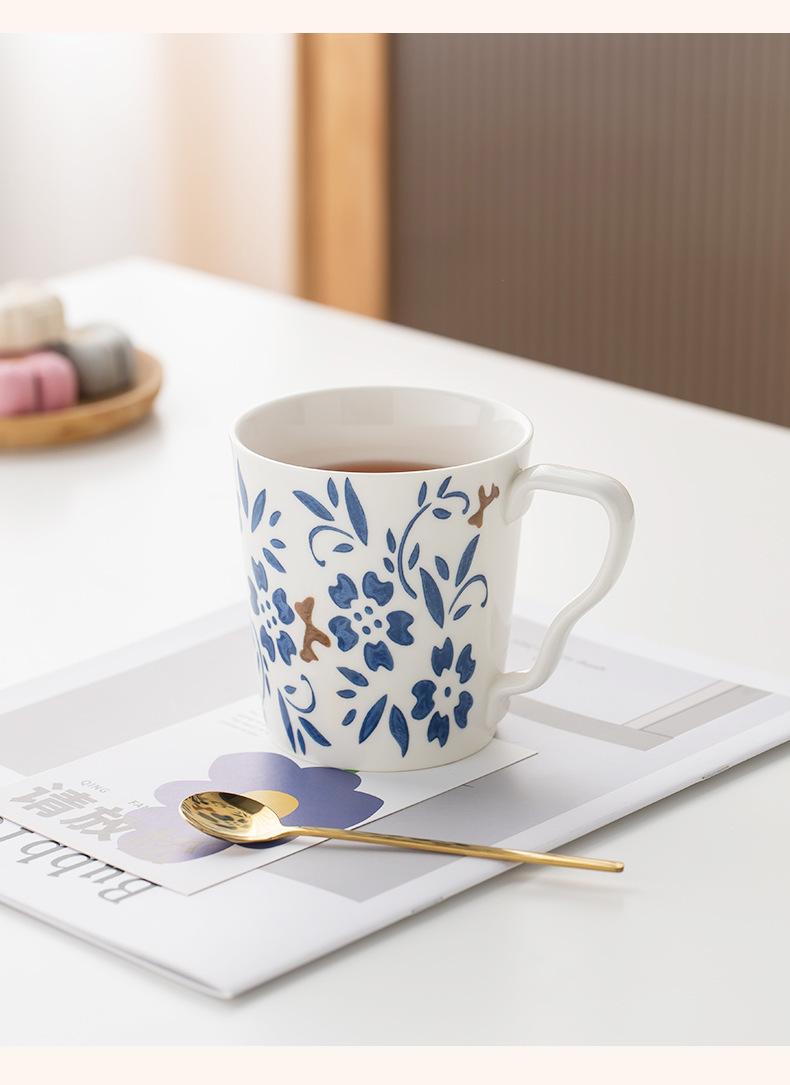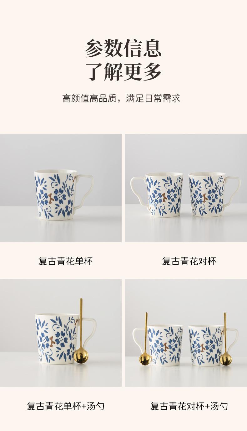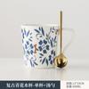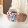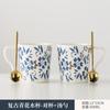 Retro Blue and White Mug - Single Cup + Spoon, Retro Blue and White Porcelain Water Cup - Set of Two + Spoons