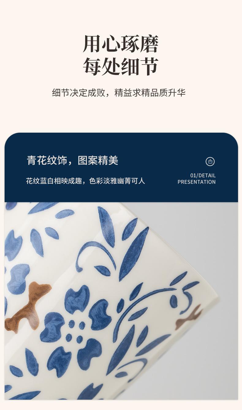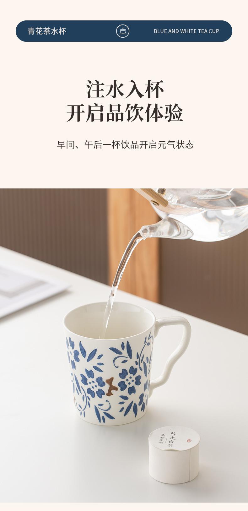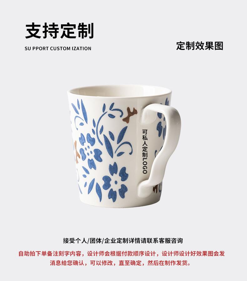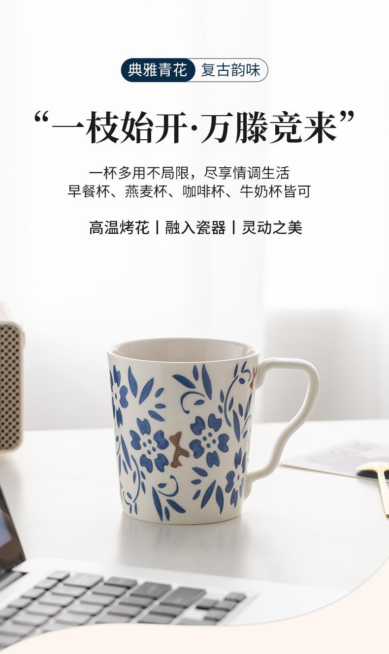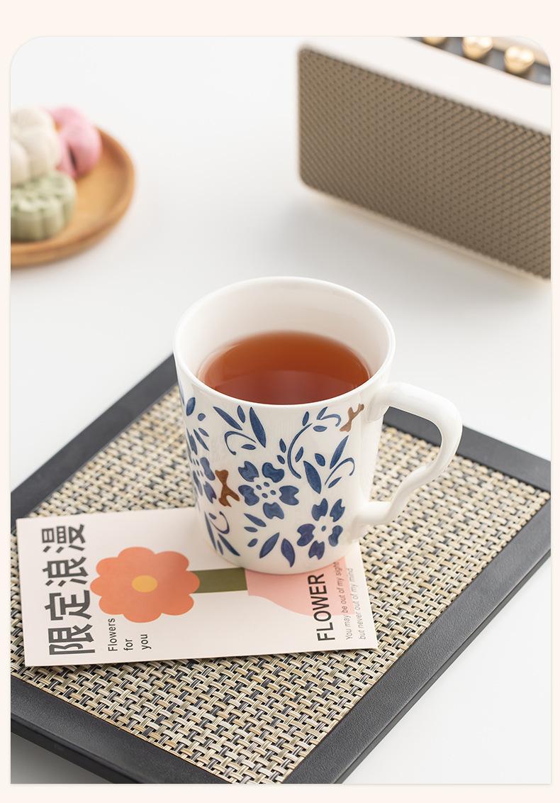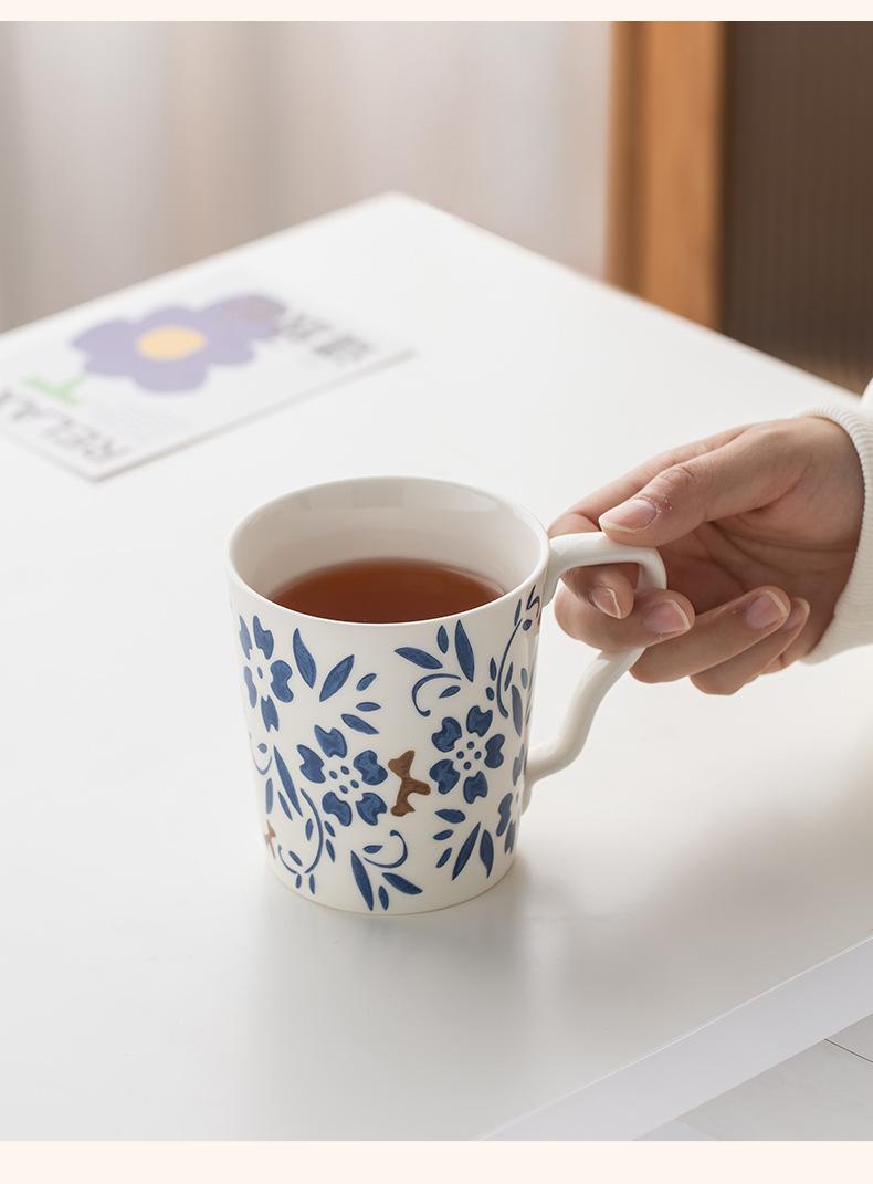 Retro Blue and White Mug - Single Cup + Spoon, Retro Blue and White Porcelain Water Cup - Set of Two + Spoons