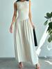 Vestido Midi Elegante Retro Francés de Verano 2025 Cuello Redondo Cintura Ajustada Adelgazante A-line sin Mangas con Pliegues Empalmados