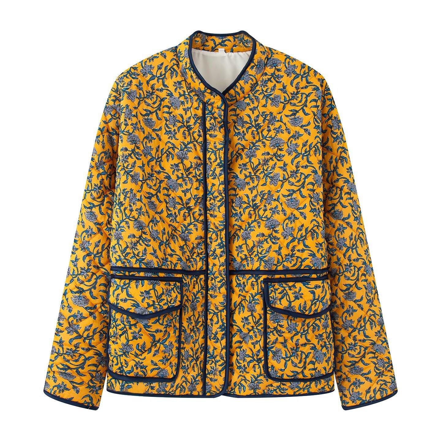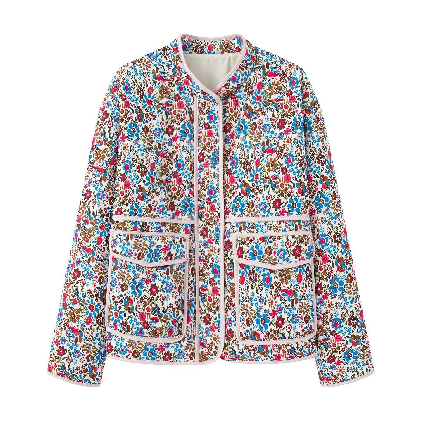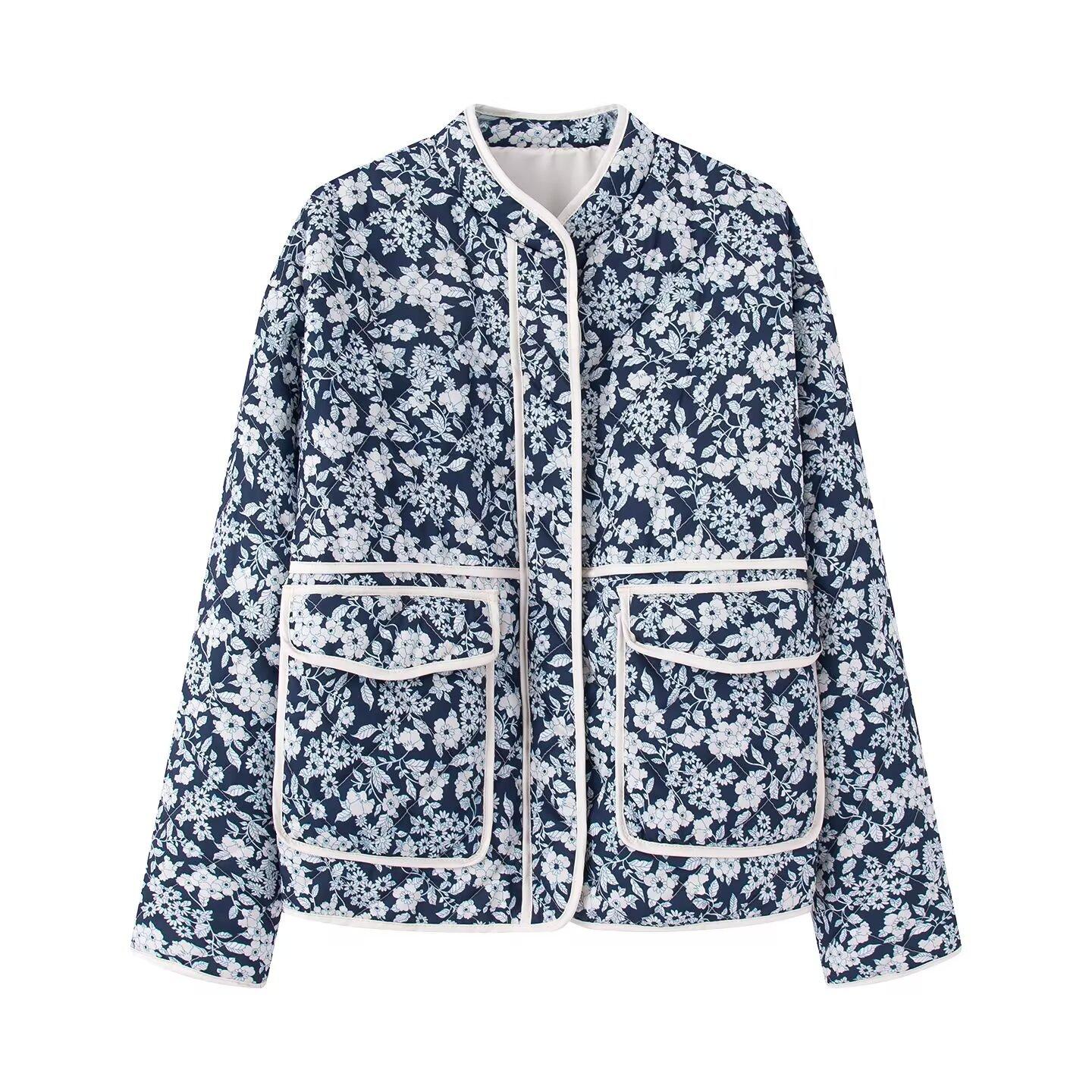 2025 Otoño e Invierno Nuevo Europeo y Americano Transfronterizo Moda Urbana para Mujer Chaqueta de Algodón Estampada con Cuello Alto W034 25093