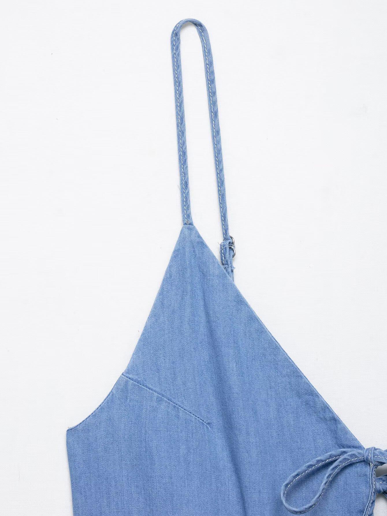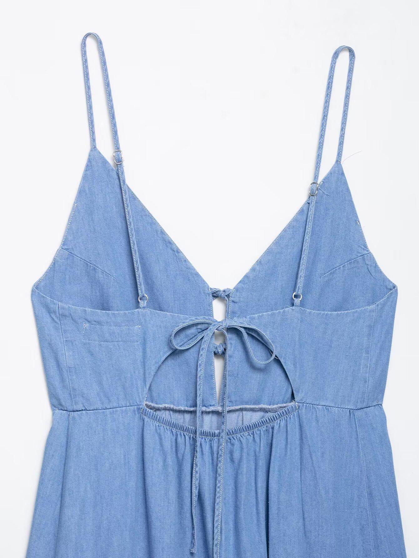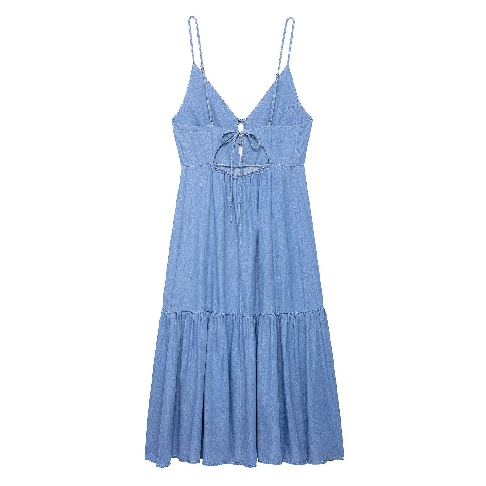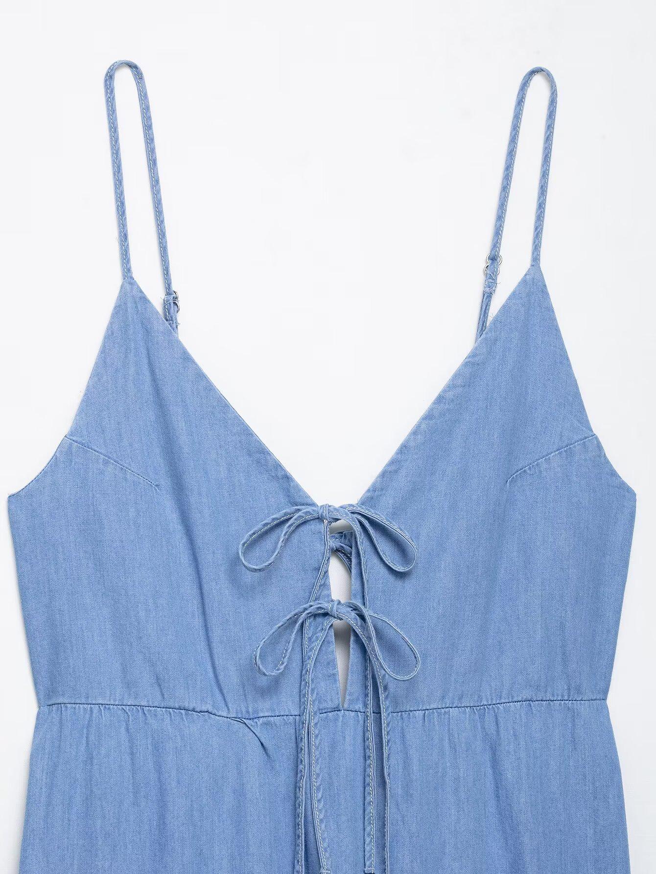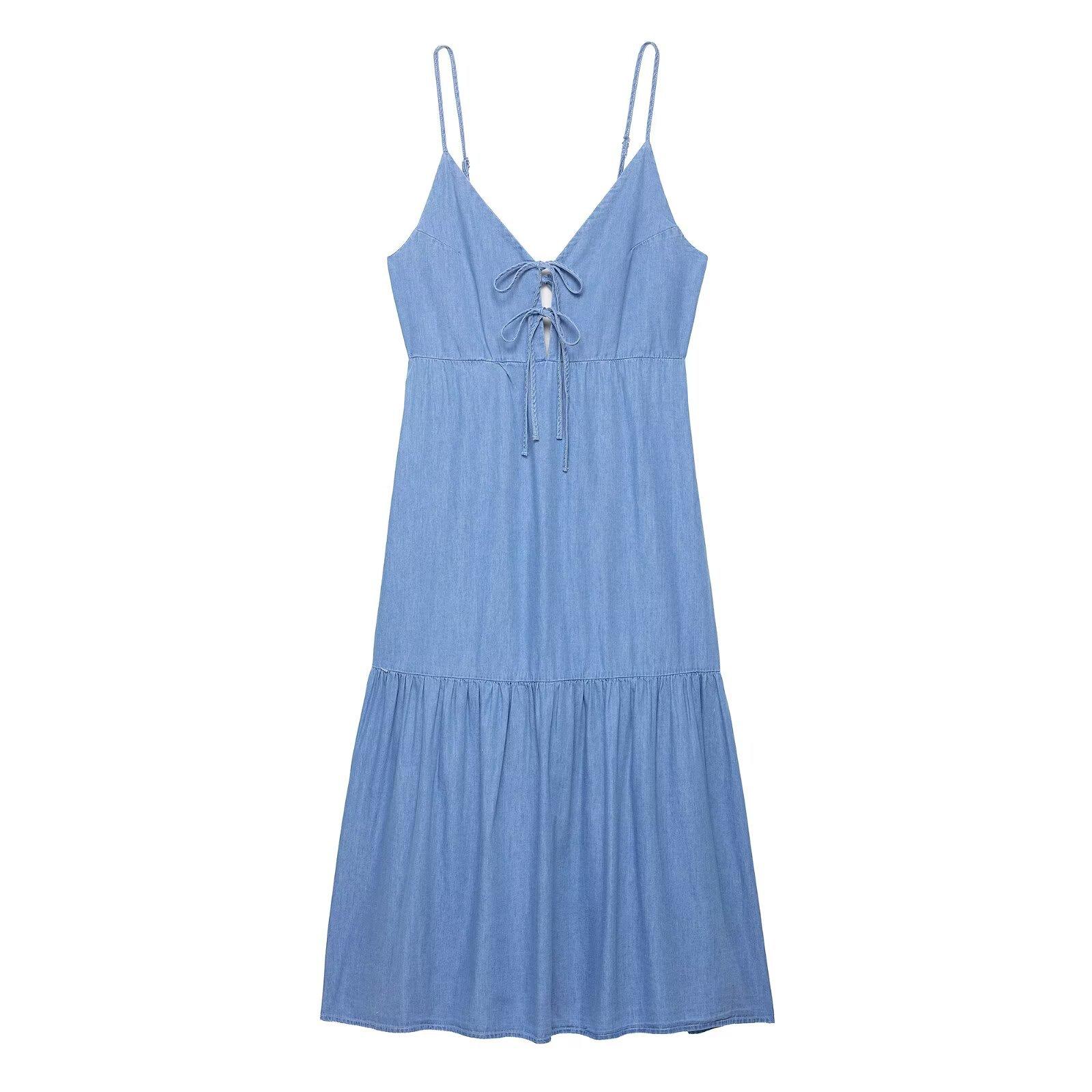 Verano 2025 Nuevo Vestido Midi de Tirantes con Lazo Decorativo de Moda Femenina Transfronteriza Europea y Americana W085 265751