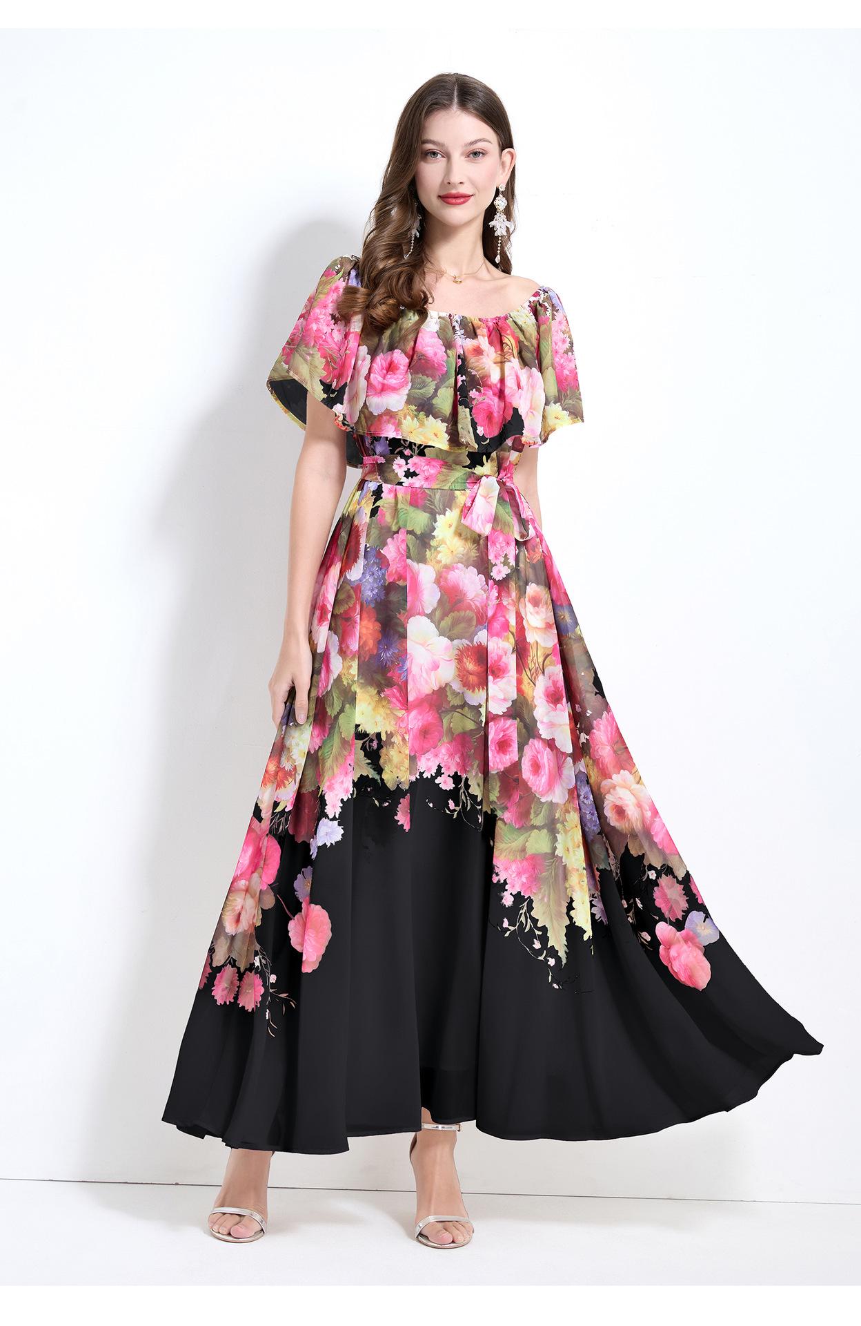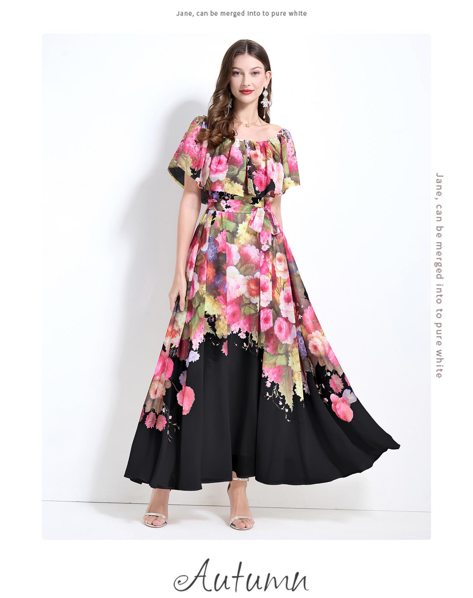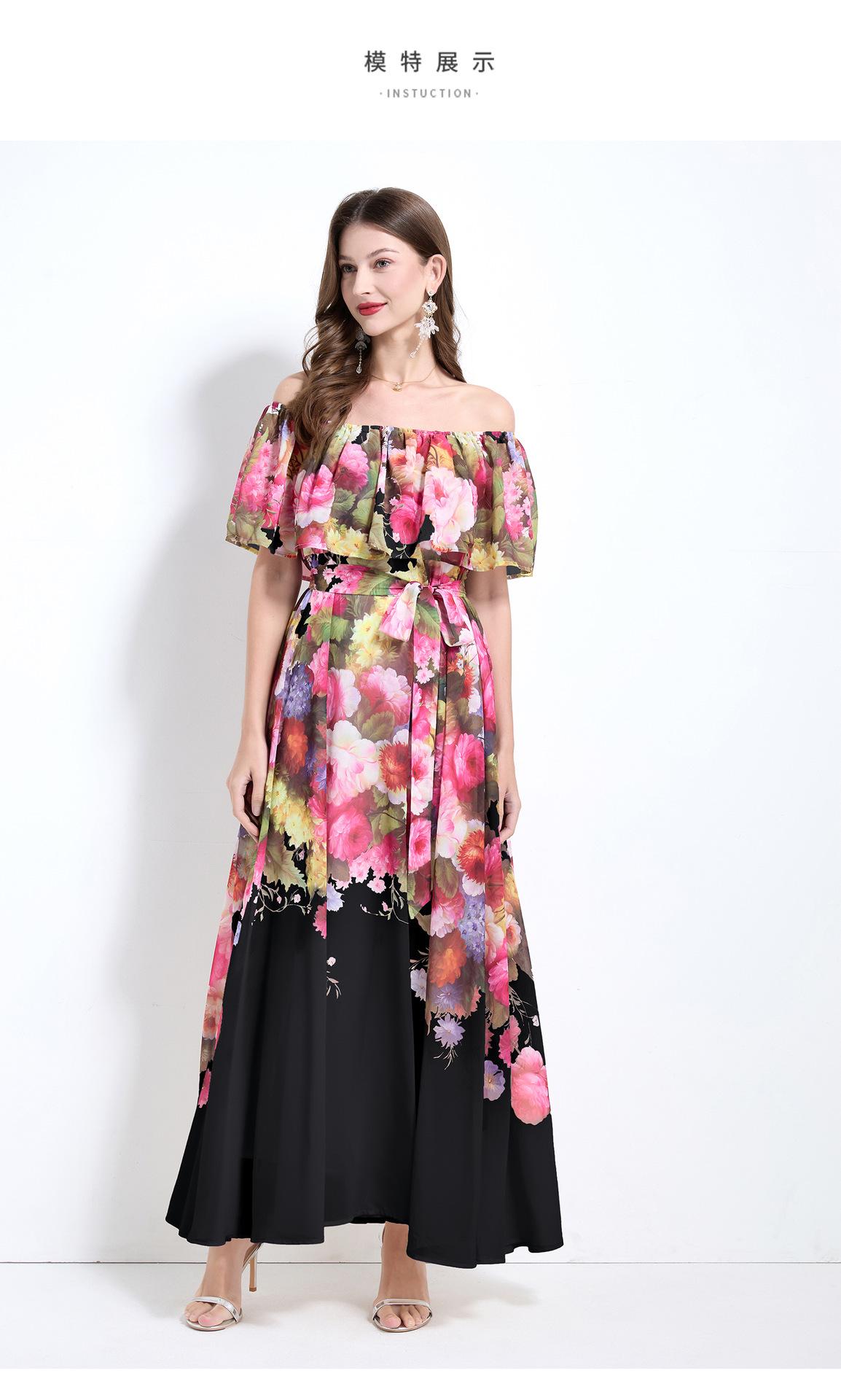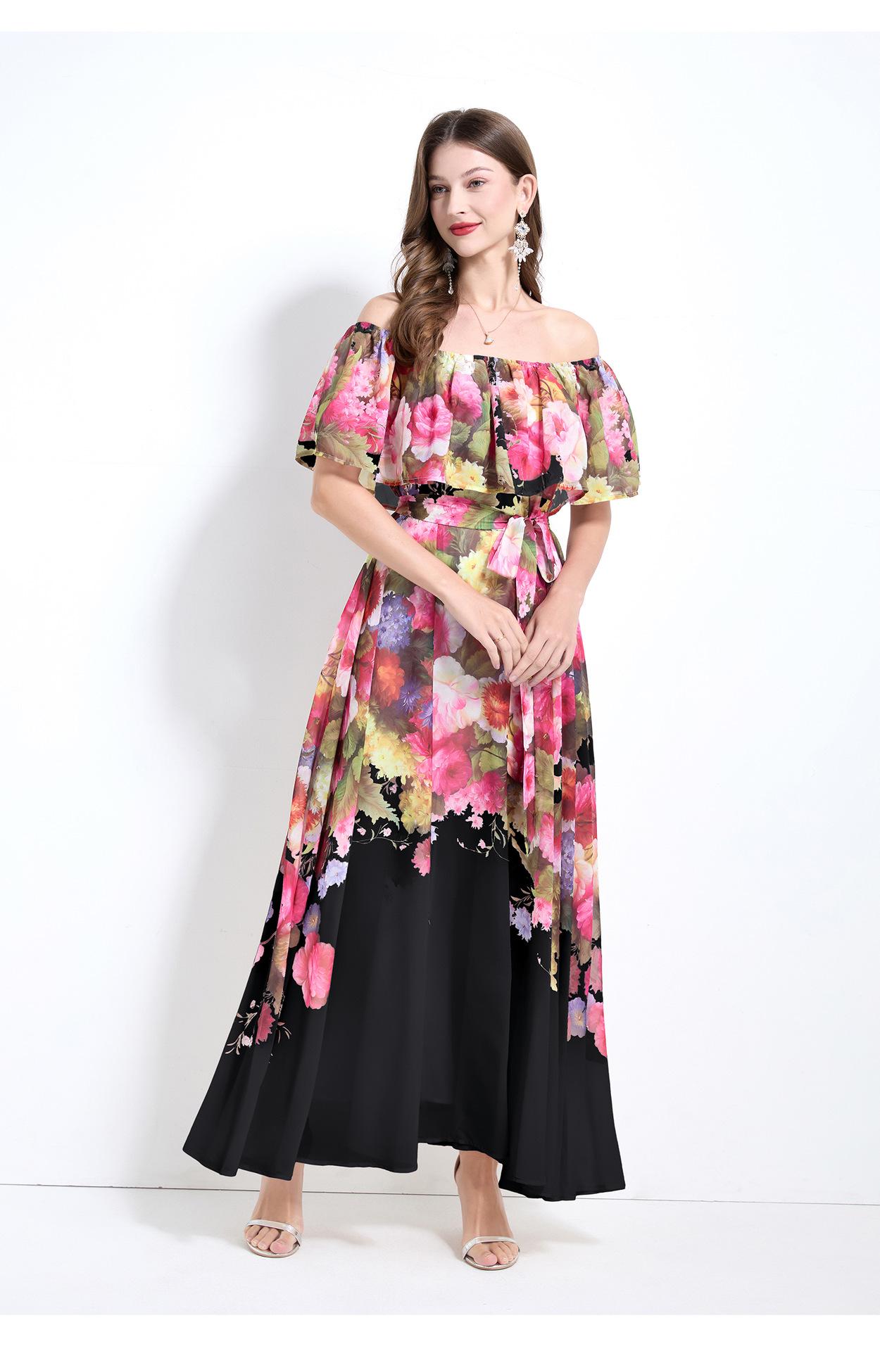 2025 Vestido de un hombro de dos usos con estampado de hada de flores para vacaciones junto al mar, con cintura y falda con volantes