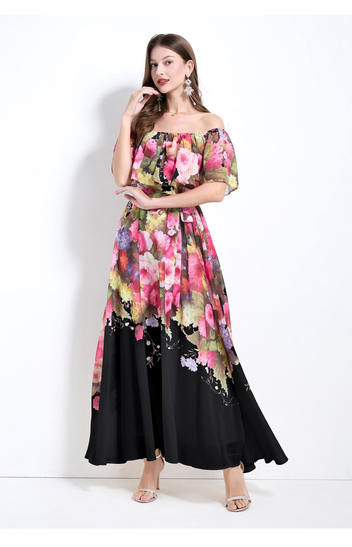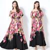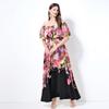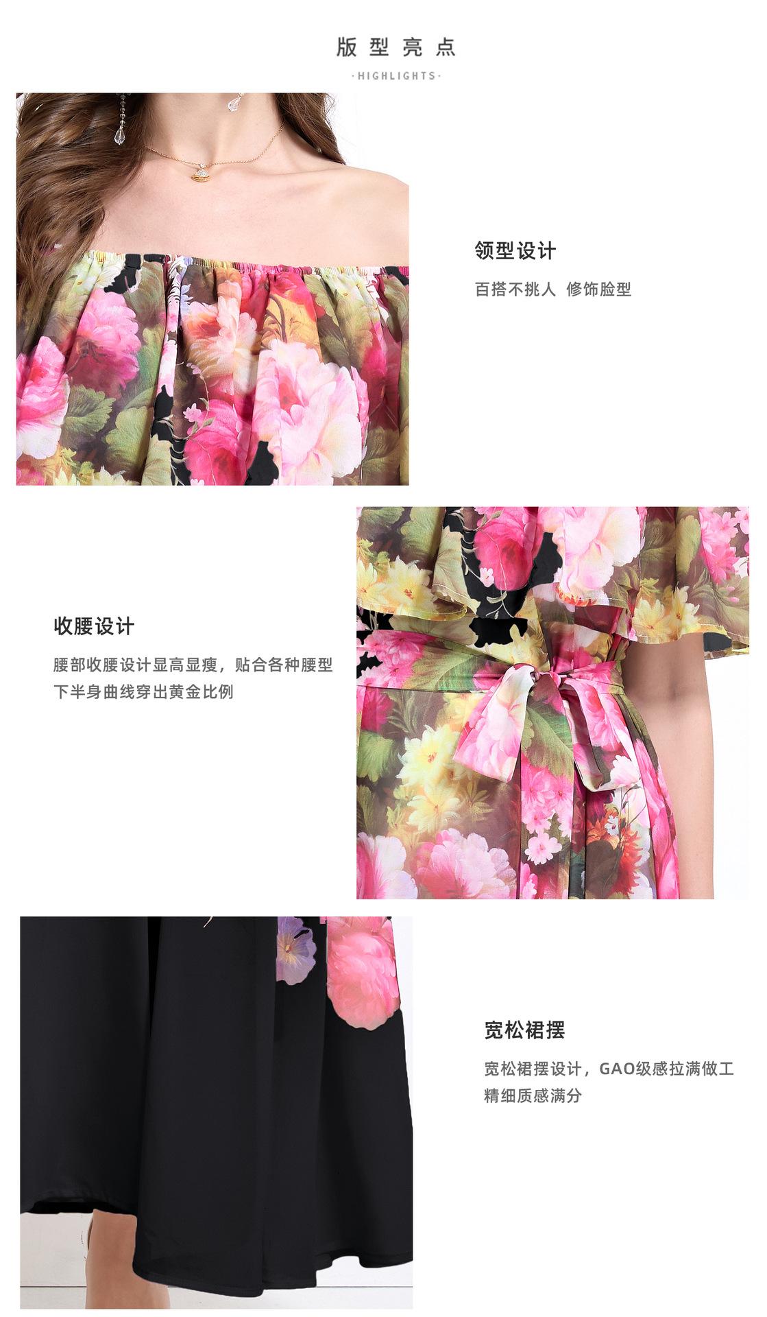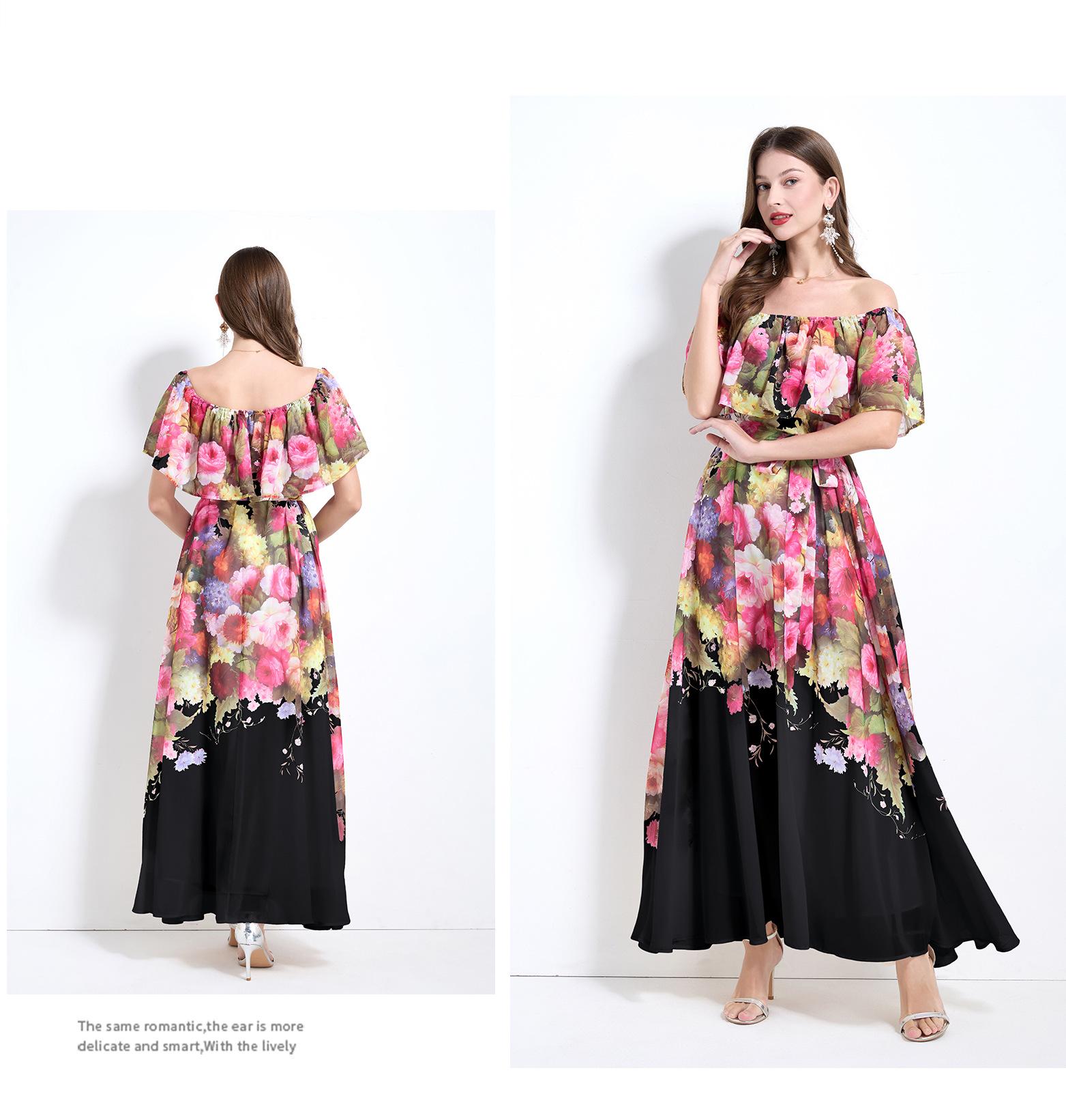 2025 Vestido de un hombro de dos usos con estampado de hada de flores para vacaciones junto al mar, con cintura y falda con volantes