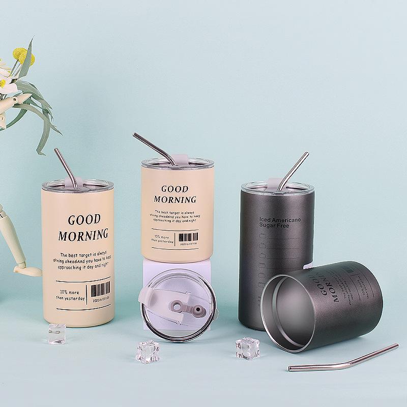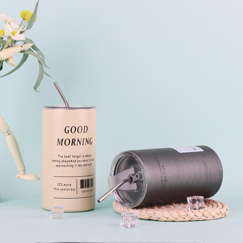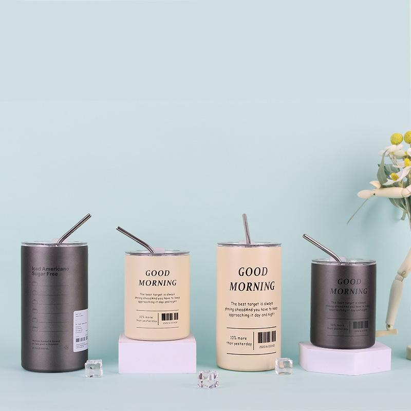 Acero Inoxidable 304 Taza de Café Americano Helado Latte Vaso al Vacío para Coche Doble Capa con Popote Vaso Recto Aislamiento para Oficina