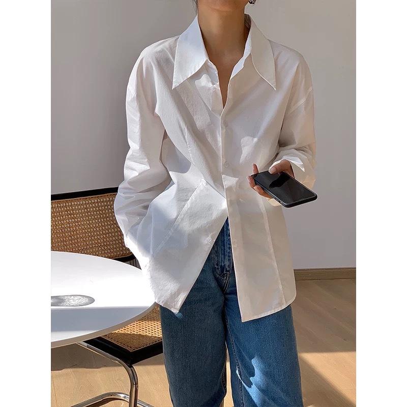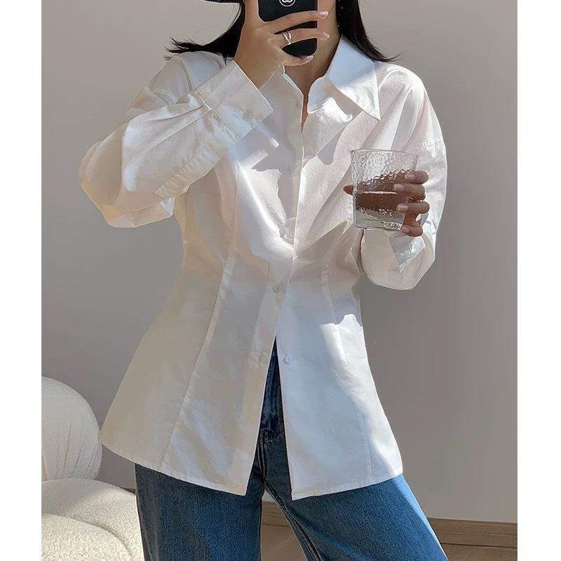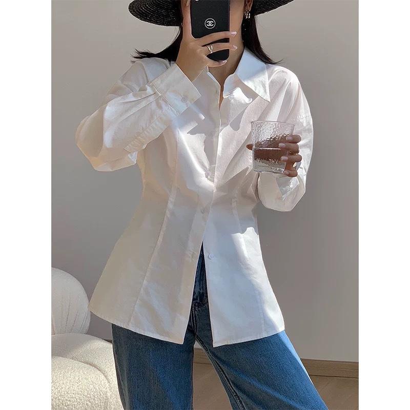 Camisa de Cuello Grande para Mujer para Vestir Exterior Primavera y Otoño 2025 Nuevo Diseño de Top Ajustado a la Cintura Niche Casual Camisa con Solapa