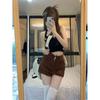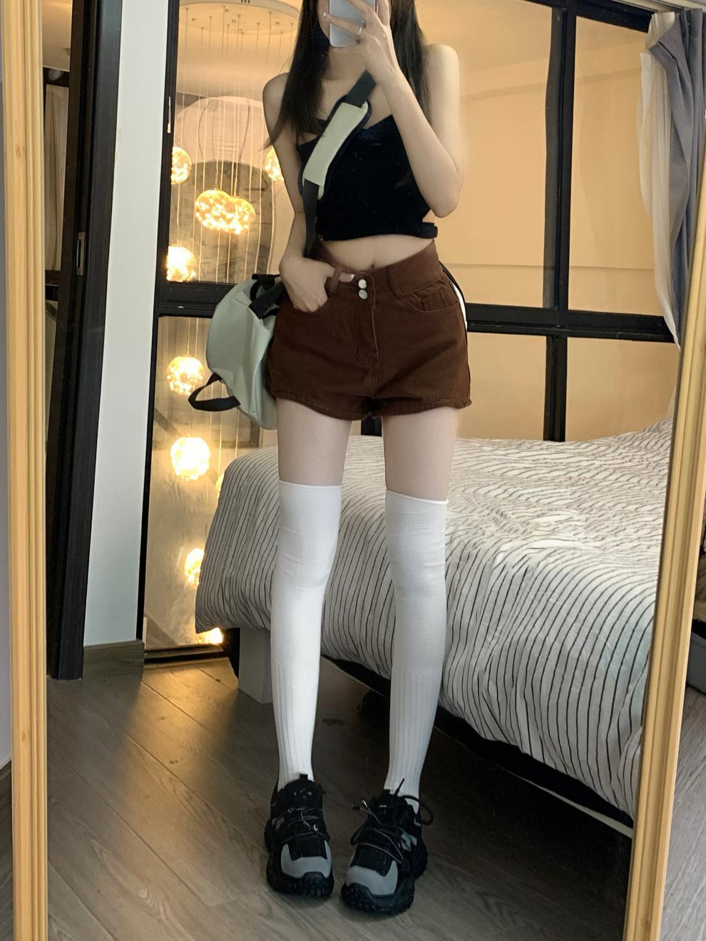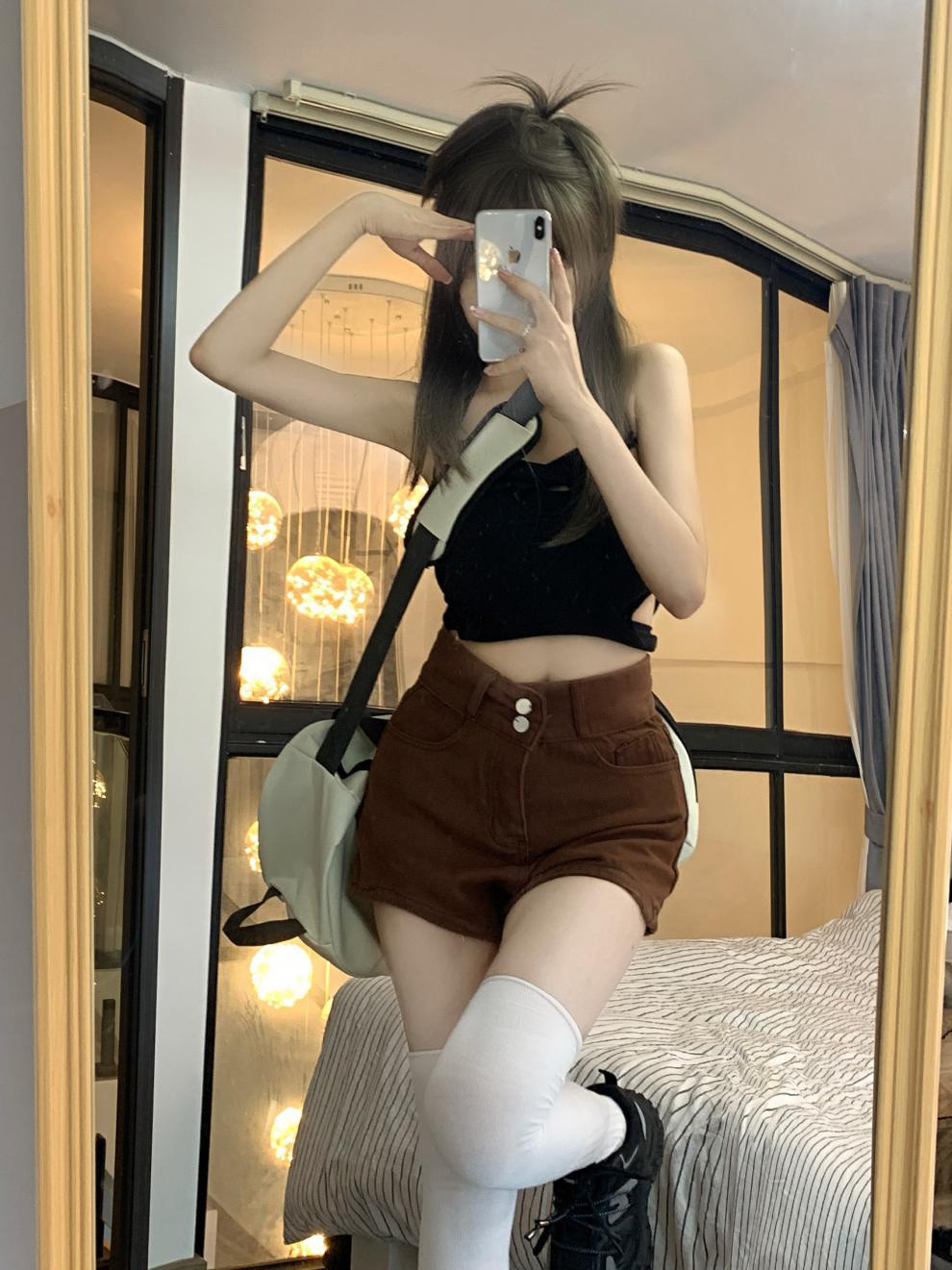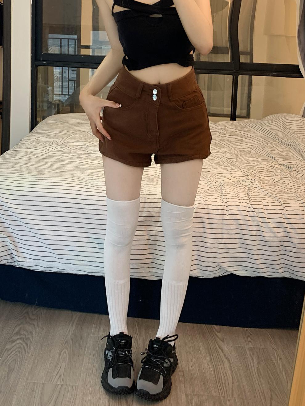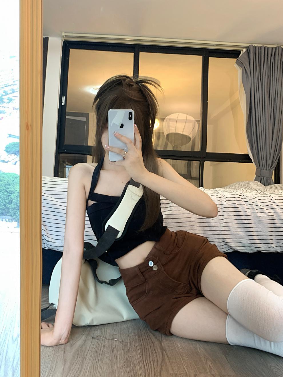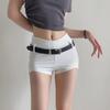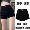 Shorts de Mezclilla Negros para Mujer Verano Nuevo Estilo Americano Doble Hebilla Cintura Alta Ajustados Slim Cadera Calientes Pantalones Línea A