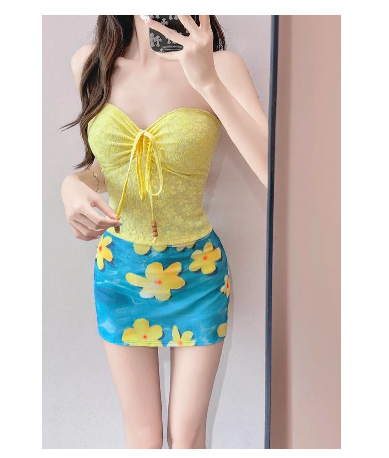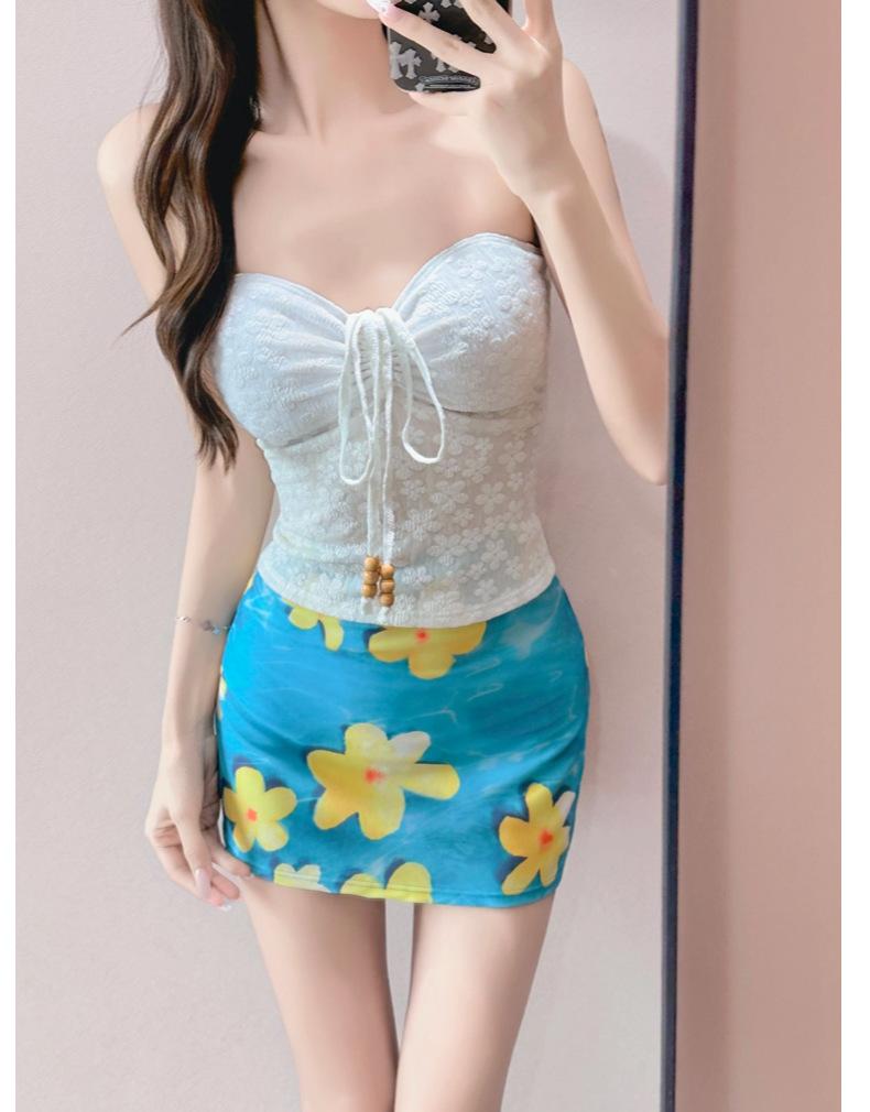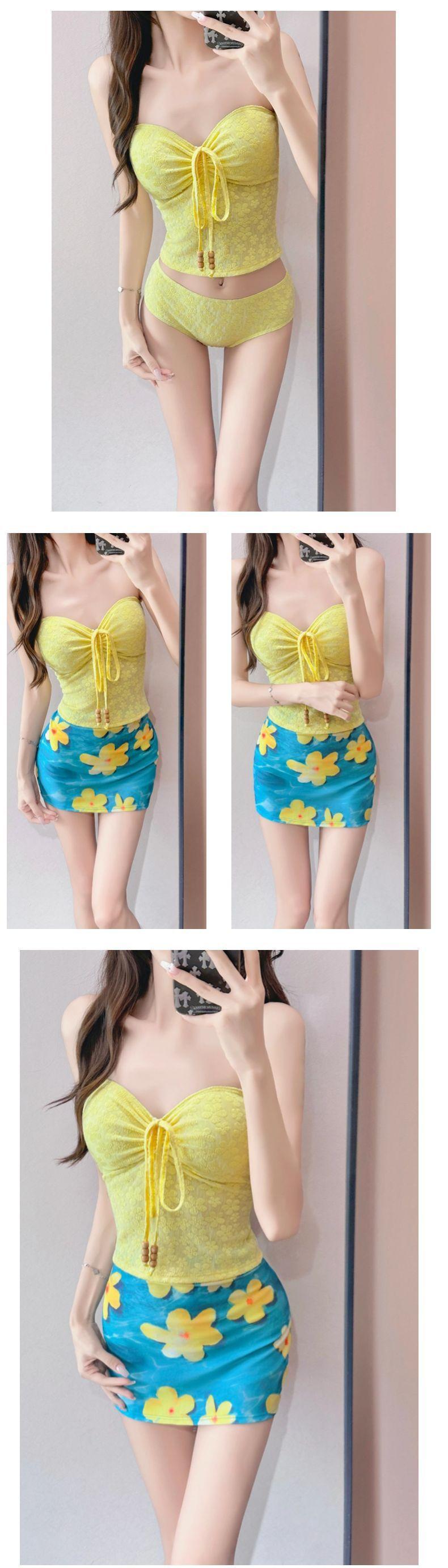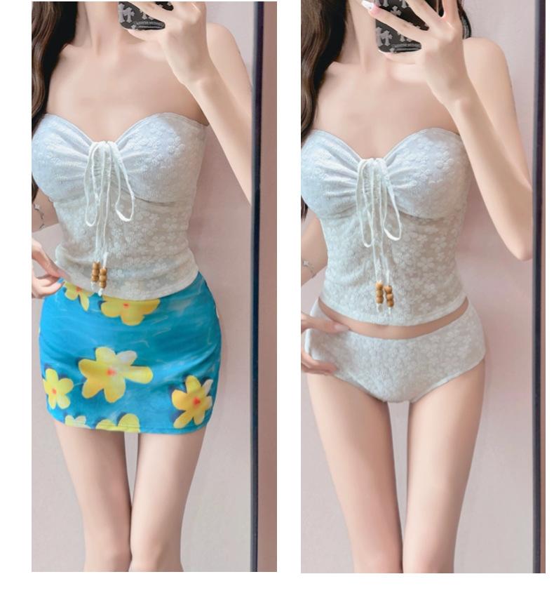 Nuevo Conjunto de Verano para Chica Dulce Junto al Mar Dopamina Bikini Cubre Caderas Bikini Traje de Baño de Tres Piezas para Mujer