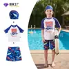 Traje de Baño para Niños Traje de Baño de Manga Larga de Secado Rápido para Niño Vestido de Verano para Niño Traje de Tres Piezas con Shorts de Protección Solar para Nadar y Sombrero