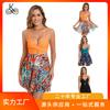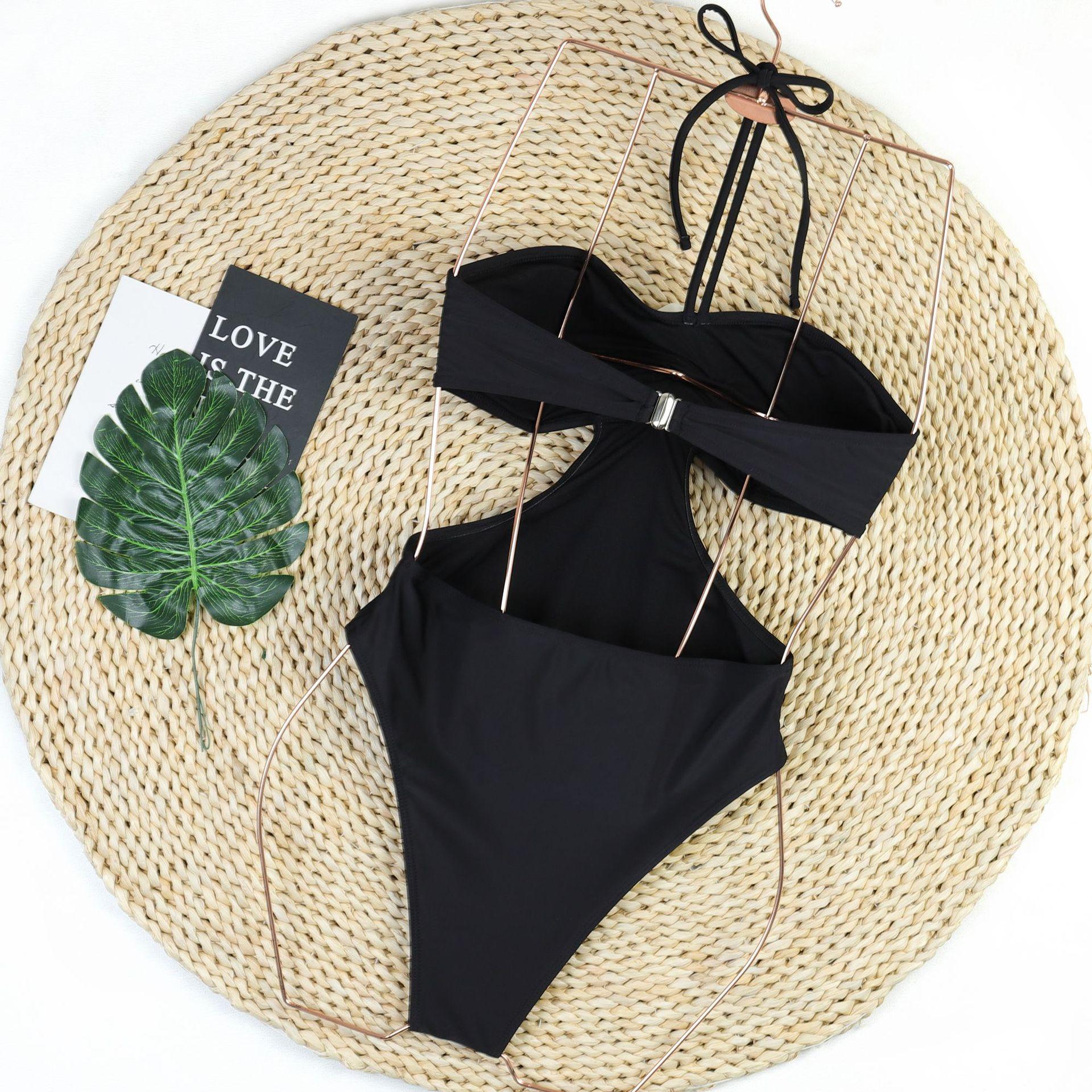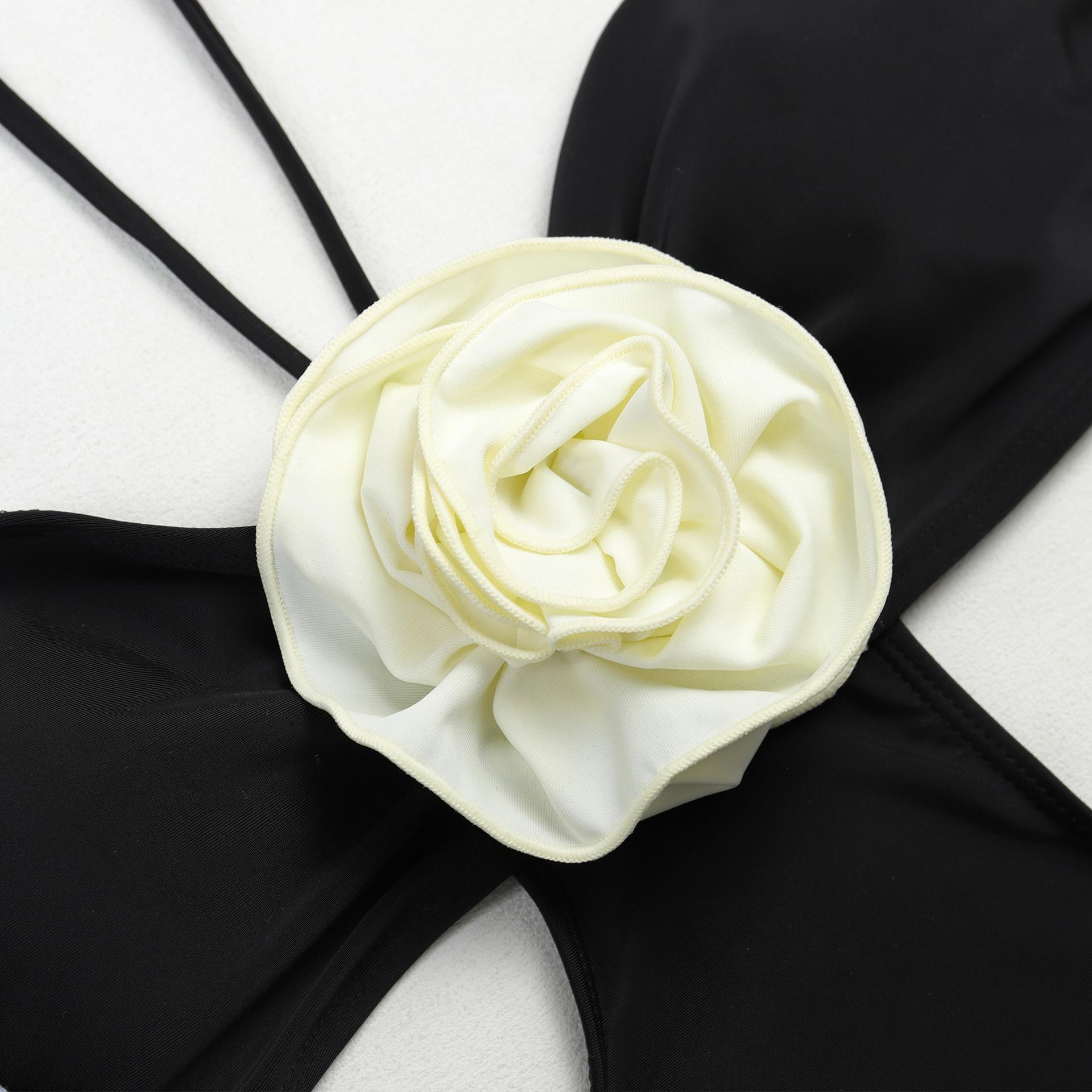 Traje de baño 2024 Bikini talla grande europeo y americano sexy cuello halter flor tridimensional 3D traje de baño de una pieza al por mayor