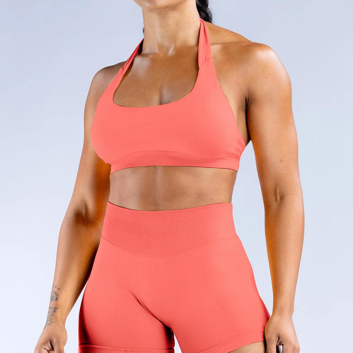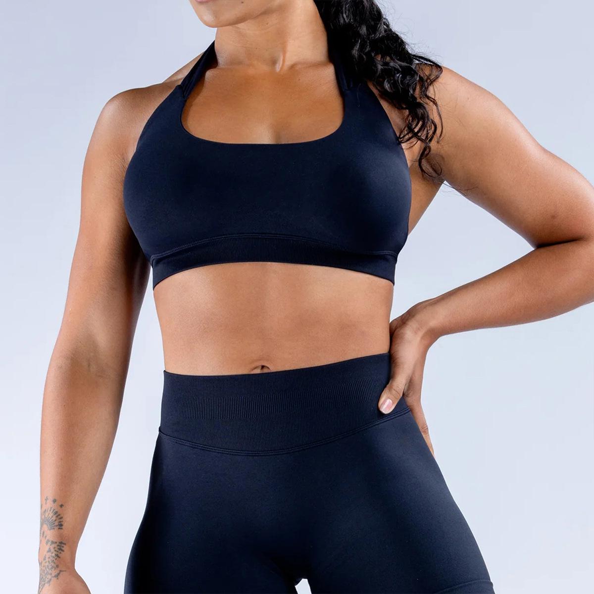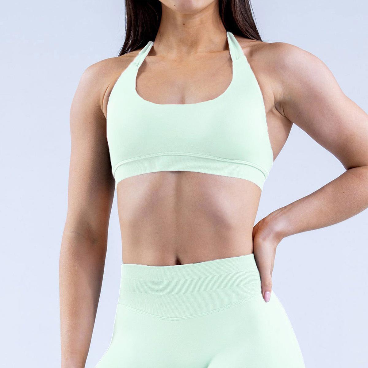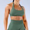 Traje de Yoga Ajustado de Alta Elasticidad Europeo y Americano Transfronterizo Halter Sujetador Deportivo Sin Costuras de Secado Rápido Traje de Fitness Traje Deportivo para Mujer