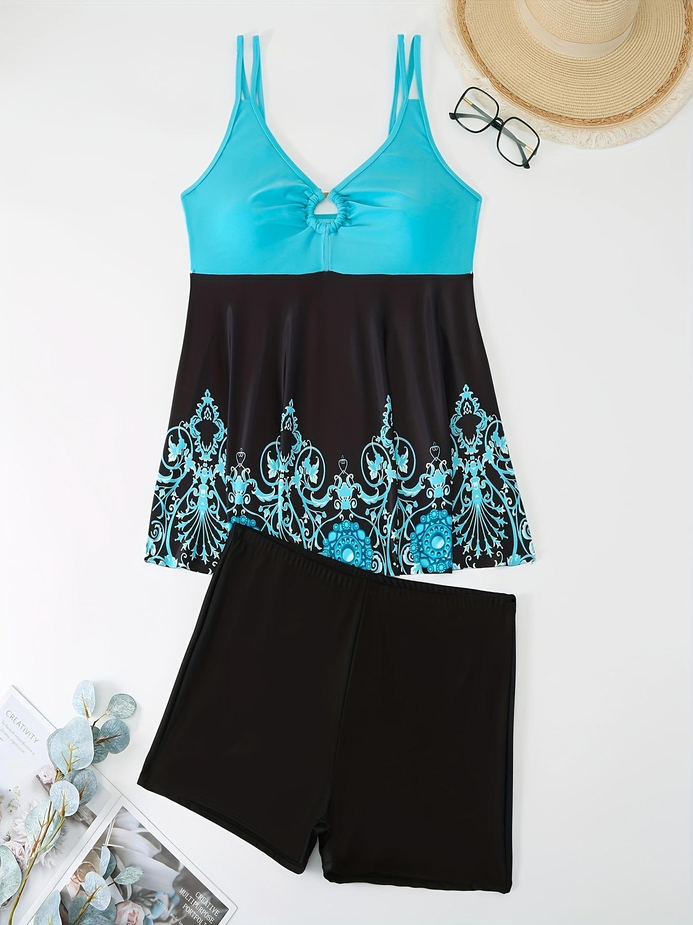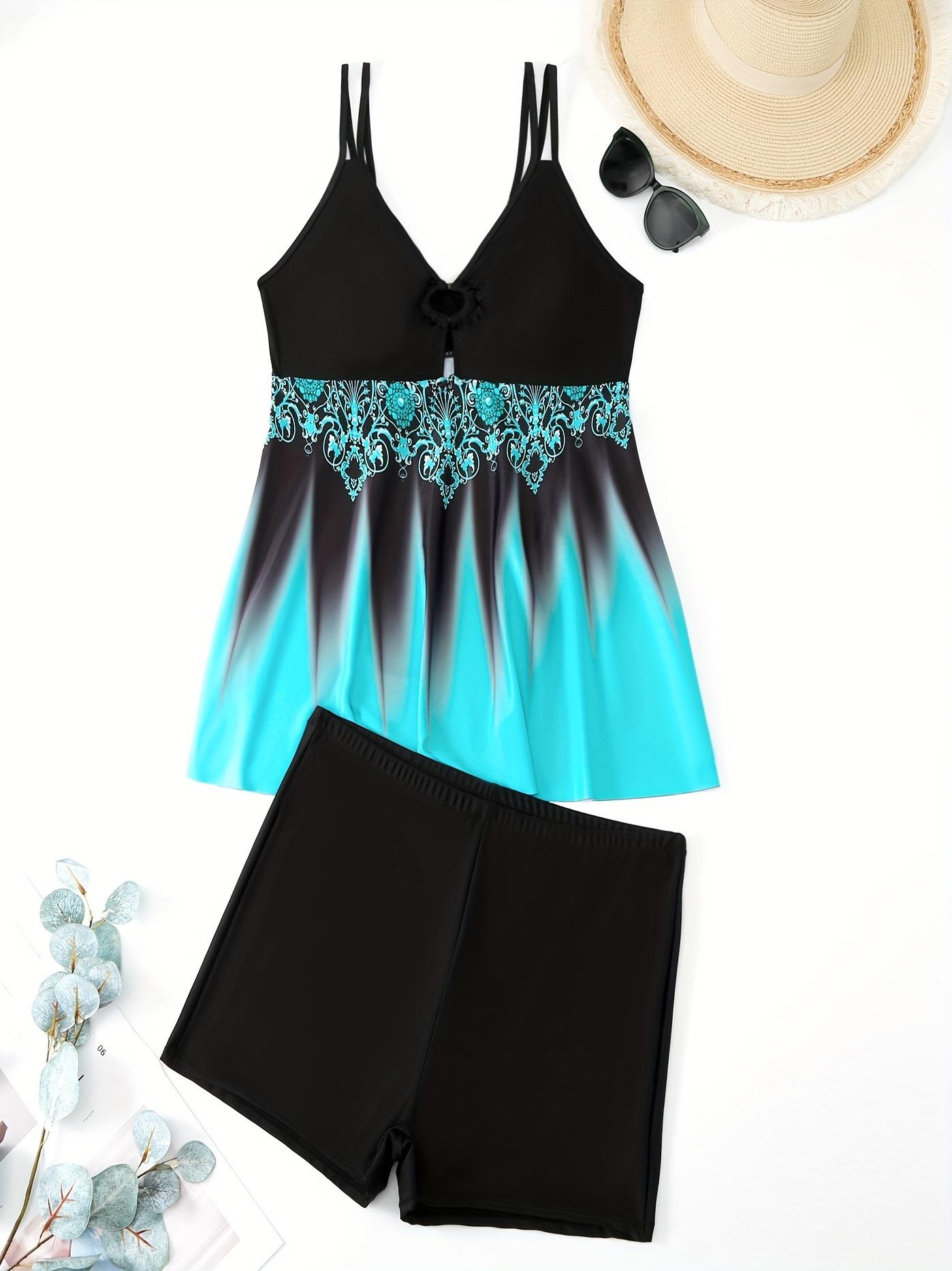 Comercio Transfronterizo Vacaciones en la Playa Traje de Baño de Talla Grande de Dos Piezas Conservador Protector Solar Traje de Baño Dividido Estilo Deportivo para Mujer