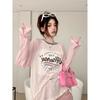 Suéter de Punto de Cuello Redondo para Mujer 25 Otoño e Invierno Estampado de Letras de Moda Más Fácil de Combinar Estilo Casual Personalizado para Mujer Top Holgado Estilo Coreano