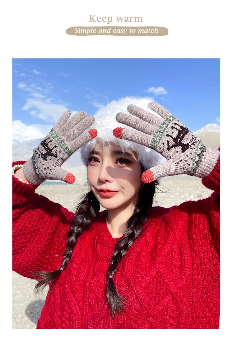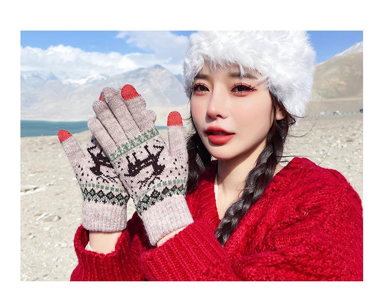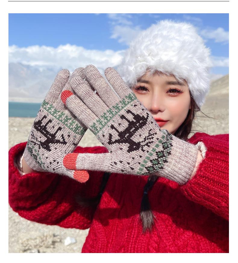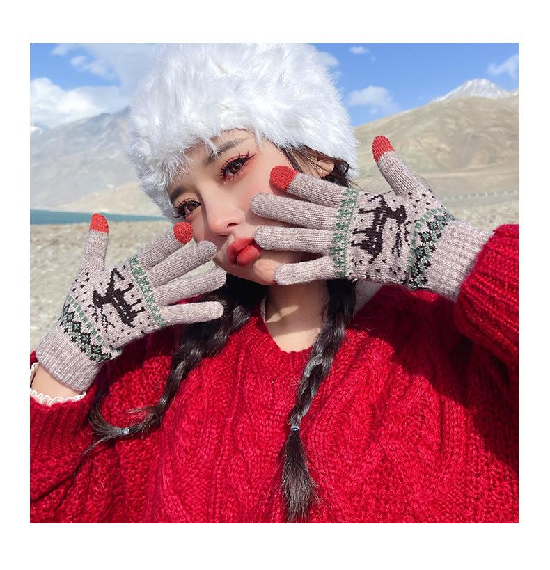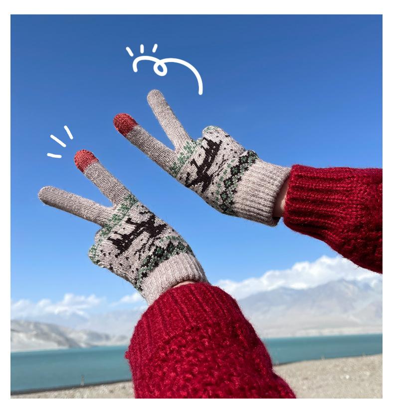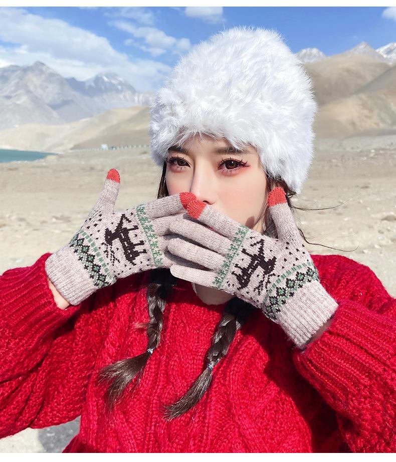 Guantes de Lana Tejidos Otoño e Invierno Ocio al Aire Libre Combinación de Colores Versátil Engrosados Cortavientos a Prueba de Frío Guantes Cálidos para Montar para Mujer