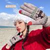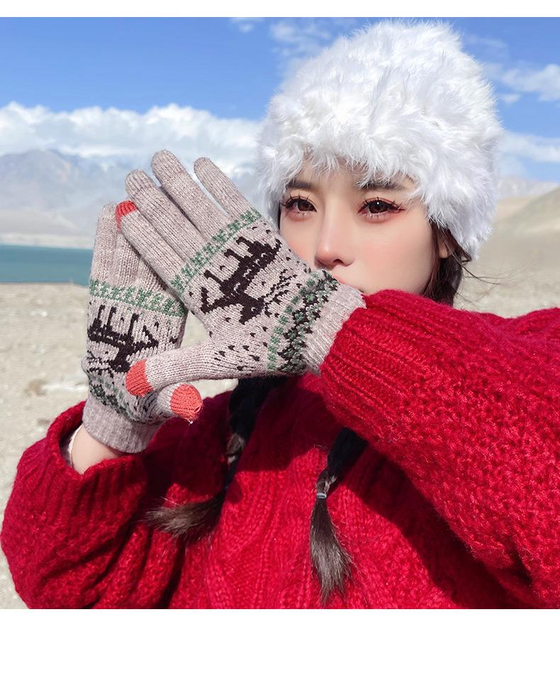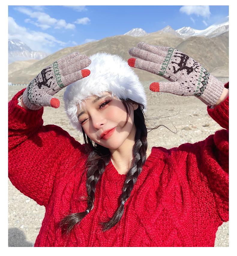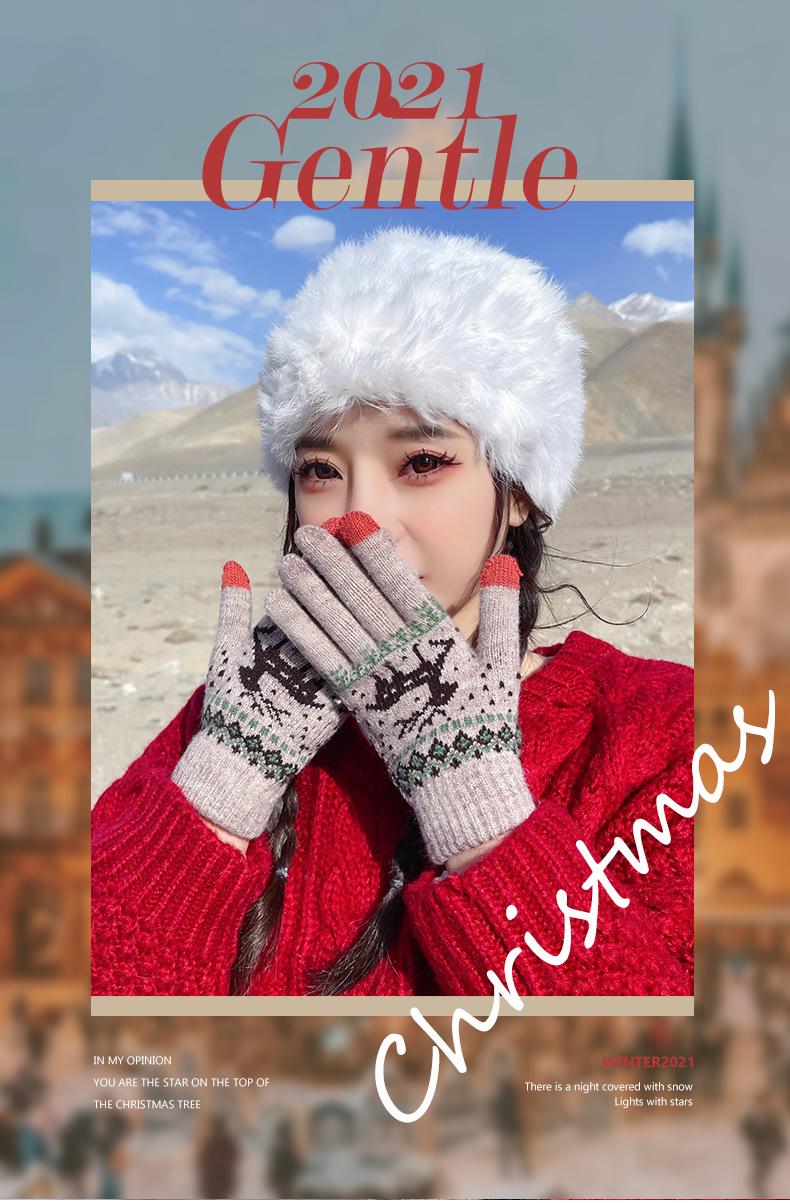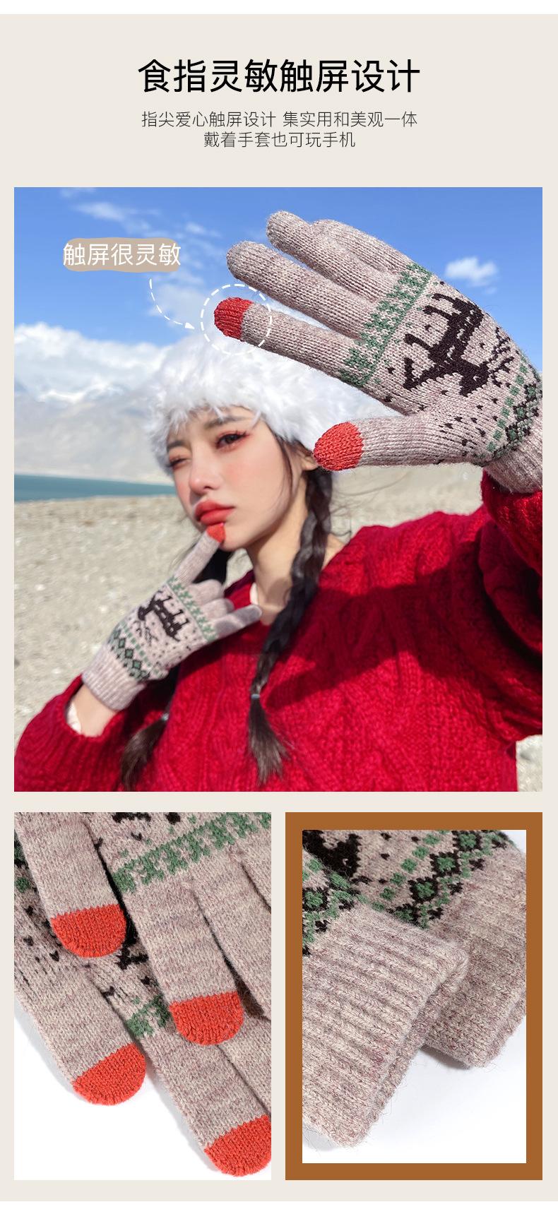 Guantes de Lana Tejidos Otoño e Invierno Ocio al Aire Libre Combinación de Colores Versátil Engrosados Cortavientos a Prueba de Frío Guantes Cálidos para Montar para Mujer