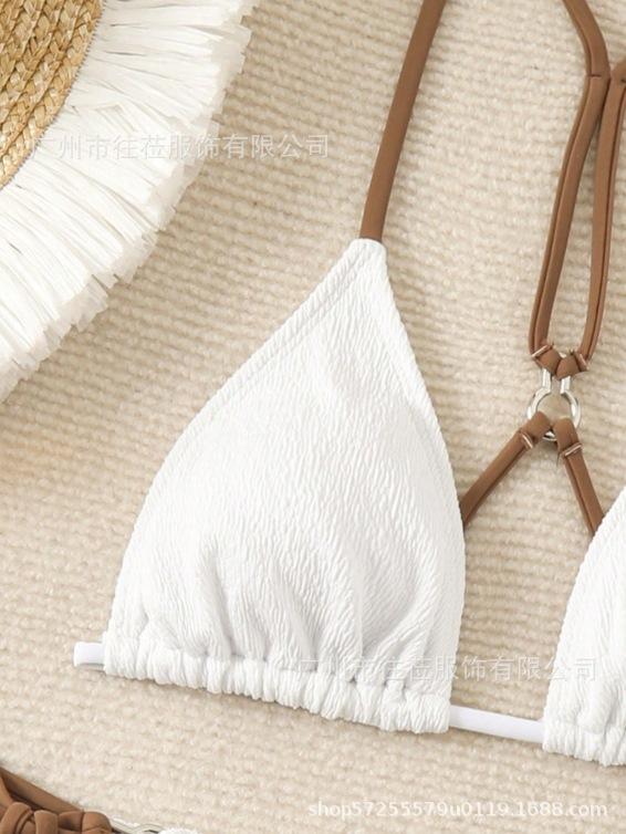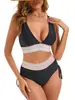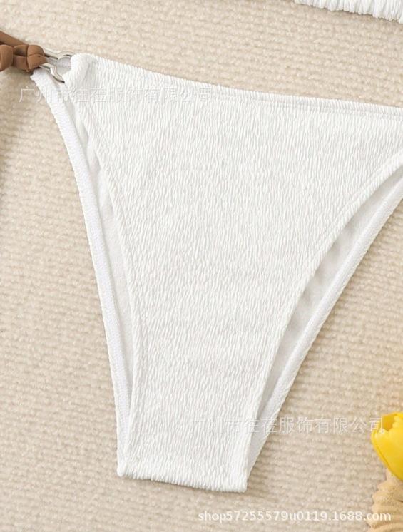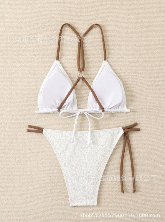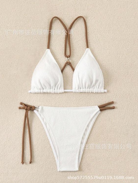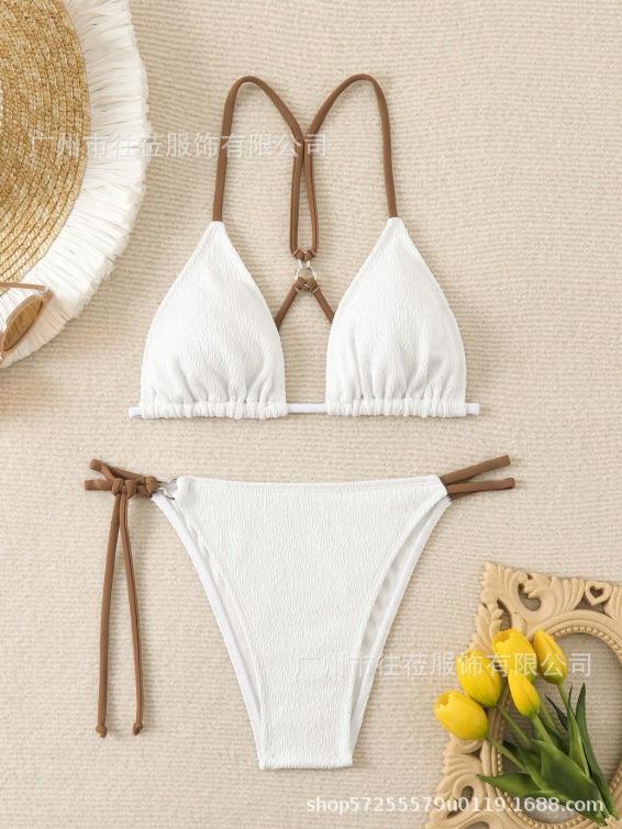 2025 Exportación Europea y Americana Transfronteriza Nuevo Color Puro Vacaciones de Playa Sexy Bikini Dividido con Cordones Traje de Baño para Mujer