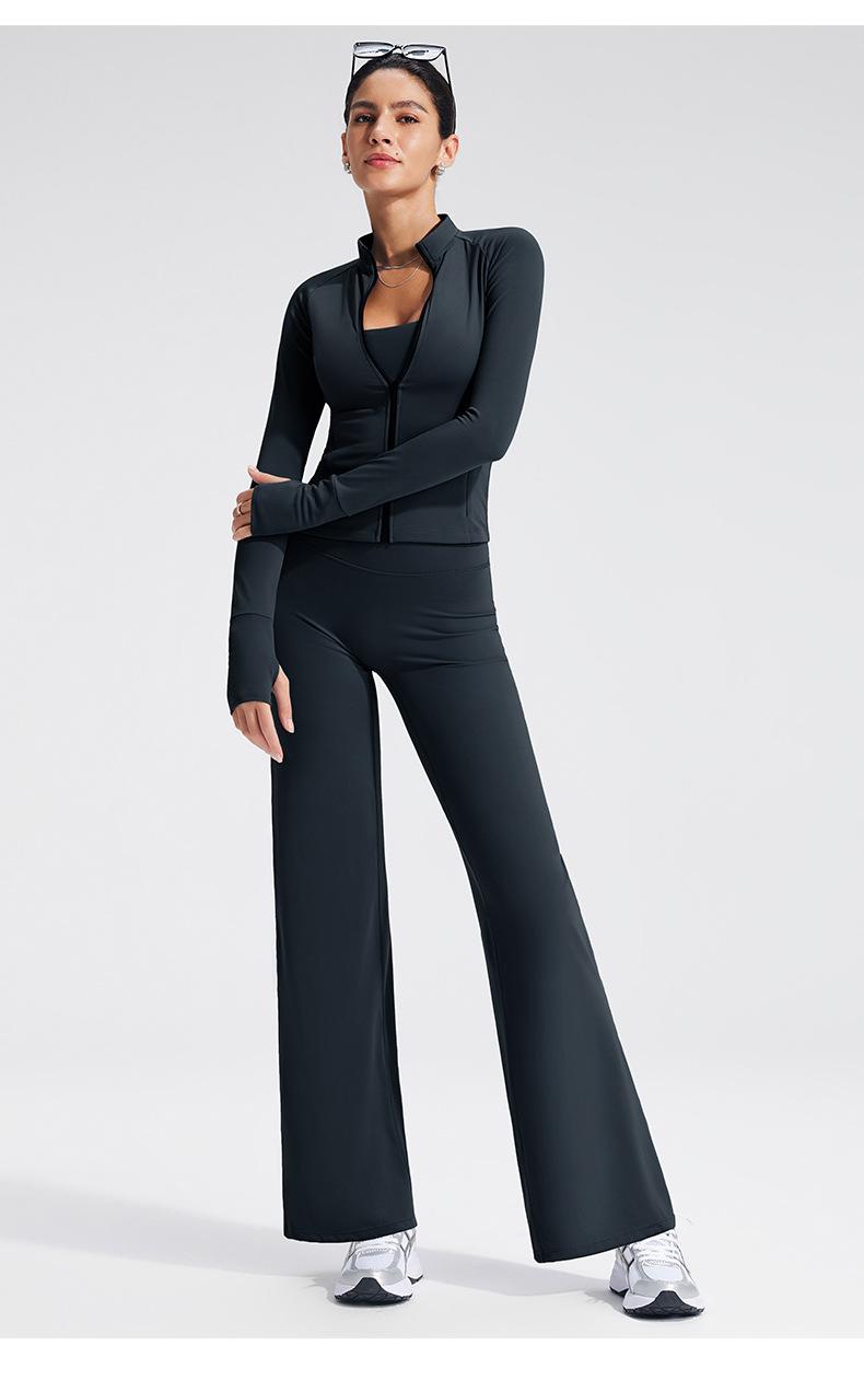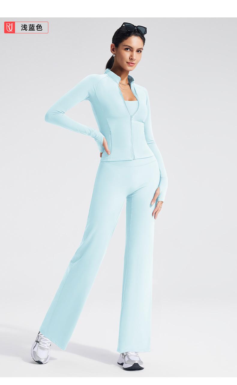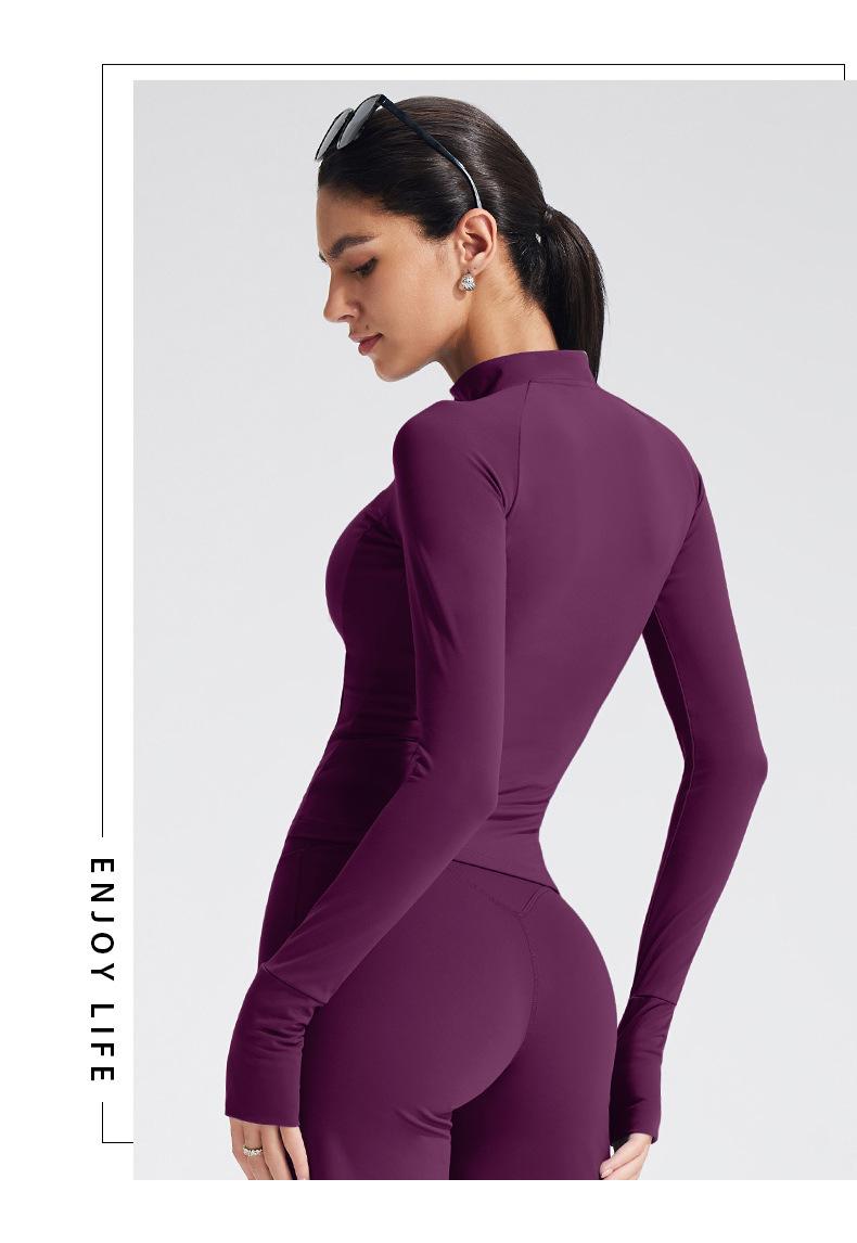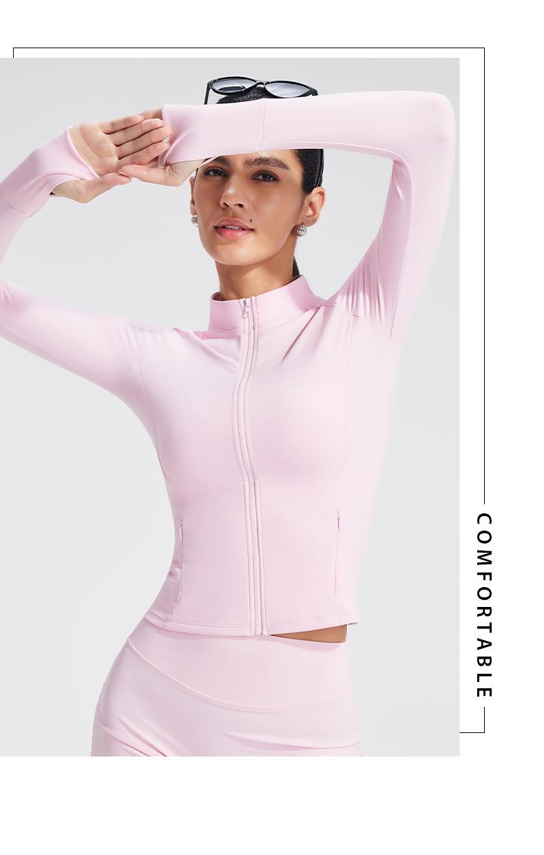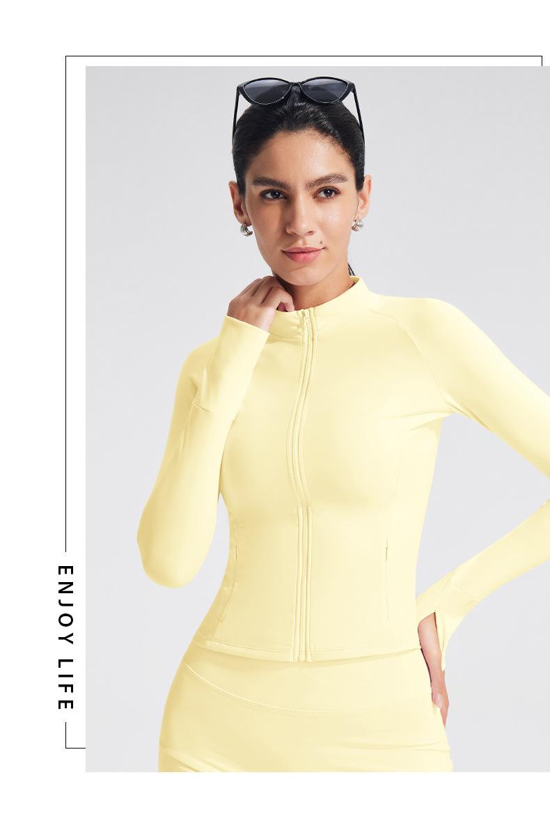 Ropa de Yoga Delgada Europea y Americana Chaqueta con Cremallera Tops Deportivos Ropa de Entrenamiento Ajustada de Manga Larga para Mujer Traje Deportivo para Correr