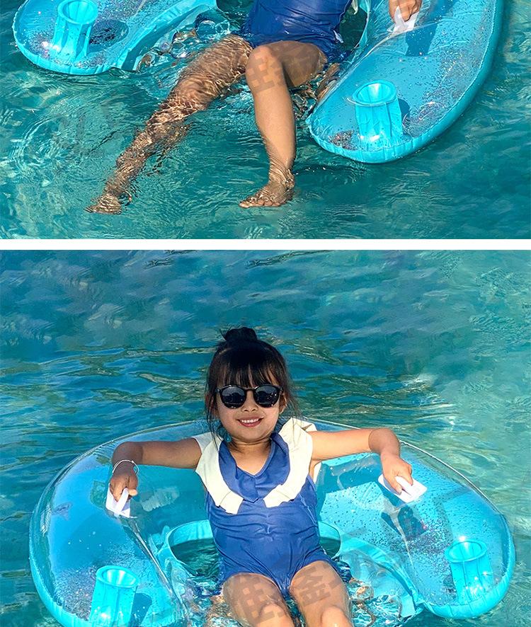Spot Red de internet asiento flotante para exteriores adulto reclinable para ocio acuático pvc inflable transparente fila flotante al por mayor