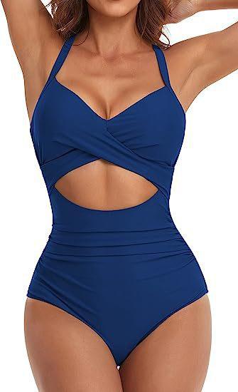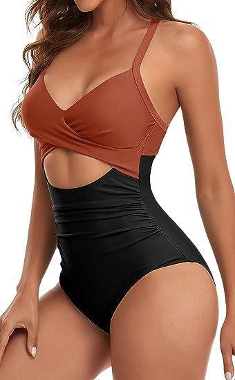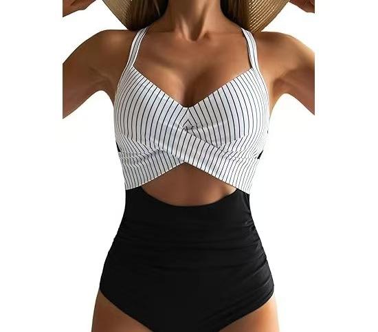 Traje de baño de una pieza estilo europeo y americano para mujer de Amazon, sexy transfronterizo, traje de baño de una pieza con costuras, traje de baño con diseño cruzado