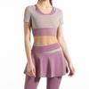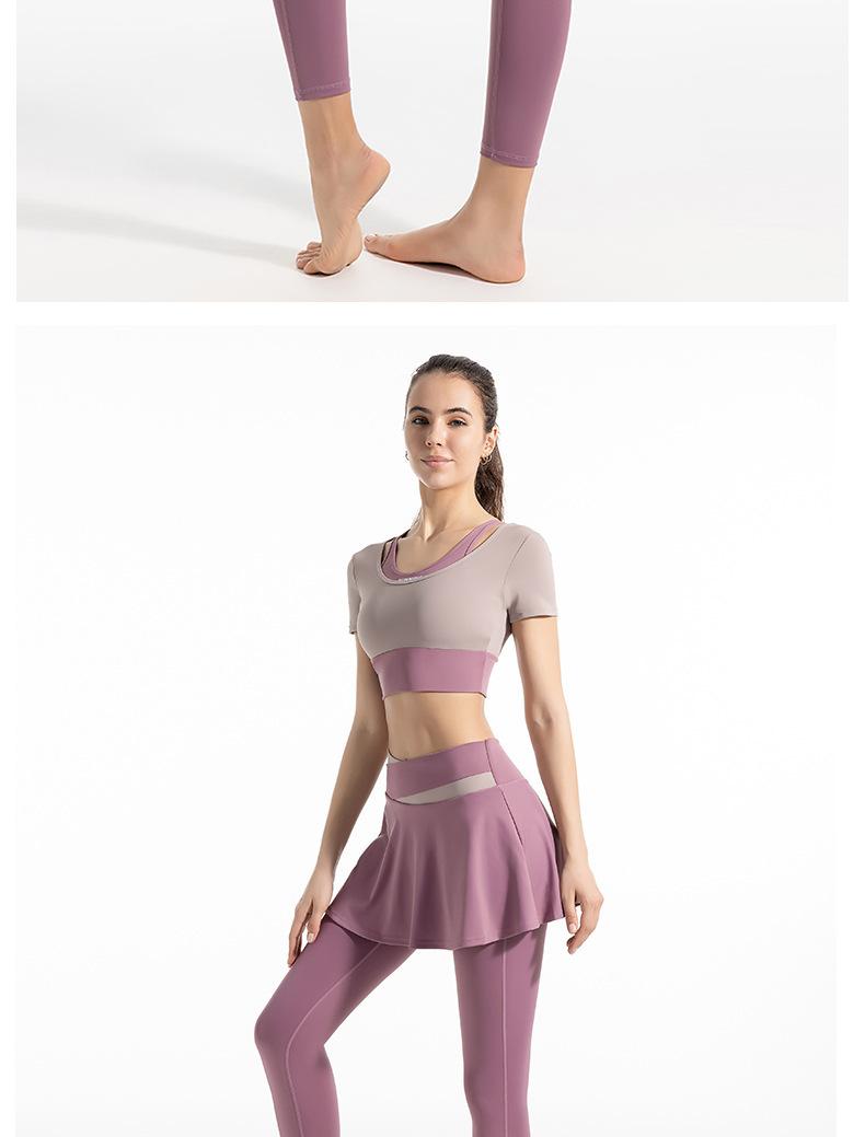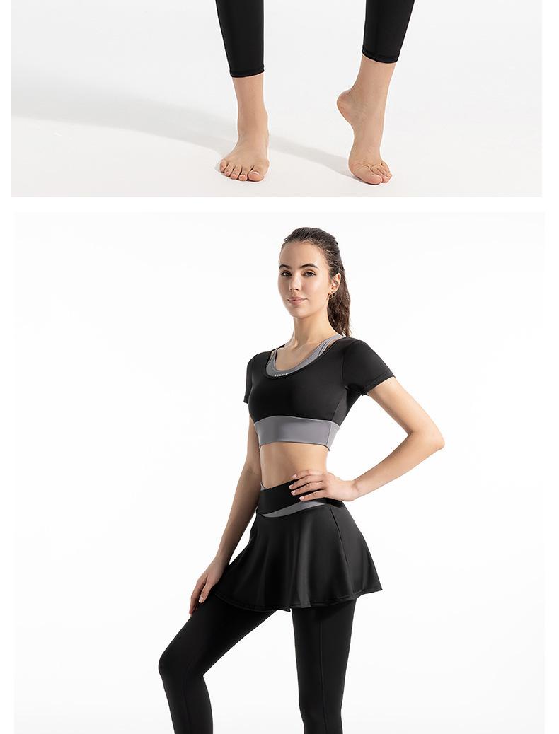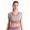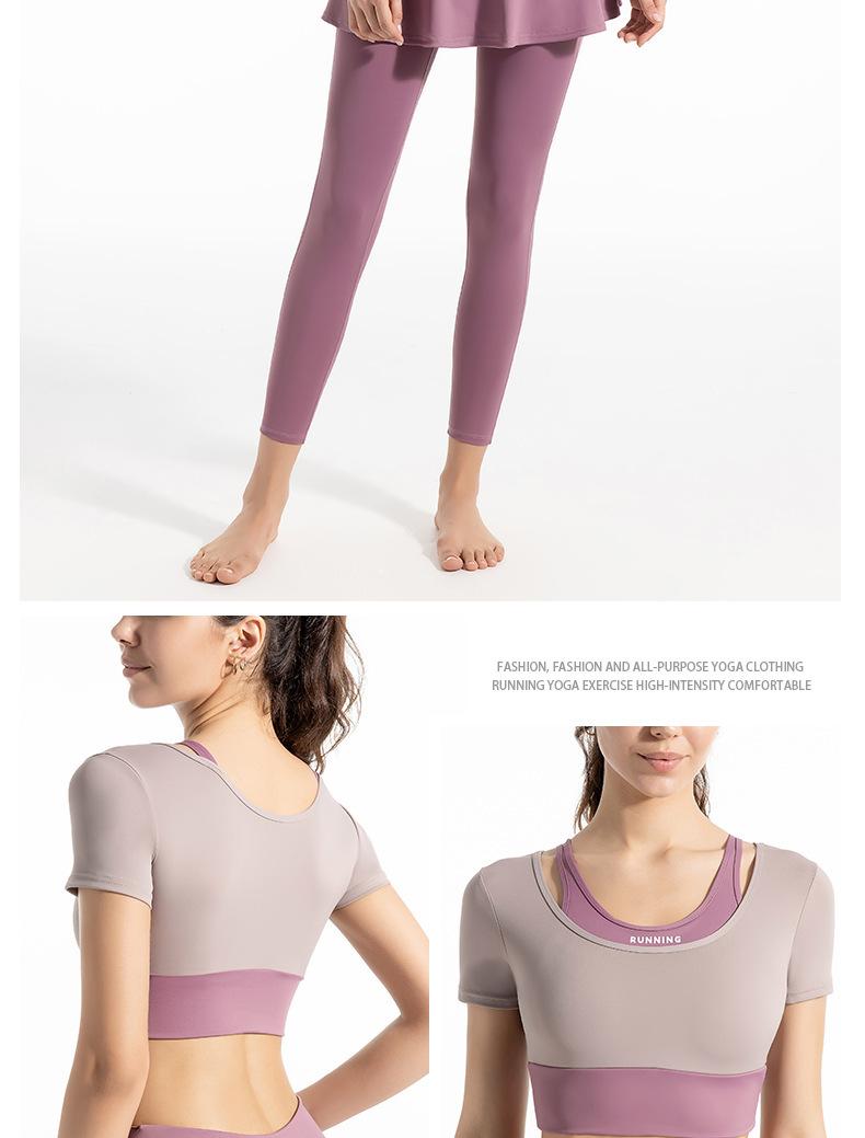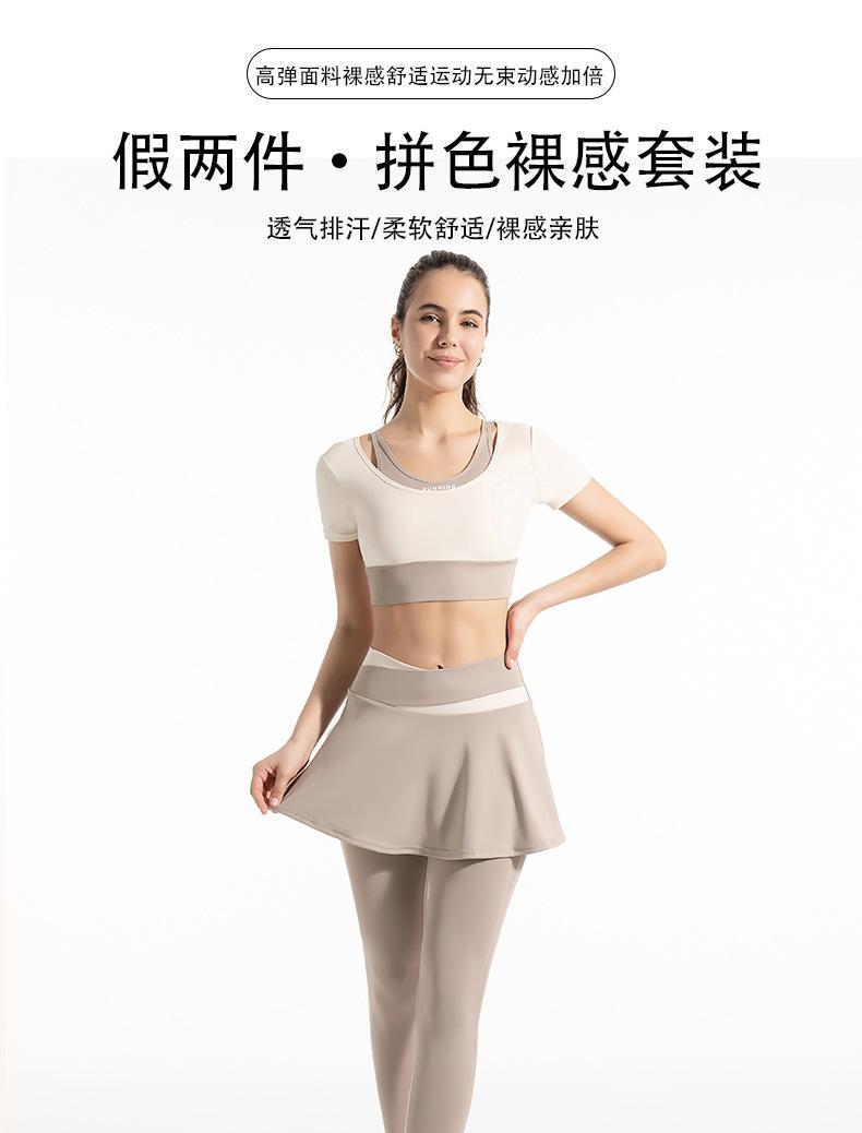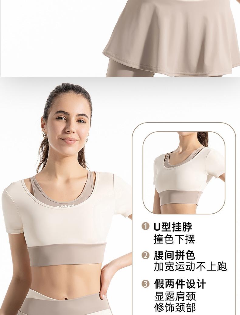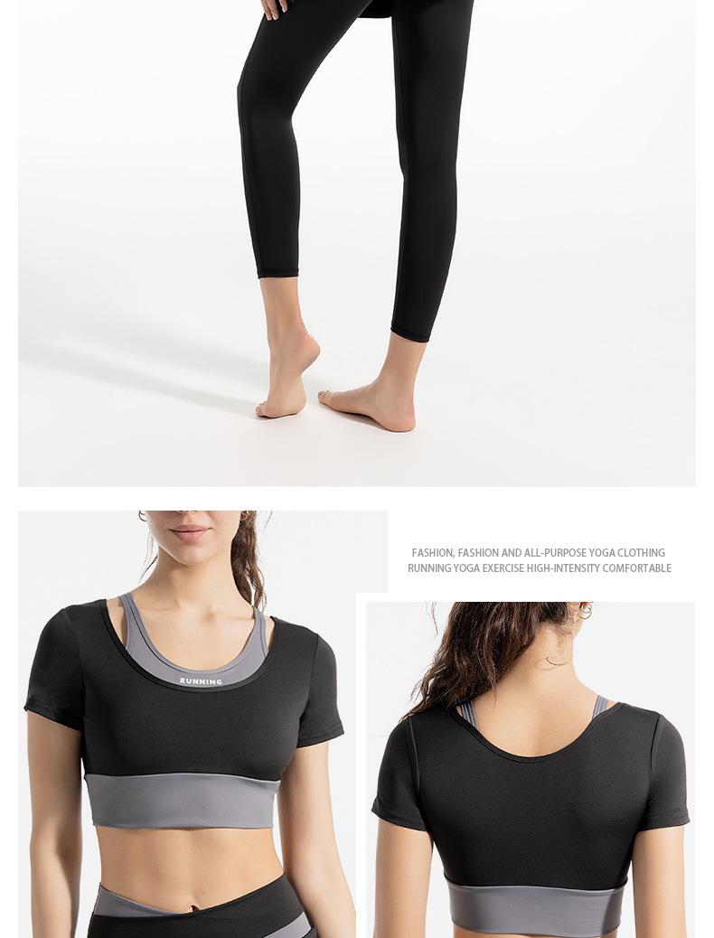 Traje de dos piezas falso con combinación de colores novedosa para mujer, para deportes al aire libre, yoga, correr, fitness, tops de yoga