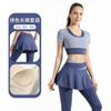 Gray lake blue short sleeves + whale blue short skirt and trousers