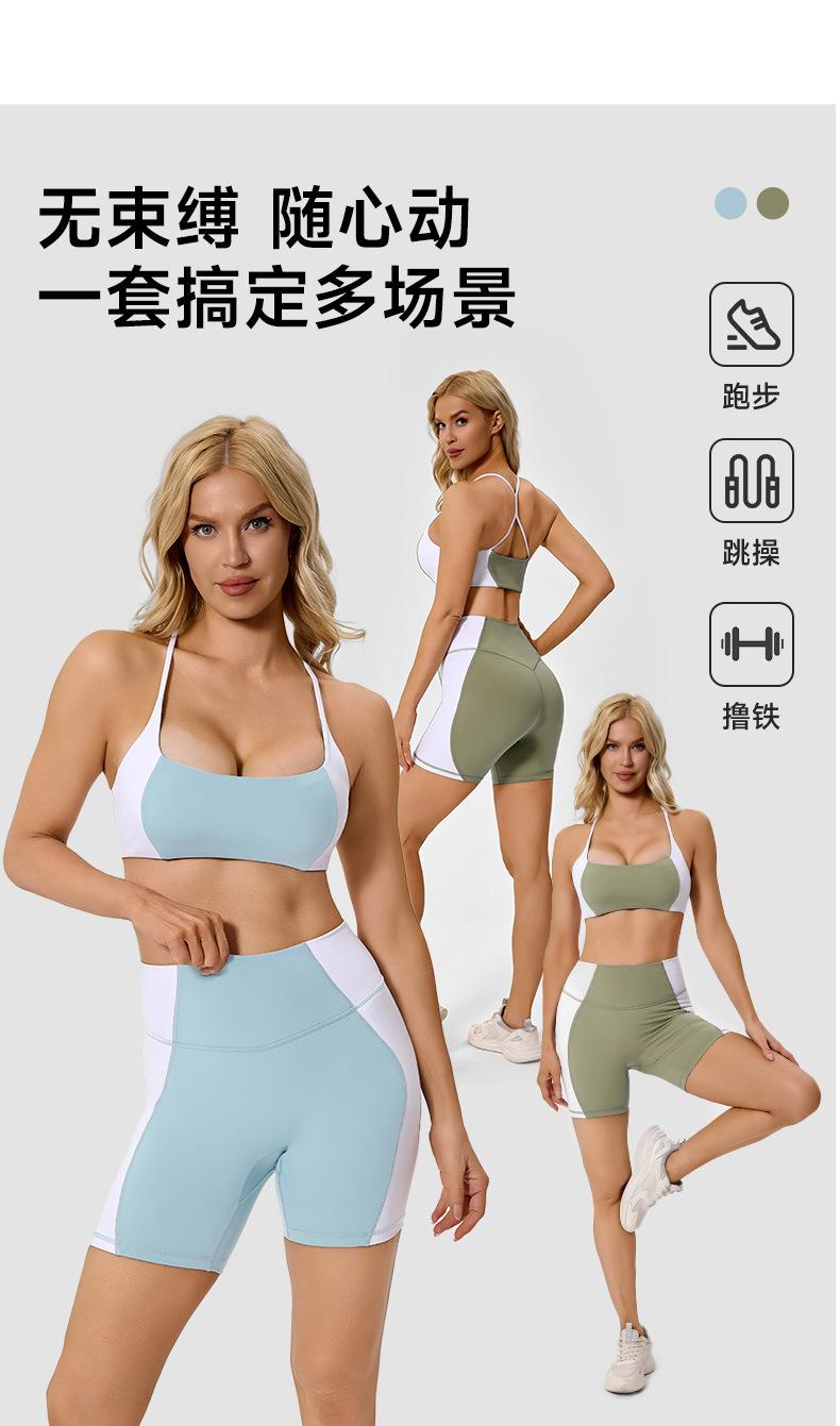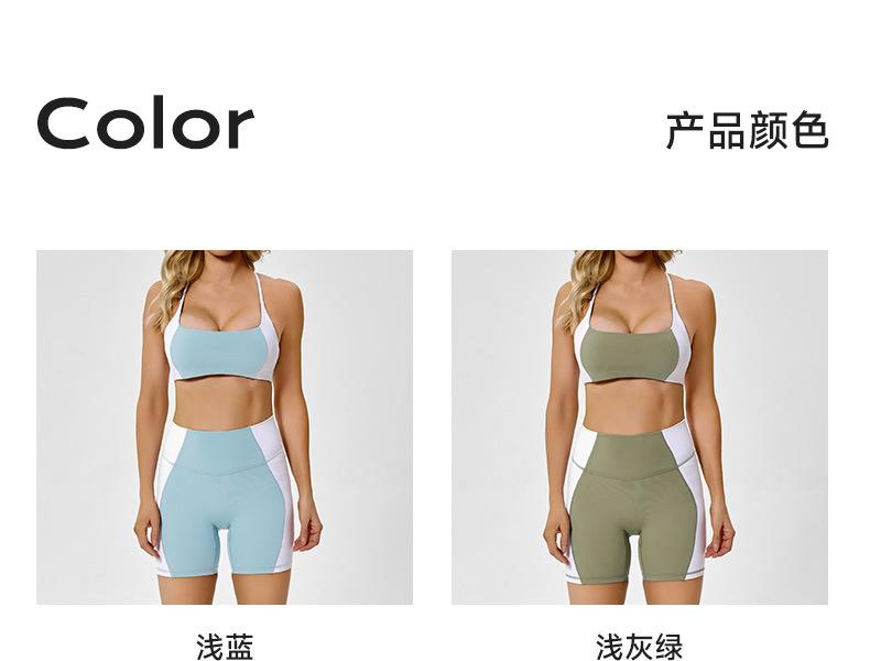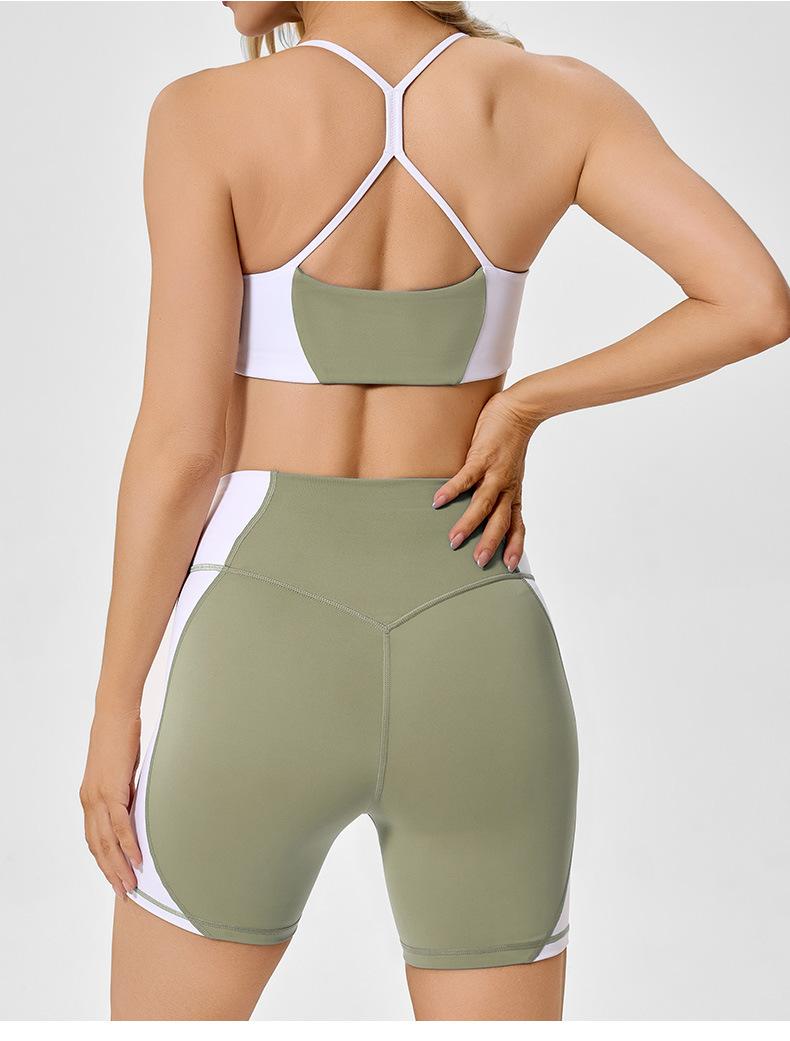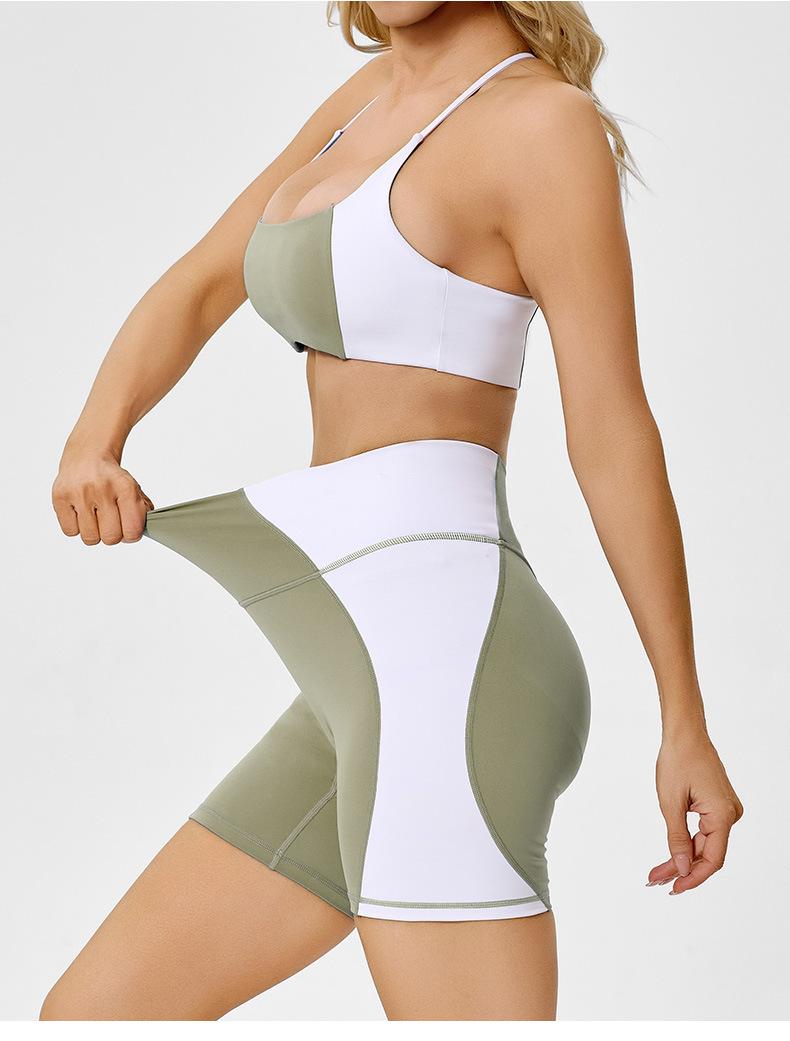 Traje de ropa deportiva ajustada de cintura alta con contraste de color transfronterizo europeo y americano para realzar la cadera, para correr, pilates, espalda hermosa, ropa de yoga sexy para mujer