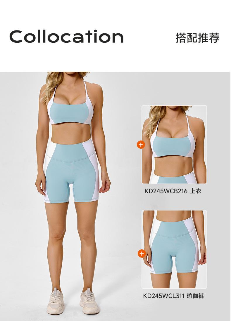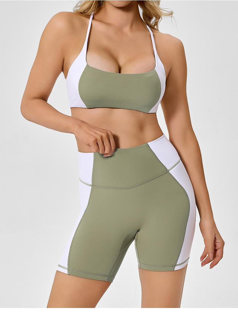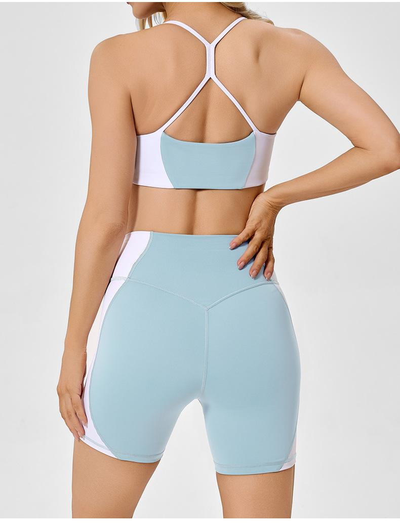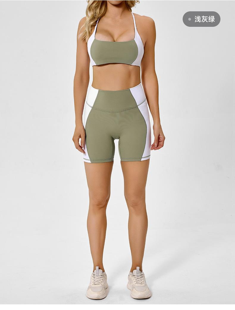 Traje de ropa deportiva ajustada de cintura alta con contraste de color transfronterizo europeo y americano para realzar la cadera, para correr, pilates, espalda hermosa, ropa de yoga sexy para mujer