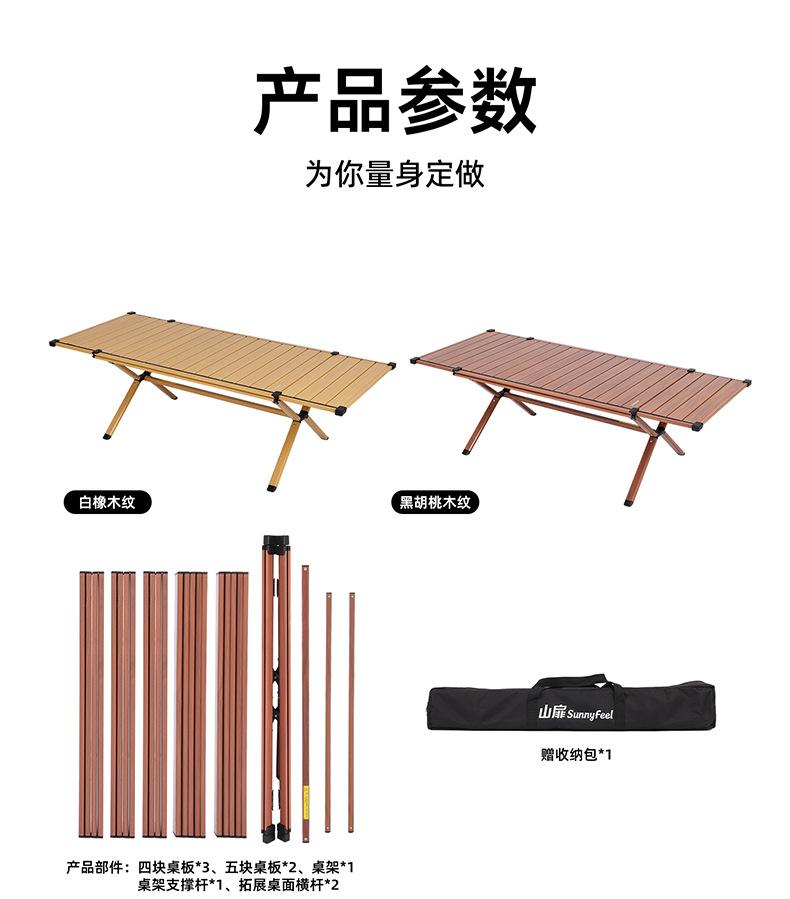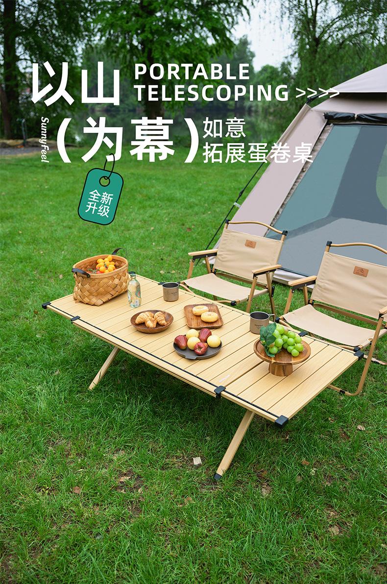 Mesa Enrollable de Aleación de Aluminio para Puerta de Montaña SunnyFeel para Exterior, Portátil para Camping, Picnic, Mesa Plegable Expandible para Camping