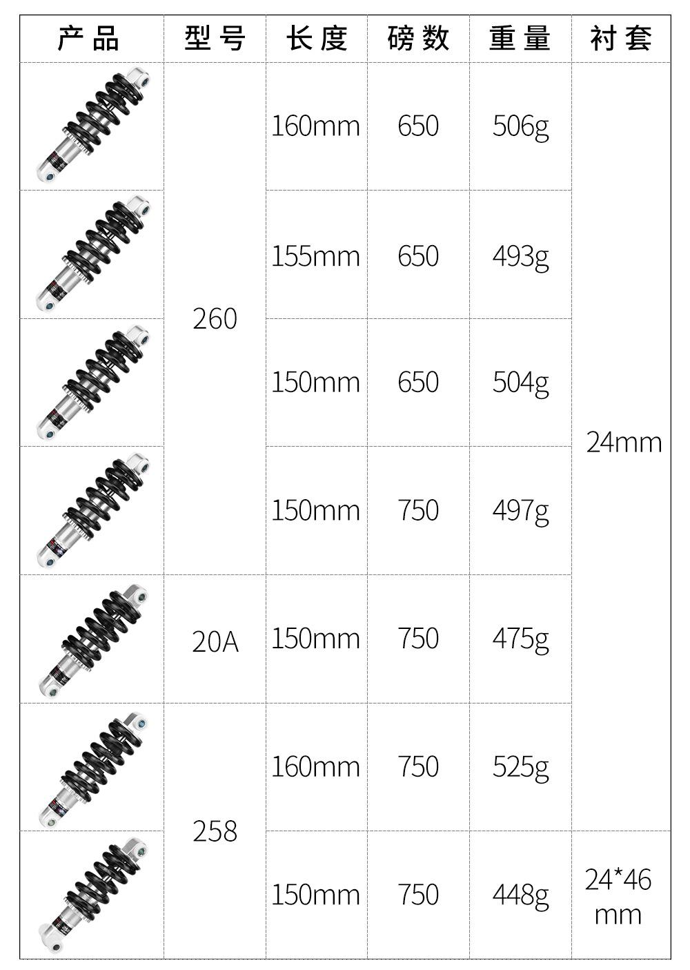 Ks-260 150mm*650 lbs (bushing 24*24mm), Ks-260 155mm*650 lbs (bushing 24*24mm), Ks-260 150mm*750 lbs (bushing ...
