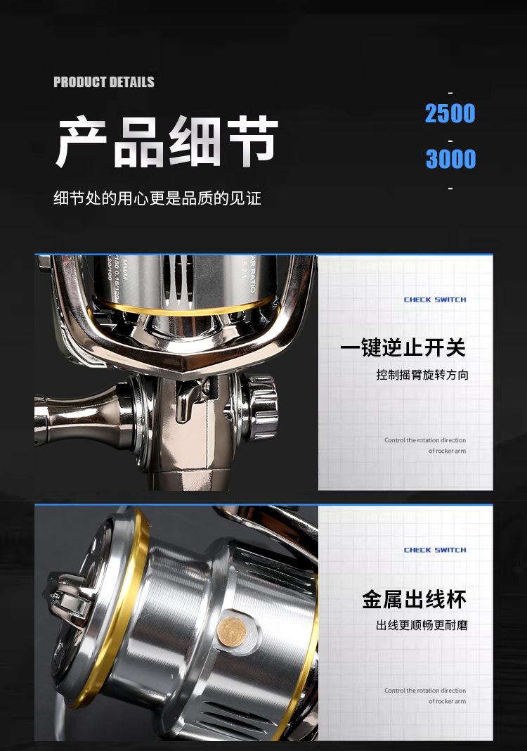 Carrete de pesca de alta gama carrete de pesca carrete giratorio totalmente metálico ligero suave metal balancín doble carrete de pesca carrete para caña de carretera