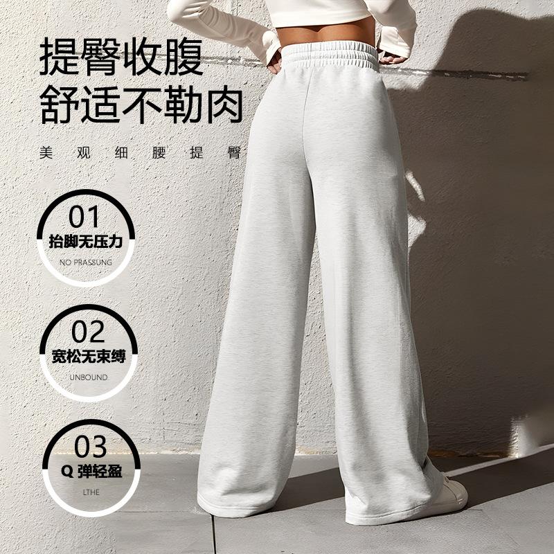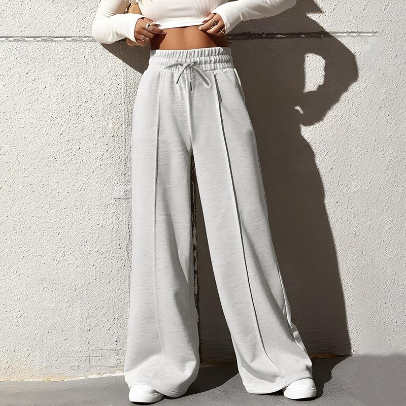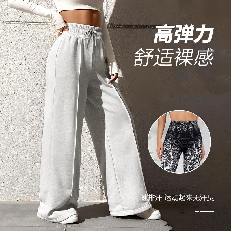 Pantalones de pierna ancha de cintura alta para mujer de venta caliente transfronteriza, pantalones deportivos casuales de línea media para jogging, pantalones casuales de moda que combinan con todo