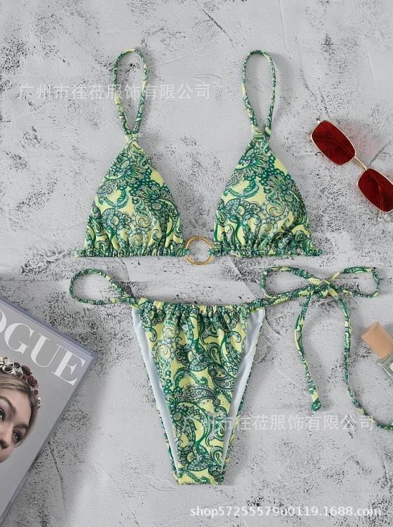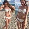 Europeo y Americano Nueva Moda Diseño Hueco de Tres Puntos Vacaciones Natación Sexy Bikini con Cordones Traje de Baño Conjunto de Dos Piezas