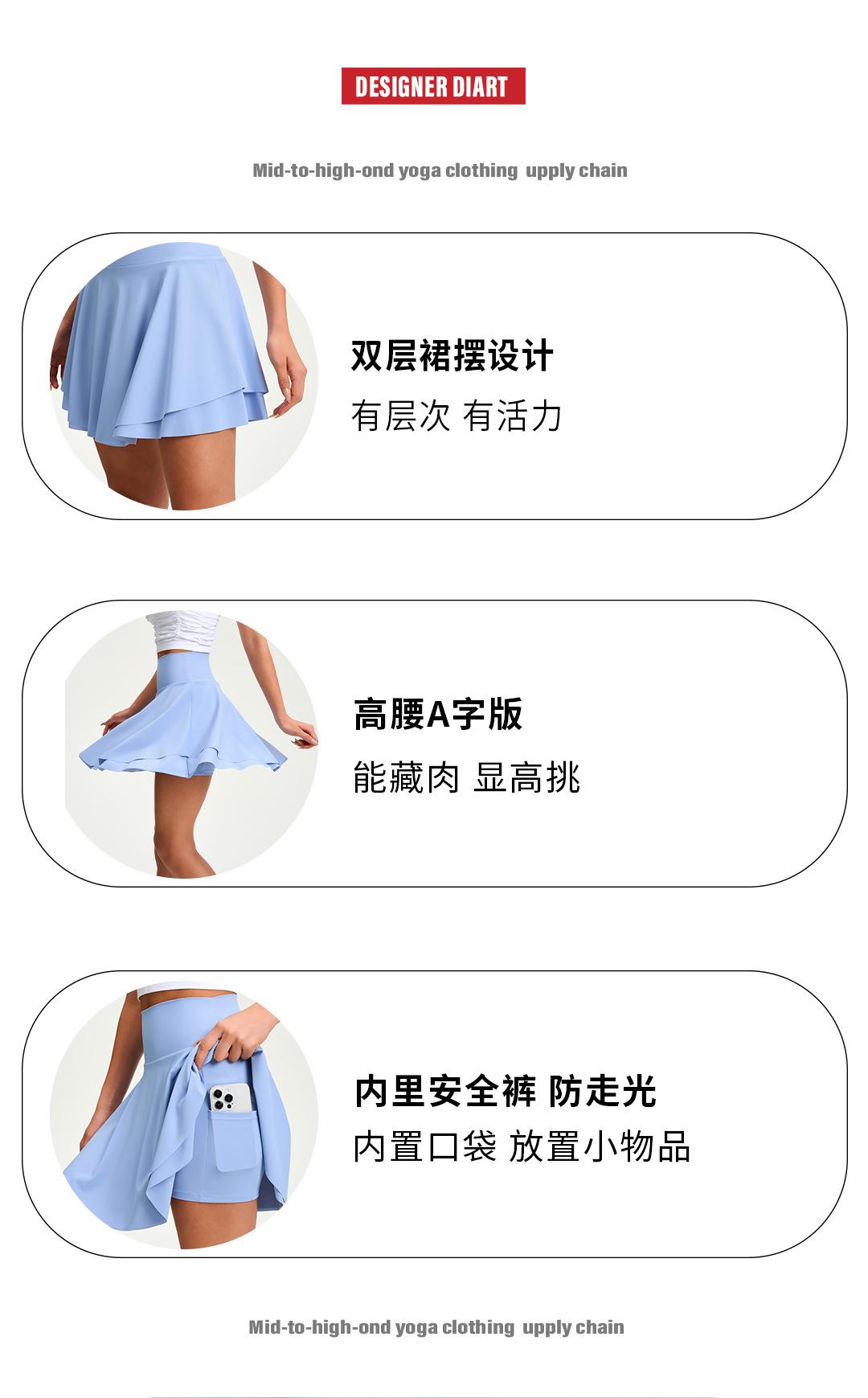 Falda de Yoga para Mujer Verano Cintura Alta Fitness Deportes Falda de Tenis Nueva Falda Falda Plisada Ropa Exterior Antiexposición