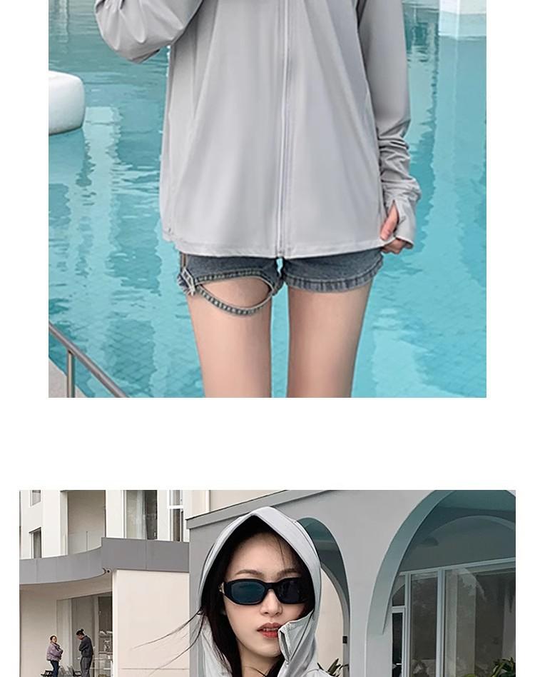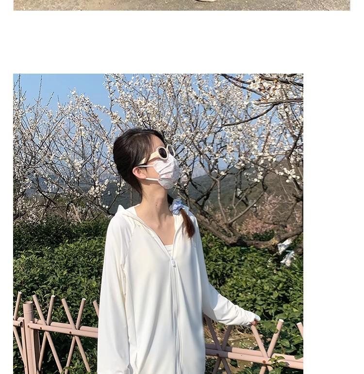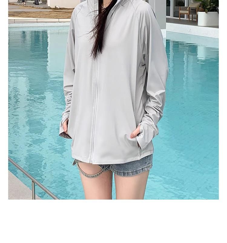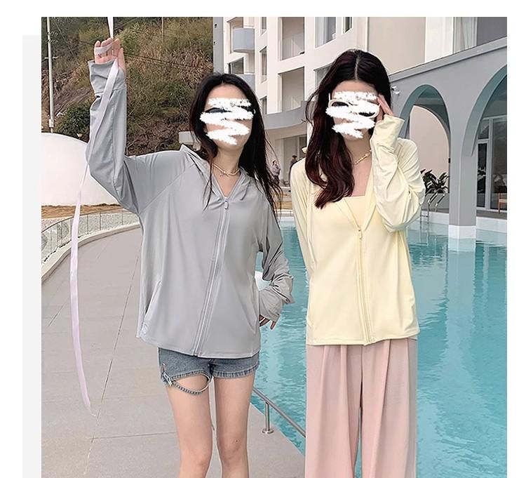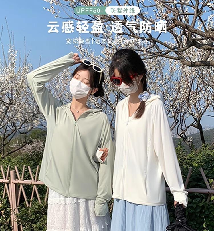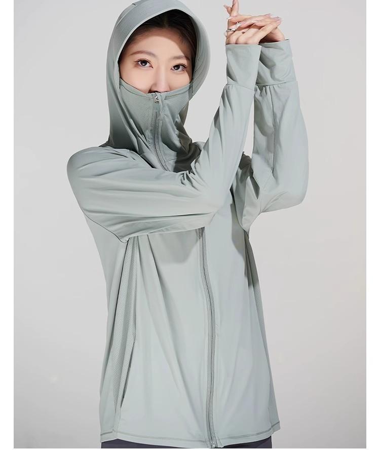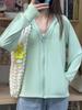 Genial Verano Hielo Cuero Mujer Agujero Pulgar Protector Solar Acogedor y Cómodo Transpirable con Capucha Suelto Protector Solar de Alta Potencia Top